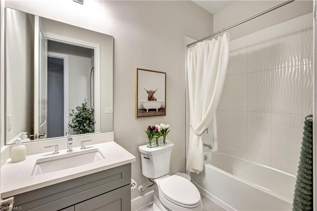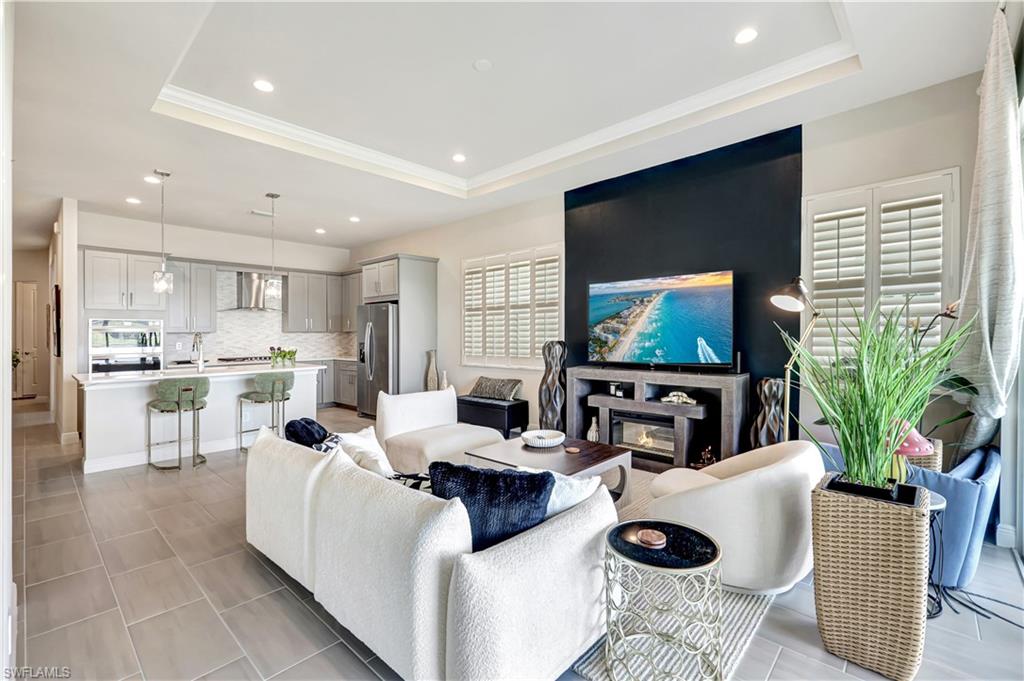 Welcome home to the charming 2 bedroom plus den villa offers stunning water views. The open lay out is airy and spacious with natural light and plantation shutters through out the home. The living area has an electric fireplace , ideal for cozying up with a great book or gathering with friends by the fire. The kitchen is well appointed and has plenty of counter space for culinary adventures. Many upgrades including gas cook top, and quartz counter tops. Outside is a cozy lanai that offers a tranquil place to sit and admire the water view or entertain friends. Amenities of Azure are Clubhouse, fitness center, tennis, Pickle ball, pool and spa and more! Naples is voted the #1 best place to live in the country in 2024 by U.S. News. Azure is located minutes to the well known 5Th Avenue world renown restaurants, boutique shops and white sandy beaches, Naples Botanical Gardens, Hamilton Harbor Yacht Club and East Naples Park and Bayshore Arts District are all close by!