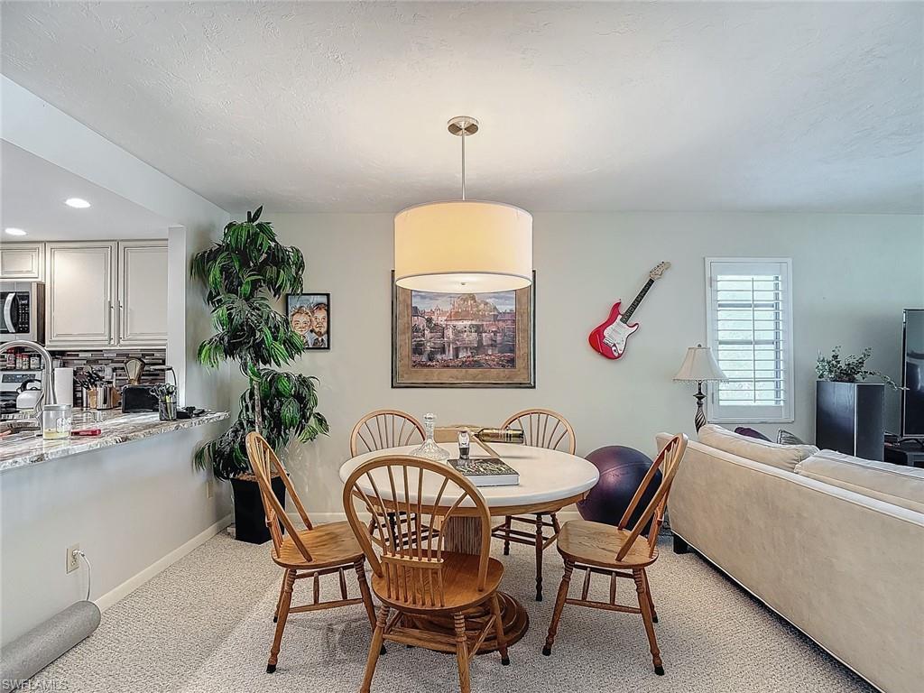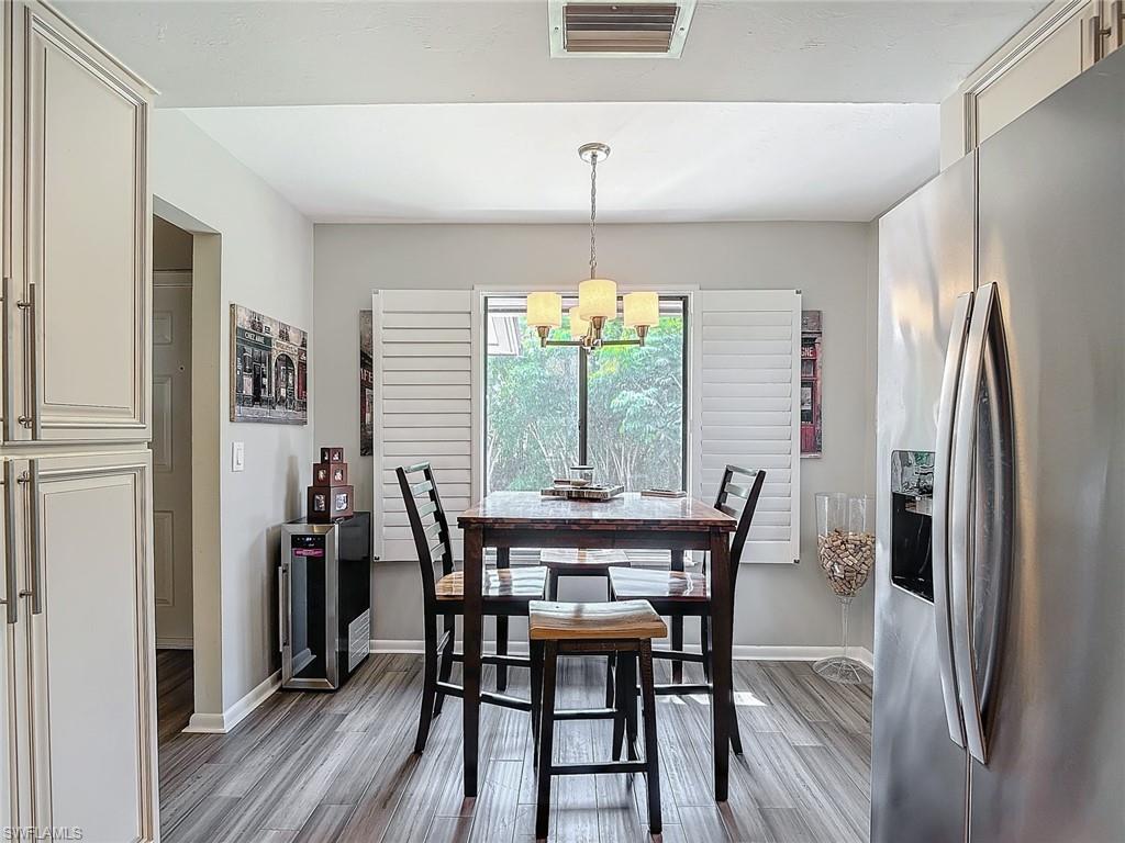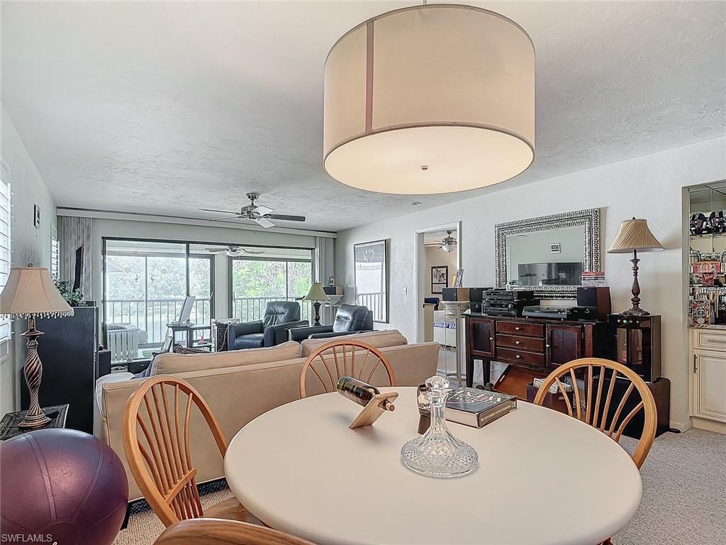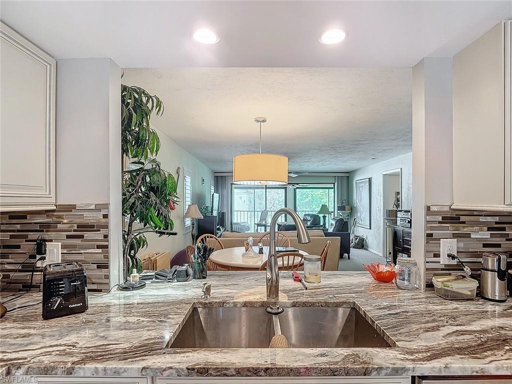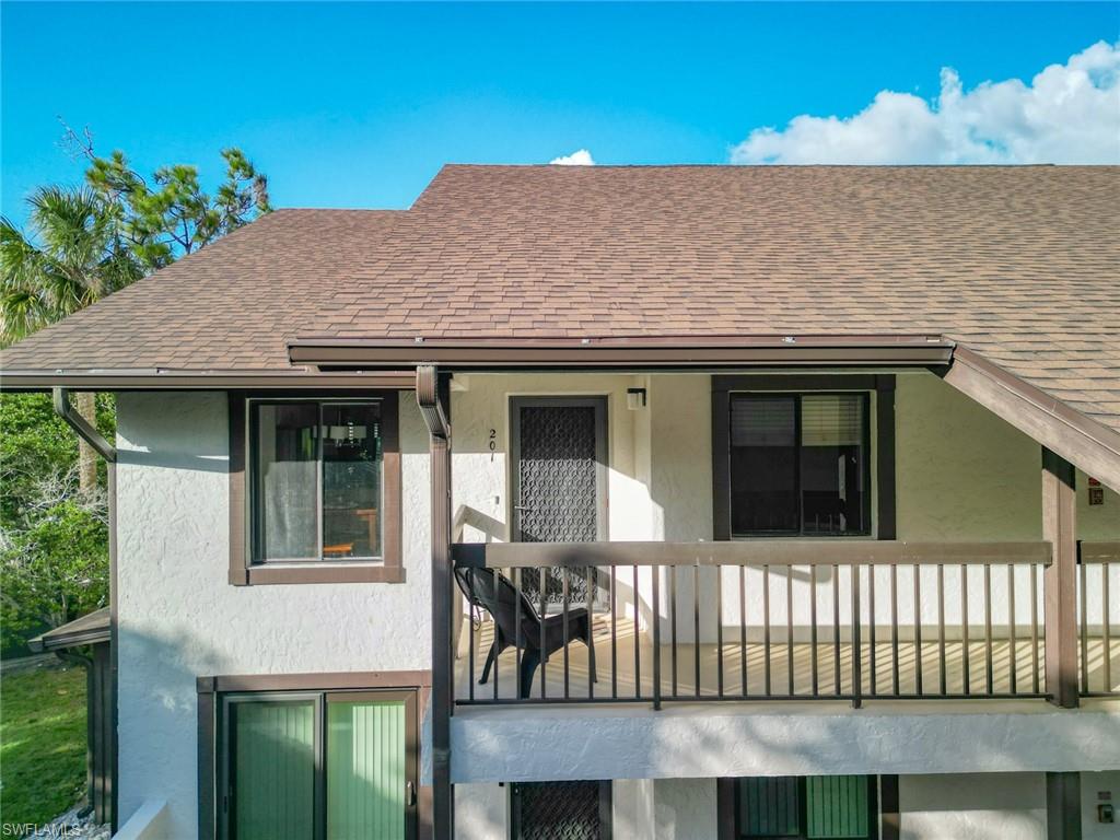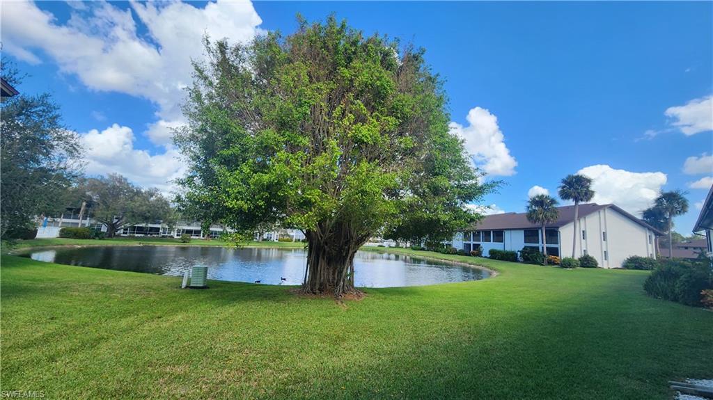 Location, location! 2BD/2BA 2nd floor end unit condo with lake view located in the heart of Central Naples! End units have three more windows than an interior units for additional light. Large, beautifully updated kitchen with granite counters, stainless appliances, eat-in area and lots of storage. Luxury vinyl flooring in entry area and kitchen. Enclosed tiled lanai has sliding glass doors for year round use. There are plantation shutters on the kitchen and living area windows. Extra storage area off of the lanai. New AC in 2024. Front patio area. Nice community with mature landscaping, two pools and tennis courts. Excellent location close to Naples beaches, downtown Naples, and just minutes to a wide variety of shopping, dining and entertainment options.