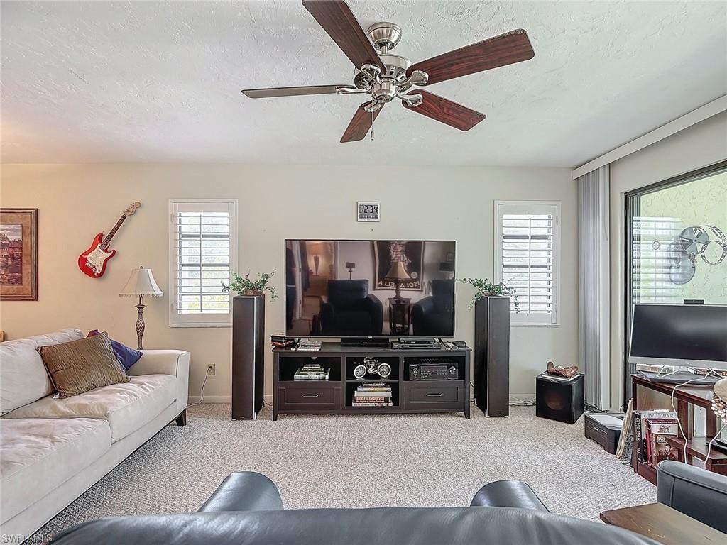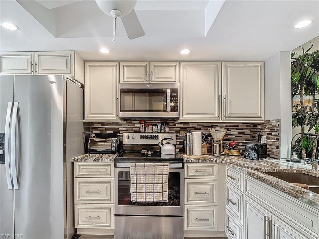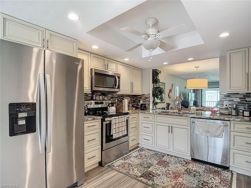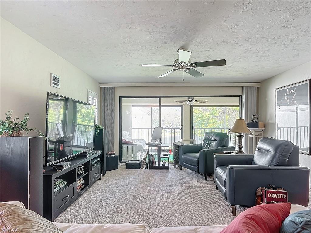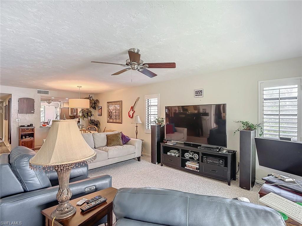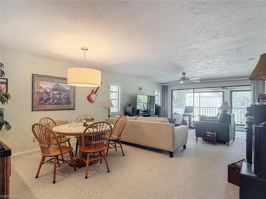 Location, location! 2BD/2BA 2nd floor end unit condo with lake view located in the heart of Central Naples! End units have three more windows than an interior units for additional light. Large, beautifully updated kitchen with granite counters, stainless appliances, eat-in area and lots of storage. Luxury vinyl flooring in entry area and kitchen. Enclosed tiled lanai has sliding glass doors for year round use. There are plantation shutters on the kitchen and living area windows. Extra storage area off of the lanai. New AC in 2024. Front patio area. Nice community with mature landscaping, two pools and tennis courts. Excellent location close to Naples beaches, downtown Naples, and just minutes to a wide variety of shopping, dining and entertainment options.