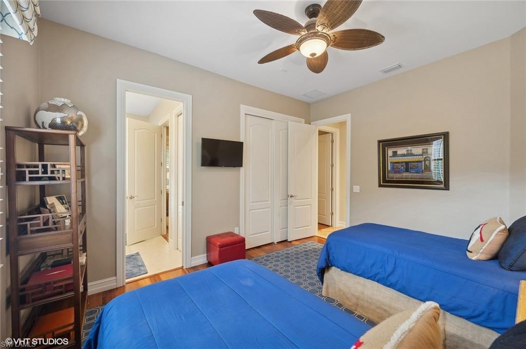 This meticulously maintained 4-bedroom/3.5 bath courtyard home in the upscale gated Banyan Woods Community in North Naples has over 3,100 sq. ft. under air. Banyan Woods HOA fees are low and its proximity to restaurants, shopping, 5th Ave, beaches, and Interstate 75, place it in a highly desirable location. This home features multiple upgrades such as blown-in foam attic insulation as well as all interior walls, new (2018) KitchenAid appliances, a gas fireplace, tile floors in the main living area, plantation shutters, custom Hunter Douglas remote control window shades, wood floors in the bedrooms and den, surround sound, private pool with fountains and hot tub/spa with waterfall feature, an outdoor kitchen with a Viking gas grill and wine cooler, a separate cabana guest house, central vacuum system, a whole-house 20 KW Kohler generator with a 250- gal propane tank, and a fenced backyard are a few. The roof and both air conditioners have recently been replaced. A complete list of upgrades is in the Supplements.