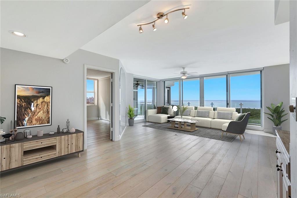 St Maarten in Pelican Bay, where coastal luxury meets unparalleled amenities in this breathtaking beachfront property. Be ready to be dazzled from the 14th floor with panoramic views of the Gulf at every turn, courtesy of floor-to-ceiling sliding glass doors and an expansive open-air balcony. Whether it's your permanent home or a seasonal getaway, this 2 bedroom and 2 bath condo with a spacious great room truly is a gem. Enjoy the convenience of upscale shopping and dining just minutes away, or take a short stroll to Naples' magnificent beaches for a day of sun and surf. Discover the true essence of waterfront living with sunset vistas over the Gulf of Mexico, and Pelican Bay's exclusive tram service to private beach clubs, complete with chairs and kayaks. Indulge in the myriad of community amenities, including a clubhouse with 18 tennis courts, fitness center, and even yoga on the beach. With two private restaurants on the beach offering delectable dining options for lunch and dinner, this property presents the epitome of coastal elegance and leisure.