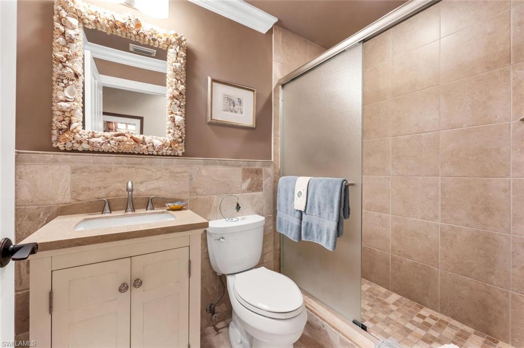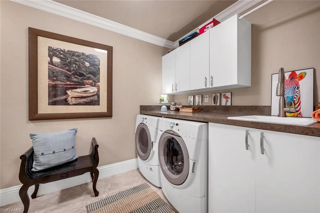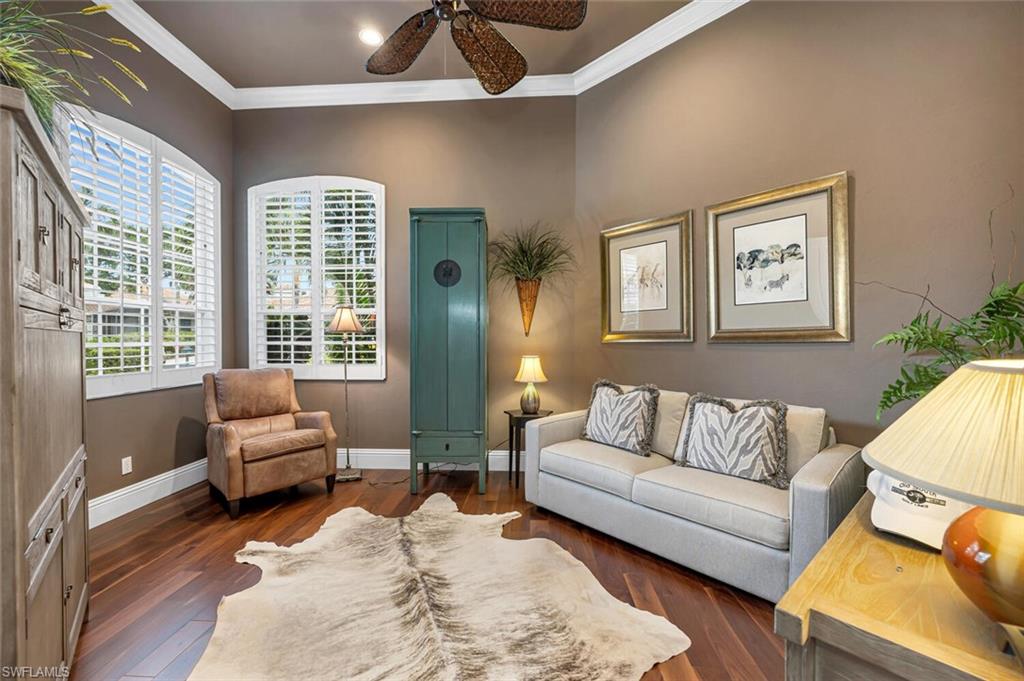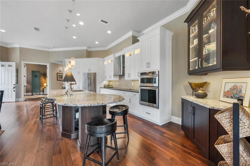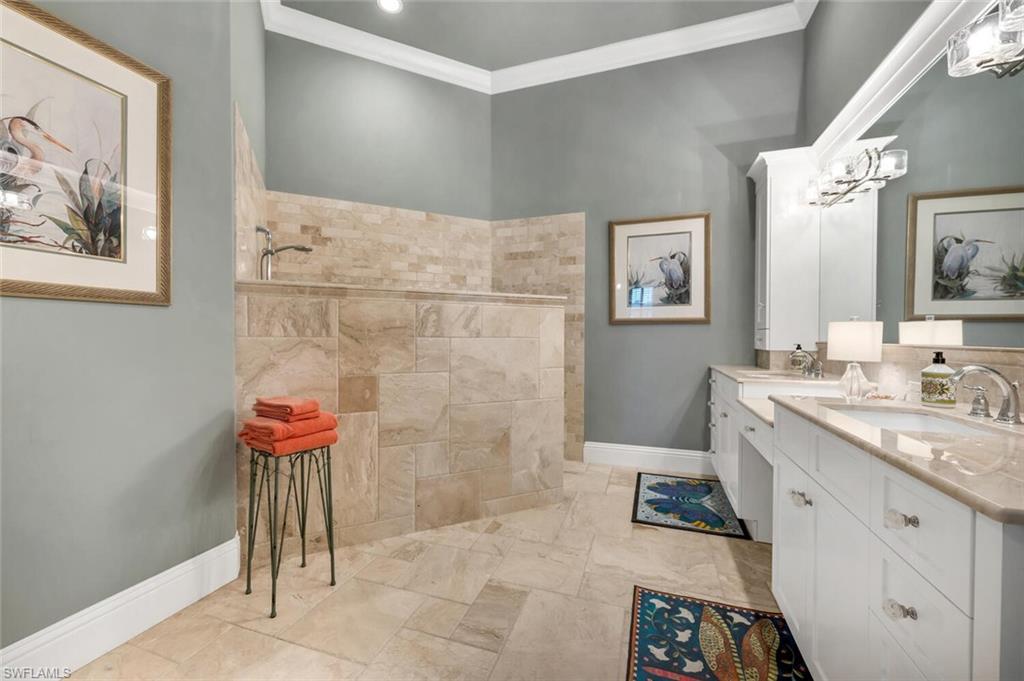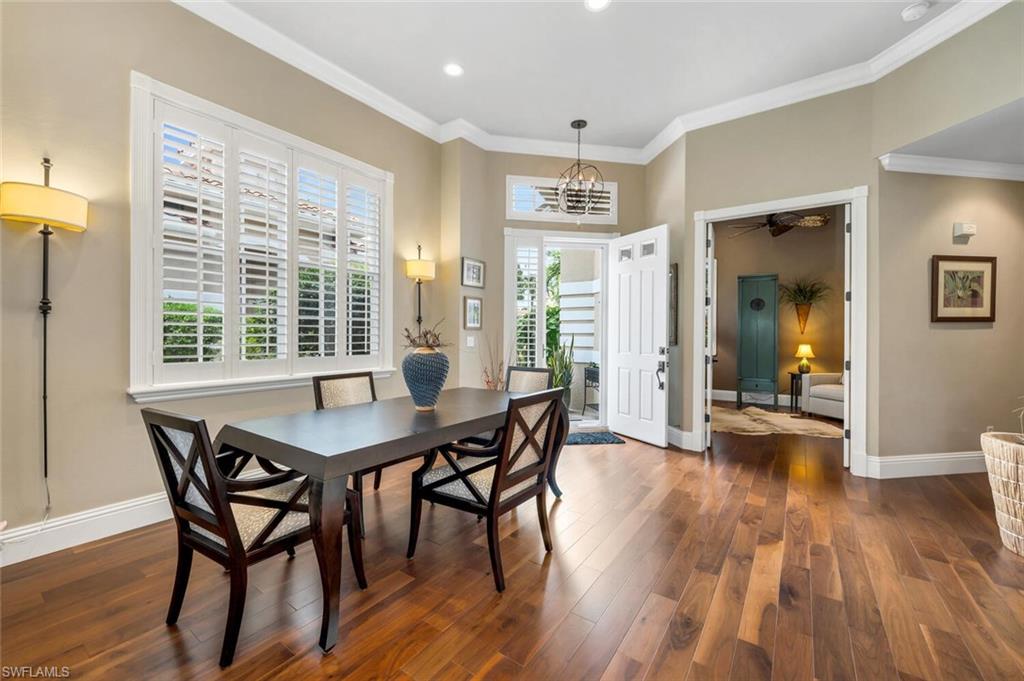 A rare opportunity to own a completely remodeled and reconfigured villa with superior design elements and upgrades. Lanai has been partially enclosed with impact glass, providing extra living area and no road noise! Center wall has been removed and replaced with a large island with seating area and extra cabinetry, providing a true open great room experience, enhanced by 12-foot ceilings. Walnut flooring with moisture barrier in most living areas, travertine tile in bathrooms, ceramic tile in laundry, and back hallway. Upgraded lighting, crown molding and baseboards, appliances, outdoor landscaping and paved walkways. See a complete list of upgrades and inclusions attached. Glassed in lanai area included in living area square footage. Pelican Landing has a robust array of amenities included in the annual dues--Competitive tennis & pickleball, kayaking, sailing, complete fitness facility with bocce courts. Private boat shuttle to Pelican Landing Beach Park on the Gulf of Mexico.