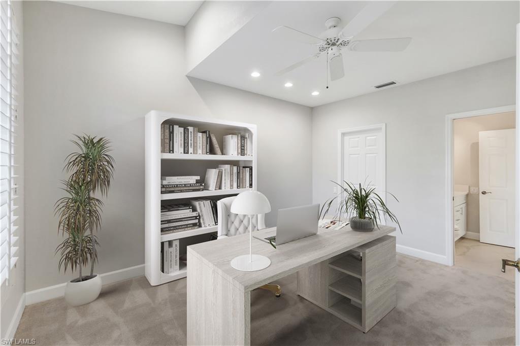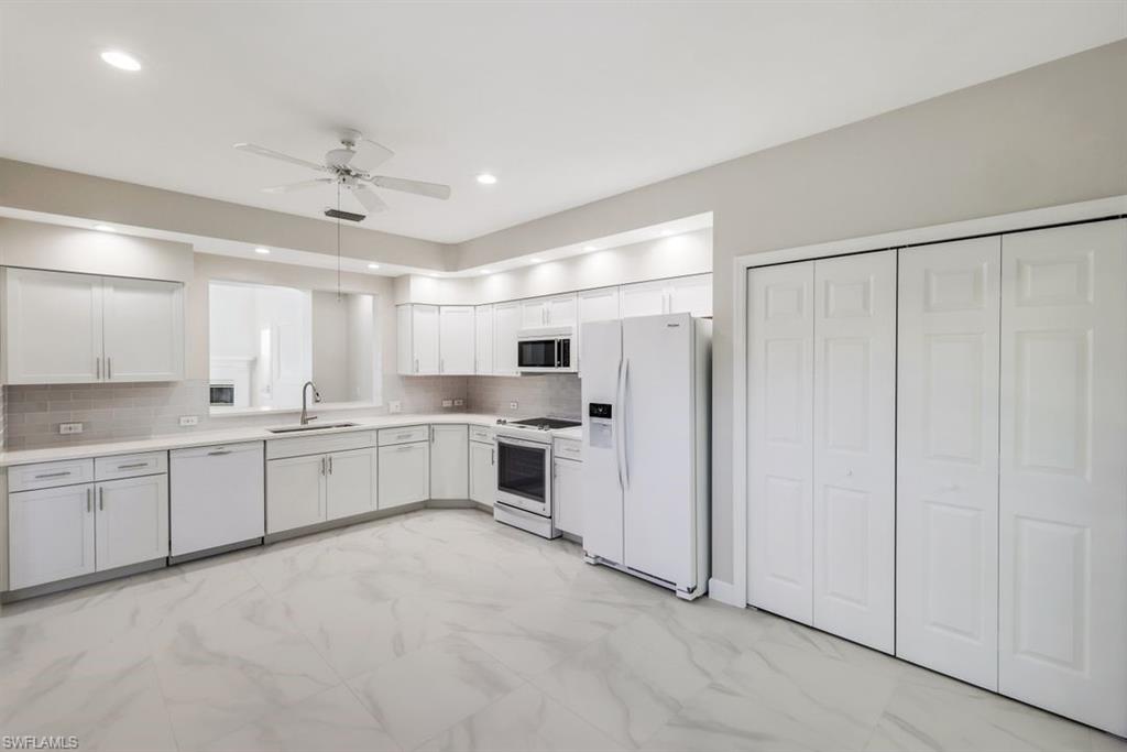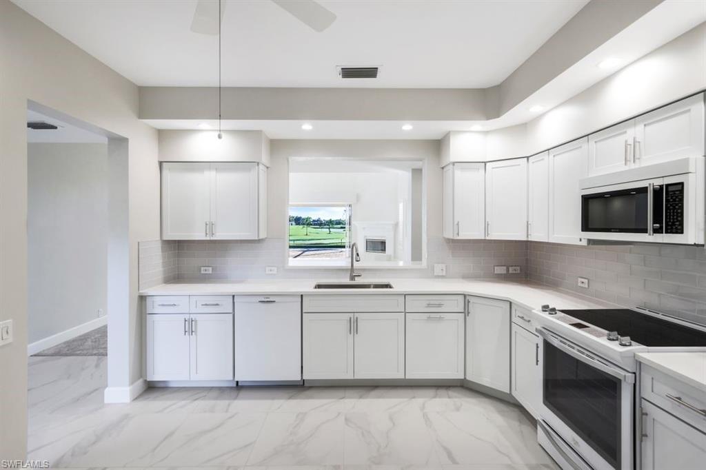 RUN, DON'T WAIT!! One of the best deals in all of Naples! This beautifully refreshed two story Aberdeen model is priced to move and packed with updates you'll love. Offering unobstructed golf course views through an oversized picture screen cage (2018), this home is a light and bright retreat ready for immediate enjoyment. The sprawling floorplan features four generously sized bedrooms, three FULL bathrooms (a rare find in the community), and a versatile loft for numerous lifestyle possibilities. Fresh interior and exterior paint add a clean and elegant look while the remodeled chef's kitchen with new custom wood cabinetry, quartz countertops, and trendy tile floors impress. The first floor owner's suite boasts complete privacy and luxury with two closets, new cabinets, countertops, and fixtures, as well as volume ceilings. Wake up with your private pool a few steps away, alongside a completely pavered lanai, covered entertainment space, and an abundance of room for lounging and sun bathing. The newer roof (2019) and A/C (2023) and new Epoxy garage floor top off a list of BIG TICKET upgrades for the new owner. Quail Creek Village homeowners enjoy a Social Membership included in the HOA fees while affordable golf dues are optional and available with no initiation fee or waitlist. Deals like this have not been seen for years, act fast!