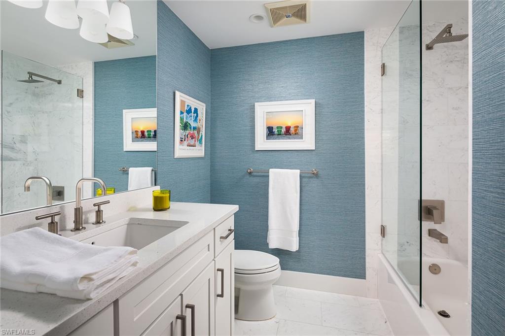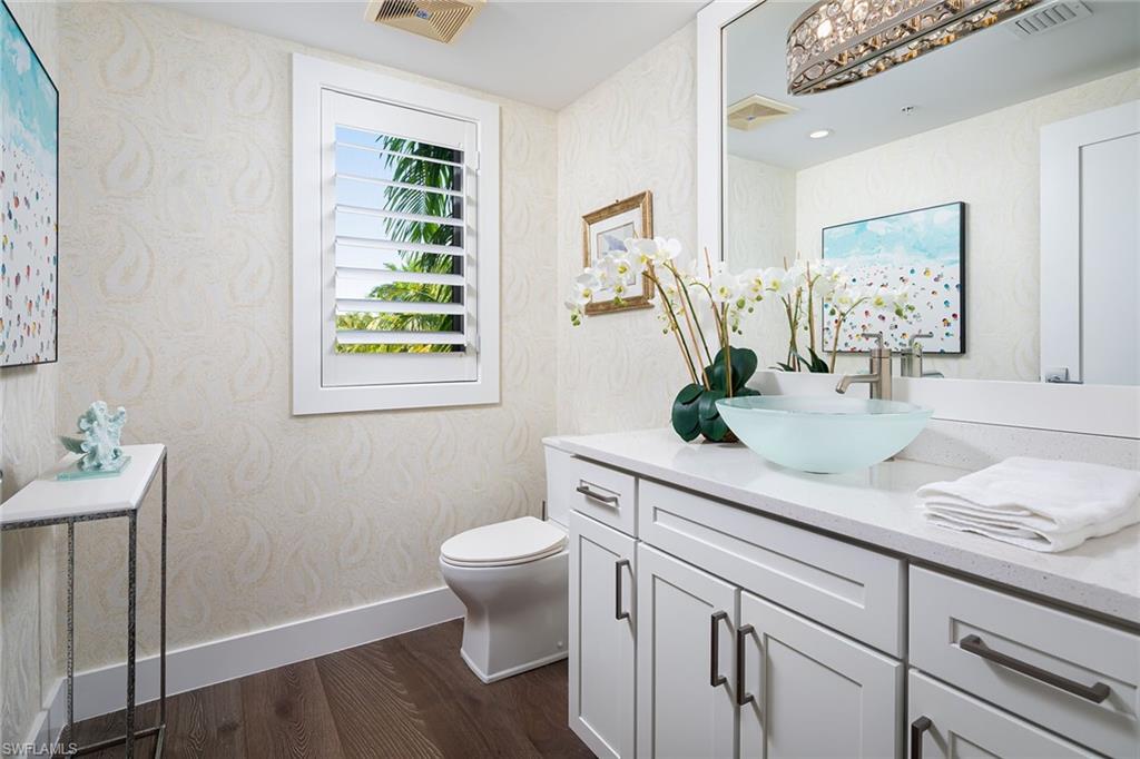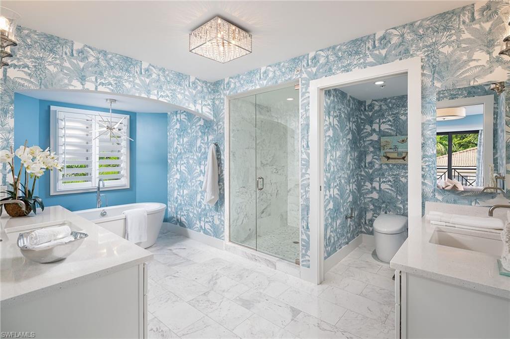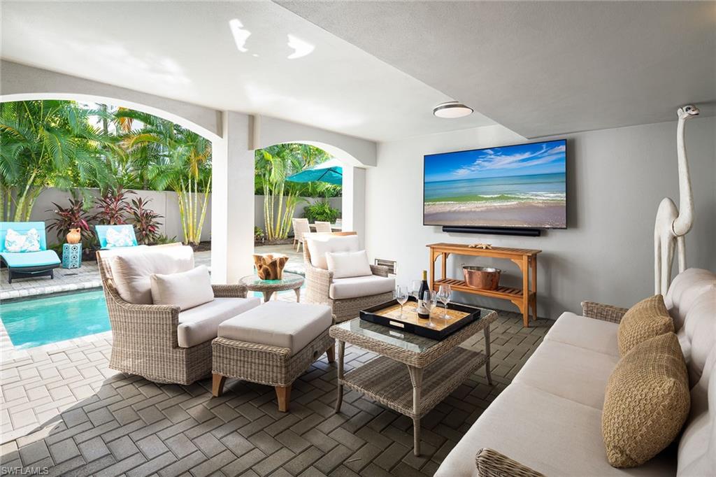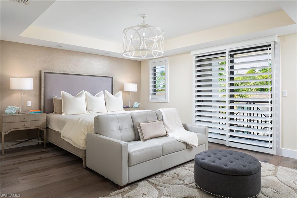 Esmeralda on Eighth offers a beautiful blend of luxury and tropical charm, ideal for those seeking a sophisticated yet relaxed lifestyle in Old Naples. The one-level floor plan offers a spacious feel, with upgrades including a built-in fireplace, wide-plank oak flooring and window treatments throughout. Crisp white kitchen offers abundant natural light, premium Thermador appliances, quartz countertops and large breakfast bar. Designer furnished and features like a coded elevator, a roomy two-car garage, and private pool and courtyard area, help strike a balance between boutique appeal and modern convenience.