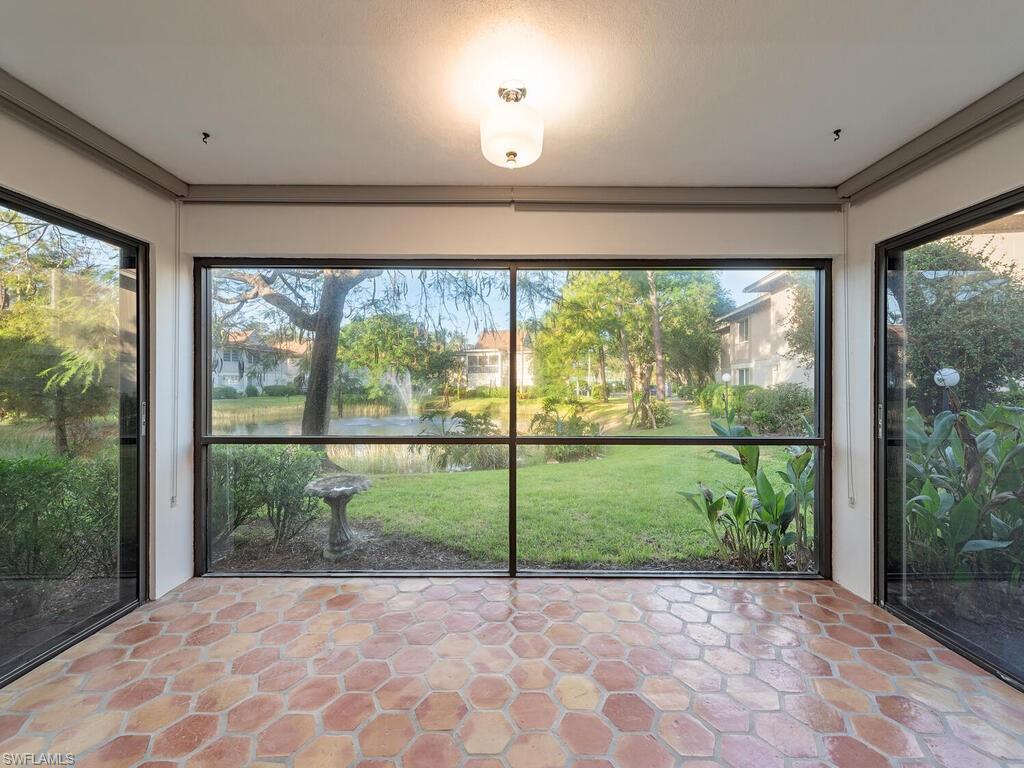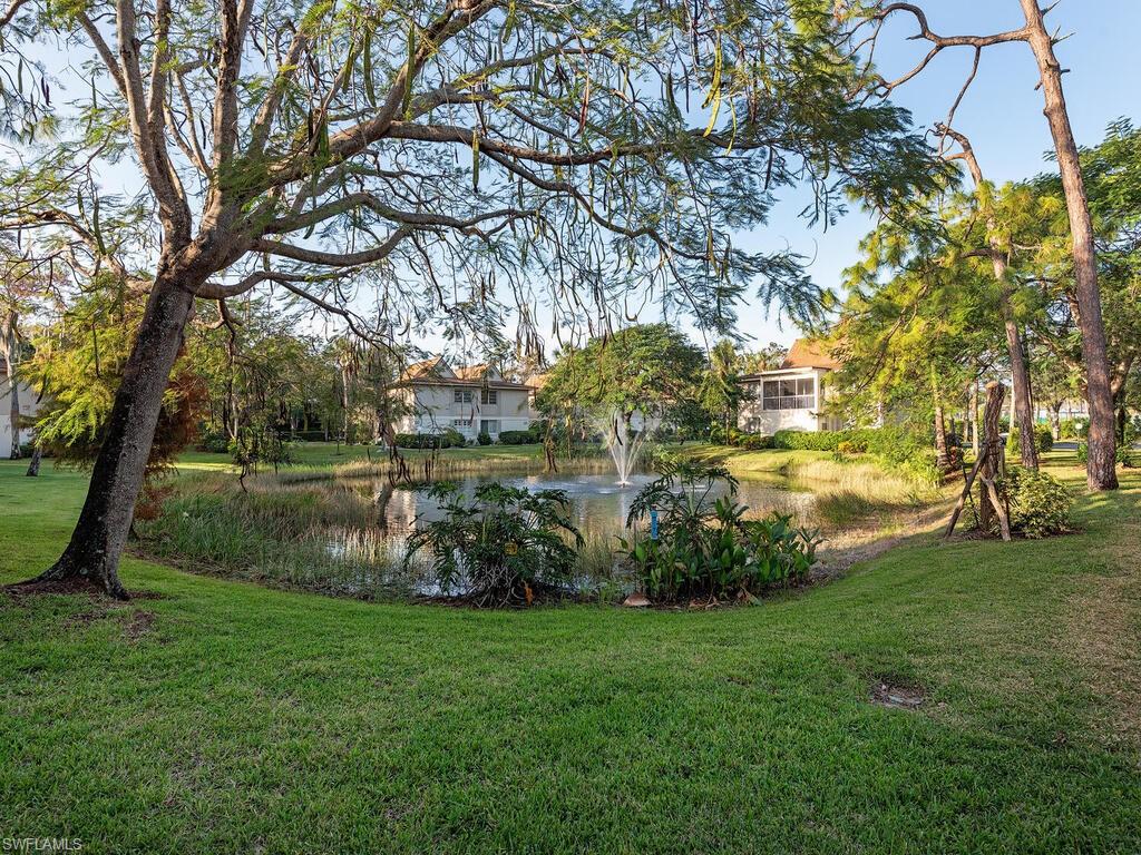 Priced to sell! This picturesque and tranquil retreat is conveniently located in the heart of Naples and less than four miles from our breathtaking beaches. The floor to ceiling windows in the great room have a spectacular view of the lake, fountain, and magical sunsets. The 1,370 sq ft, 2-bedroom, 2-bathroom home is nestled among lush, mature landscaping, creating a true tropical Florida ambiance with added pathways and bridges for walking enthusiasts and their pets. The home has been updated with new luxury flooring and light fixtures. Ample storage is thoughtfully incorporated, including an oversized closet in the primary bedroom and a spacious pantry along the entry hallway to the kitchen. A private gated walkway leads to Publix, Target, and a variety of shops and restaurants. This unit is truly a must-see!
