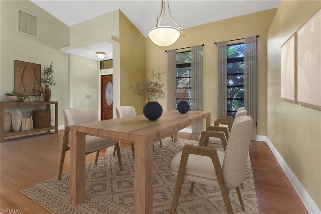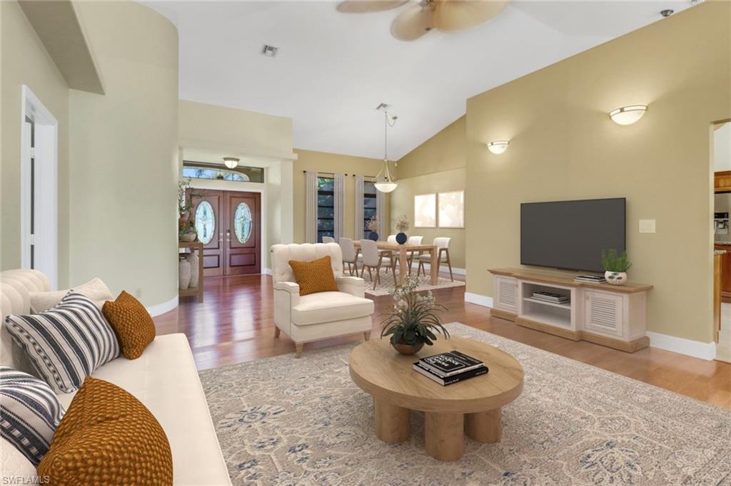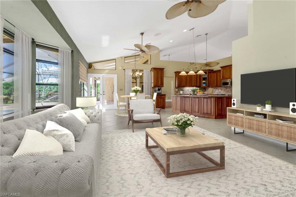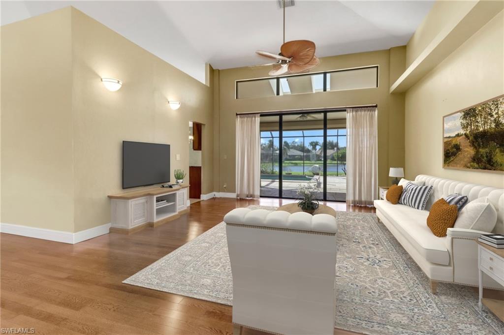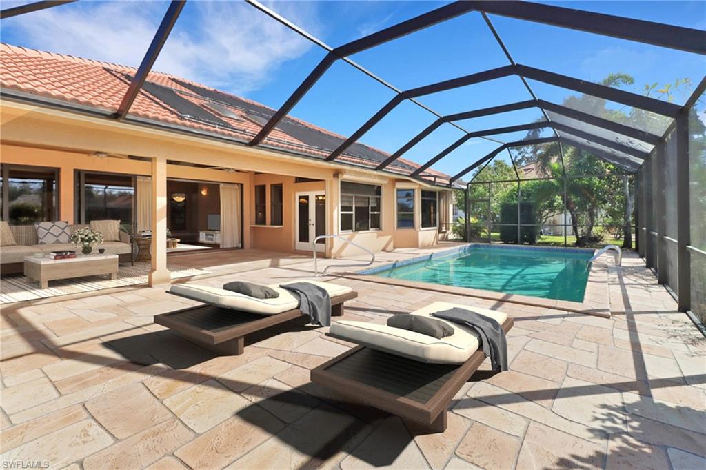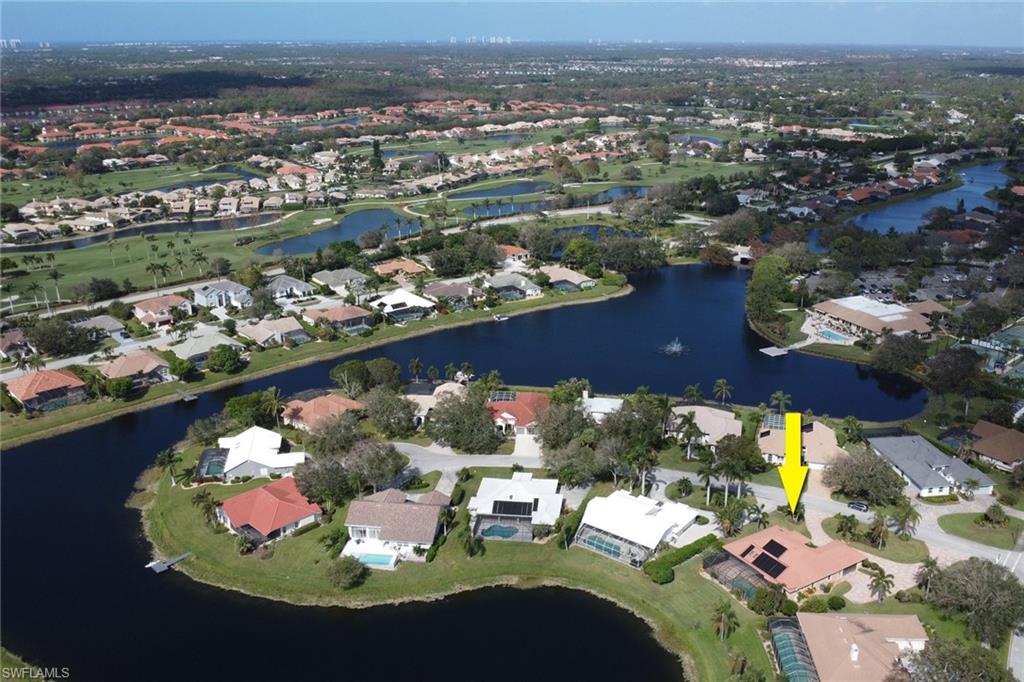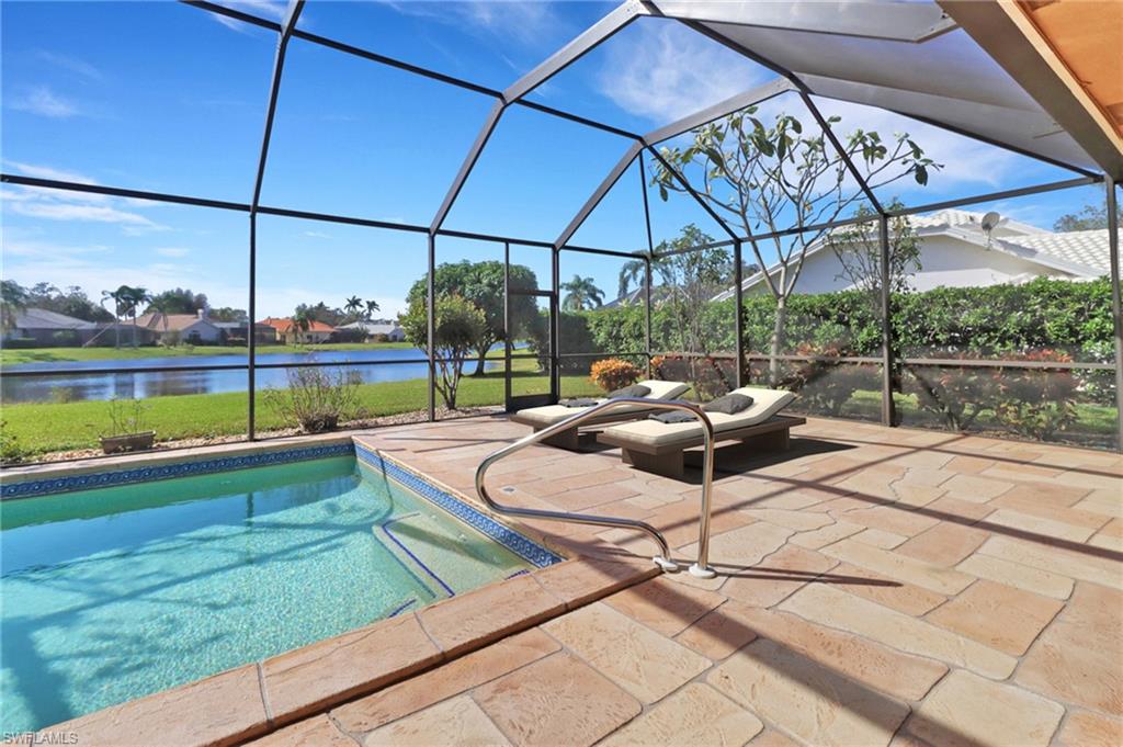 **HUGE PRICE REDUCTION** No Storm Damage**High and Dry**Welcome to The Longshore Lake Community of Naples Florida**Featuring this Beautiful Water Frontage Pool Home, with 3 Large Bedrooms, 3 Full Baths and a Half Pool Bath located on a Premium oversized Corner Lot with Pass through Driveway and a large Two car garage with extra space for storage and 8 ft tall Garage Door entry... The home has nearly 2800 Sq. Ft of Living space located on a Beautiful 17,424 Sq. Ft waterfront Lot ...Beautifully Landscaped with mature Palm Trees and Fruit trees. Beautiful curb appeal with the extensive paved driveway with parking spaces for several cars. Double Door entry way, leads into the open Foyer, Tall Cathedral ceilings throughout the common areas as well as Hard wood and Tile floors ... The Formal dining room area is located to the right of the main entrance connecting to The Formal Living room area while overlooking the Pool area, nature and Waterview's Through the Large Glass Sliding Hideaway Doors. The Master Bedroom is located to the right of the main entrance, with access to the Pool area through Glass Sliding Hideaway Doors. The Master Bathroom features a walk-in Closet, Dual Vanities, Large Walk-in Shower, a Skylight and a Huge Garden Tub. Towards the center of the Home , you'll find a very Large Kitchen/Great Room area... With a Dinette, Built-in Office Space and an informal Den area.... The kitchen has lots of natural wood Cabinetry, Granite Countertops, undermounted Light fixtures and Stainless-Steel Appliances. Bedrooms 2 and 3 are located on the opposite side of the Master Bedroom... Bedroom 2 has an ensuite Full Bathroom and a Walk-in Closet...Bedroom 3 has access to a Full Guest Bathroom located at the bedroom's entry way ... The Laundry provides to and from the garage ... The laundry has Buil-in Cabinetry and included Washer and Dryer. The garage is very spacious, plenty of room to park two cars and space for storage in the Buil-in cabinetry. The pool area has impressed concrete, the pool surface is Pebble-Tec, Gas and Solar Heating system equipped, Completely enclosed screened-in area and lots of covered Lanai space, Pool Half bath and a storage closet. Other outstanding features of this home: Automatic Hurricane Shutters, Ceramic Tile Roof, Whole House in Wall Vacuum System, Water Softener..."What more could you ask For" Longshore Lake has many amenities to enjoy, including Clubhouse Dining/Restuarant, Fitness Center, Professional Tennis Programs, Social Groups and Clubs... one of my Favorites is ( The Longshore Lake Women's Club (LLWC) it was established in August 1990. 34 years ago.It's logo states "The Heart of the Community." It's goals are Community, Service and Social. Where Friendships Begin.Also you have Private and Public Golf courses are nearby along many Shopping centers, Restuarant's, Beaches... Schedule your tour today.