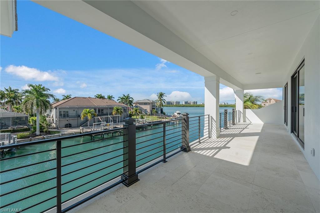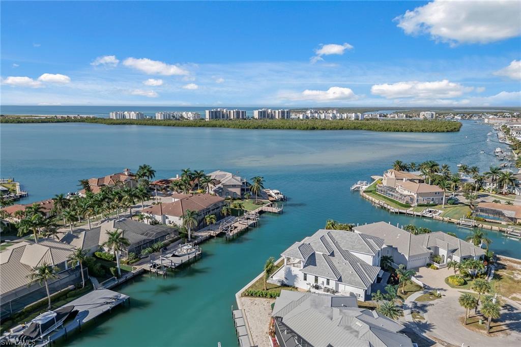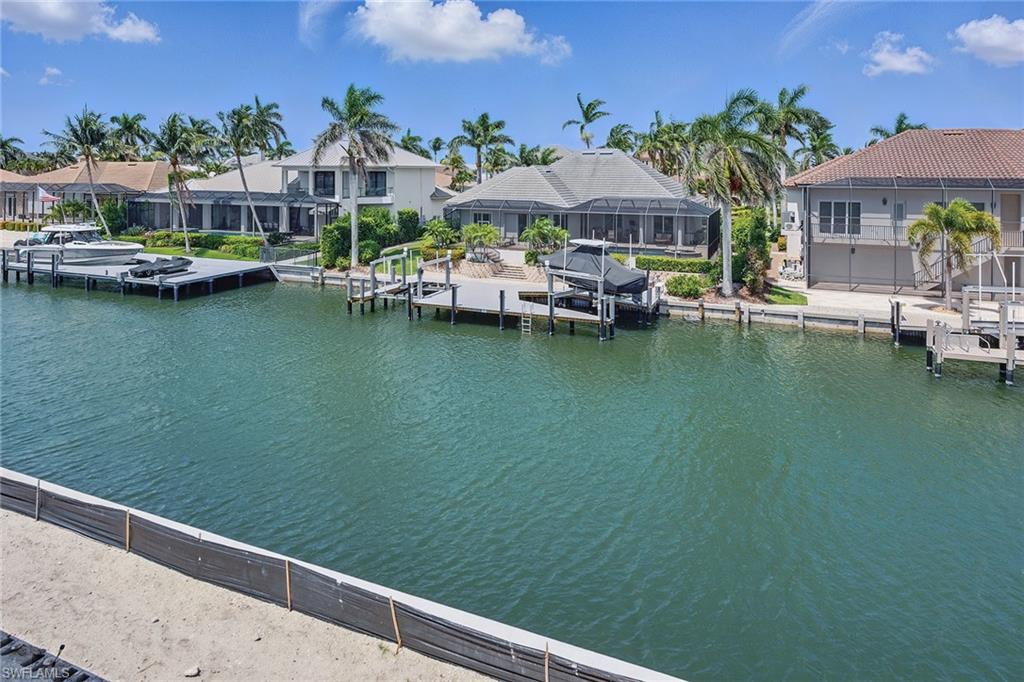 Experience refined living in this exceptional new construction estate by award-winning Stonebreaker Builders, now nearing completion with delivery anticipated by December 2025, where architectural brilliance and timeless craftsmanship converge. Set on a rare tip lot offering 176 feet of waterfront, this residence captures mesmerizing western sunset views over expansive converging waterways, with vistas stretching across Collier Bay toward the Gulf. This is a rare opportunity to own a custom Stonebreaker home in one of the island’s desirable neighborhoods, offering proximity to Snook Inn, Old Marco entertainment district, the Esplanade and Residents’ Beach. Designed for luxury and livability, the impressive 3,896-square-foot two-story estate offers 176 feet of waterfront and quick direct Gulf access, an exceptional advantage for boating enthusiasts. This five-bedroom residence features five full en-suite baths, two half baths, a flex room and a three-car garage, all executed with Stonebreaker’s signature attention to detail. The exterior showcases a flat tile roof, impact doors and windows, and an elevated homesite over 11 feet. A grand foyer with a soaring two-story ceiling immediately sets an elegant tone. The open-concept great room, kitchen, and dining area feature 12-foot ceilings and expansive glass accordion doors that frame shimmering pool and bay views, creating effortless indoor-outdoor living. The great room centers around a striking 60-inch gas fireplace with a tray ceiling, while the chef’s kitchen impresses with a beamed ceiling, gas cooktop, large center island and walk-in pantry. The outdoor living area is ideal for luxurious waterfront entertaining, offering a covered lanai with an outdoor kitchen, built-in gas grill, outdoor shower, a dedicated pool half bath, and a 30-foot pool with spa and sun shelf. The main-floor owner’s suite provides a serene retreat with lanai access, two walk-in closets, and a spa-inspired bath with dual vanities, built-in makeup counter, linen closet, dual walk-in shower with multiple showerheads, and a deep soaking tub. A secondary owner’s suite on the first floor also offers lanai access, a walk-in closet and an en-suite bath. Upstairs, a spacious flex room creates an ideal lounge space and opens to a remarkable 65-foot covered balcony overlooking Collier Bay and the Gulf. Three additional second-floor bedrooms each feature private en-suite baths. Additional highlights include a mudroom off the garage and a tankless water heater. Embrace sophisticated waterfront living in this unparalleled Marco Island residence, crafted with exceptional quality and now approaching its final stages, with completion expected by end of 2025.