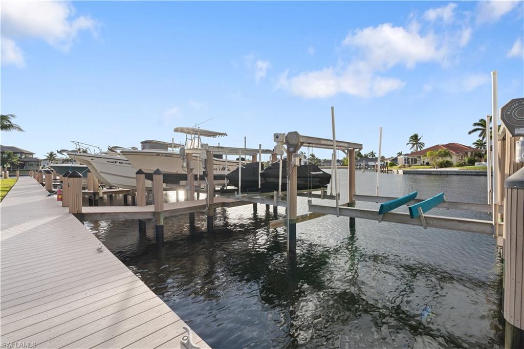 Enjoy stunning waterway views and breathtaking sunsets from this elevated, rarely available and pet friendly 3-bedroom condo with a garage, deeded boat dock with a lift (installed in 2021 for up to 10,000 lbs), being offered move in ready, furnished, turnkey! Step inside to an open-concept living and kitchen area with vaulted ceilings and gorgeous converging water views. The updated kitchen features granite countertops, stainless steel appliances, and extended cabinetry. Relax on your spacious lanai, perfect for morning coffee or evening sunsets. The primary suite offers beautiful views, a new accent wall, ample closet space, and an ensuite with dual vanities, a walk-in shower and separate soaking tub. The second and third bedrooms each feature charming window nooks. Impact windows and sliders add extra comfort and security. Waterway Pointe amenities include a community pool and club room. Conveniently located near Marco Island Racquet Club, Mackle Park, and just 1.5 miles to Resident's Beach. Don’t miss out on this tropical paradise—make it yours today!
