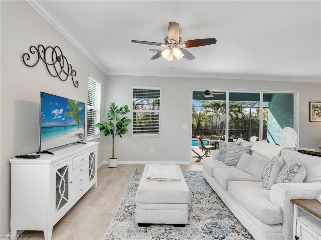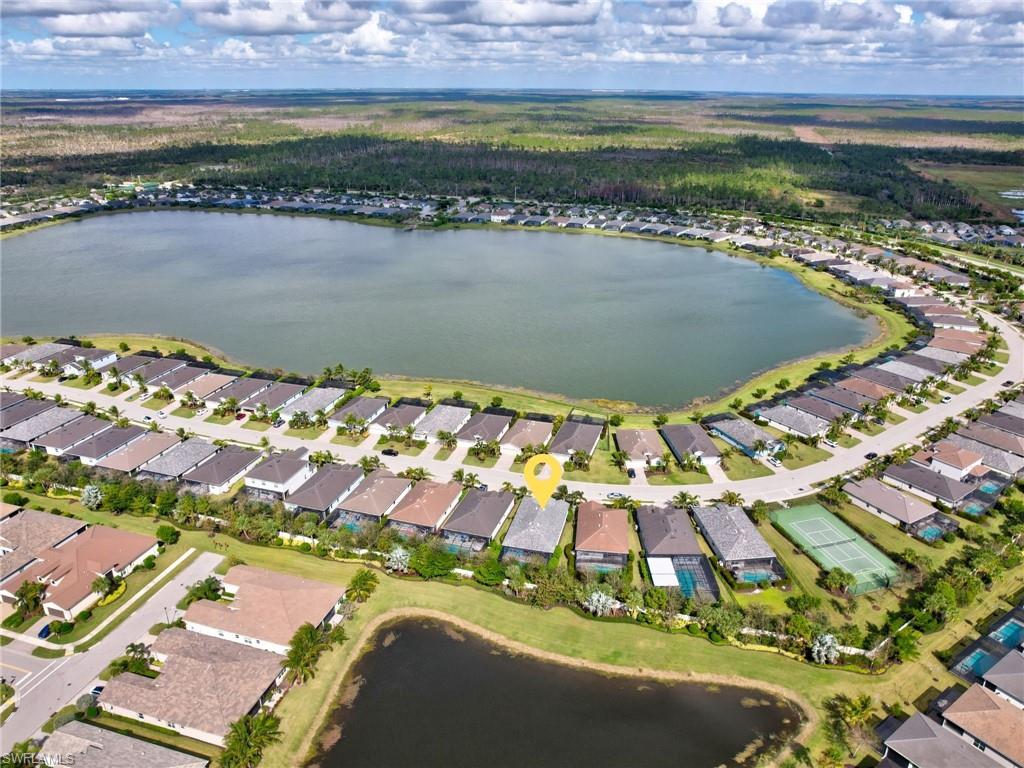 This home has a preferred SOUTHERN rear exposure (unlimited sunrises) and is extremely PRIVATE as it does NOT have a house located behind it. NEWER home (built in 2020) and over 2,200 square feet. 3 bedrooms + a den and 3 FULL bathrooms. NEW carpet in bedrooms. Whole house WATER SOFTER system stays with the home. Perfect for entertaining with the OPEN concept inside and private heated POOL and SPA on the screened in lanai. Exterior of the home CAN be painted to a more neutral color after closing. Bonita Landing a GATED community (there are TWO gates – this house is SUPER close to the second one) is a five minute drive to I75 and shopping and dining at the Midtown Bonita shopping center that should be built this or next year. Also about 20 minutes from the sugary white sand on Bonita Beach as well as the airport. Bonita Landing is located directly across the street from CREW Flint Pen Strand Park, a preserved watershed crossed by 10+ miles of trails and wildlife. ***** THERE IS A VIRTUAL TOUR LINK YOU CAN CLICK ON FOR MORE INFORMATION *****