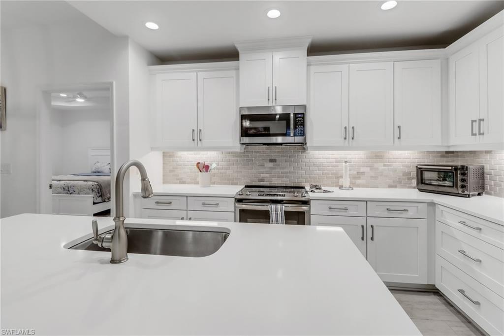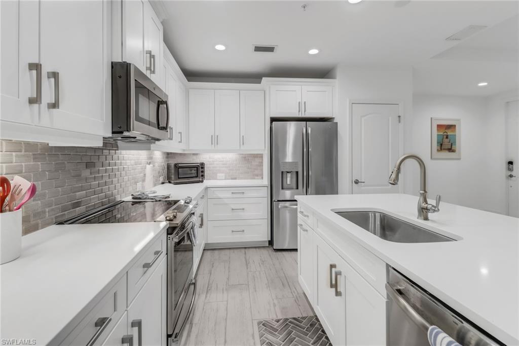 Stunning Turnkey Furnished, First Floor, End Unit, 2-Bedroom, 2-Bathroom Condo in Avalon of Naples. This beautifully updated condo offers the perfect blend of comfort and style. The spacious open-concept living area features high ceilings, tile flooring, and a light-filled ambiance, perfect for relaxing or entertaining. The modern kitchen is equipped with stainless steel appliances, quartz countertops, and ample cabinet space. The master suite includes a private ensuite bathroom with dual sinks and a walk-in shower, while the second bedroom is equally inviting with access to a full guest bathroom. Enjoy outdoor living on your screened lanai, offering peaceful views of the lush landscape. Avalon of Naples provides a serene community featuring excellent amenities, including a sparkling pool, clubhouse, fitness center, and more. Located just minutes from 5th Ave, 3rd St, Naples’ sugar sand beaches, shopping, dining, and entertainment, this move-in-ready condo is ideal for seasonal or year-round living. Don’t miss out on this exceptional opportunity—schedule your showing today!