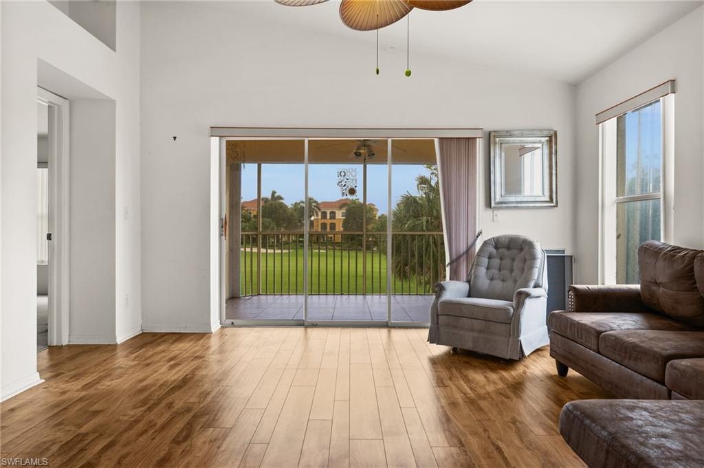Brand New HVAC system installed!!!This beautiful 3-bedroom, 2-bathroom condominium is located on the second floor and offers breathtaking southern views of the Hammock Bay Golf Course. As an end unit, it is flooded with natural light. The spacious living area boasts vaulted ceilings, creating an open and airy feel. Elegant laminate wood flooring flows throughout with carpet in the bedrooms. Enjoy the screened lanai at the front and rear—ideal for sipping morning coffee, reading, or hosting guests amidst beautiful surroundings. With a washer/dryer conveniently located in the unit. Community pool located nearby for convenience and comfort. Covered parking provides protection for your vehicle, and the condo's prime location between Marco Island and Naples puts you near stunning beaches, upscale shopping, and fine dining options. This property offers the perfect blend of relaxation and luxury, making it more than just a home—it's a destination where every day feels like a vacation. Welcome to Fairways at Marco Shores!