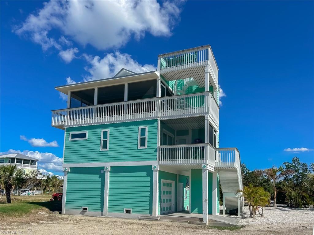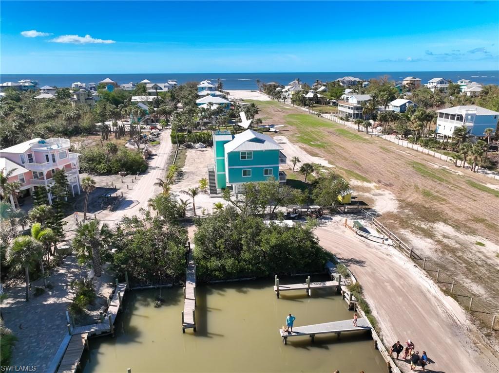 One of the Newest Homes recently built on North Captiva! Just completed in 2022, this home still feels pristine and like brand new! Built to the latest wind codes and with upgraded interior fixtures, decor, and finish. This 3 bedroom and 3 bath home is located directly on North Captiva's private airstrip, offering excellent access for pilots as well as scenic views of the Gulf and Bay. The reverse floorplan of this home even offers views from the lower bedroom level as you gaze across the green space of the airstrip to the beaches at either end. The master suite offers a full en suite bath with a walk-in shower, private commode room, double sinks, and a large dressing room/closet. A large laundry space is conveniently located between the bedrooms. Two more exquisitely decorated guest bedrooms share a hallway bath with a deep soaking tub/shower combo. The upper level will impress with its large open-concept kitchen, dining, and living space open to the large covered and screened outdoor porch. The kitchen's central island will become the heart of your home, with dining spots on each side of the island. This kitchen offers a full pantry, quartz countertops, stainless steel appliances, large amounts of storage space, seating, and more. You have views of the bay right from a cozy coffee corner table, while the sparkling waters of the gulf are just outside your sliding glass doors. Enjoy the sunsets from your top-level lookout tower just off the living area. The private elevator rises from your ground-level entrance space and storage garage to the first and second levels of the home for your convenience and comfort. If you have been looking for a newer, move-in home on North Captiva, this is the one! Don't miss it!