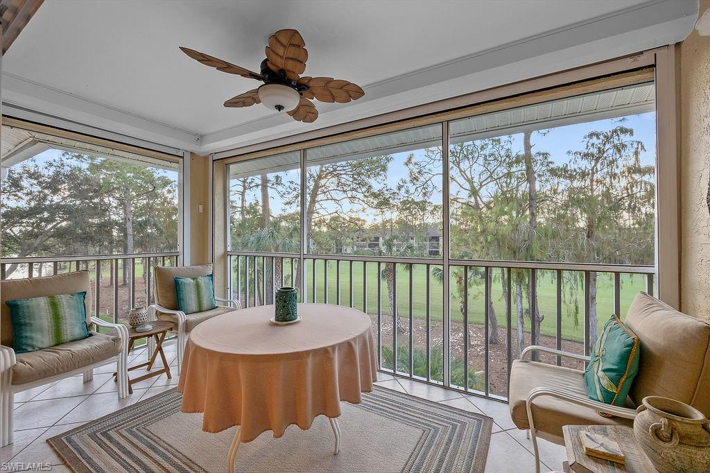 Welcome to Amberly Village! This beautifully maintained condo has been recently given a stylish decoration update, enhancing its charm and move-in-ready appeal. Meticulously cared for, the home also boasts important upgrades including updated plumbing, HVAC, water heater, a total home surge protector, and so much more for your peace of mind. One of the true highlights of this home is the spacious two-sided lanai—perfectly designed to capture both natural light and panoramic views. Outfitted with protective storm screens, it offers peace of mind as well as a versatile space to enjoy year-round. Whether you’re sipping your morning coffee or winding down in the evening, this is the ideal spot to relax and soak in the breathtaking, unobstructed sunsets that paint the sky with vibrant colors night after night. Amberly Village is an amazing community filled with amenities and social activities to enjoy every day. Spend your time golfing, playing tennis, bocce, or pickleball, relaxing by the pool, taking a chair yoga class, or gathering with neighbors at Tuesday happy hours. The Royal Wood Clubhouse adds even more to love with its full-service restaurant, grill room for watching your favorite sports, fitness center, pro shop, card room, and library. With so many opportunities to relax, stay active, and connect, life here truly feels like resort living!