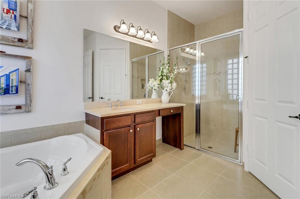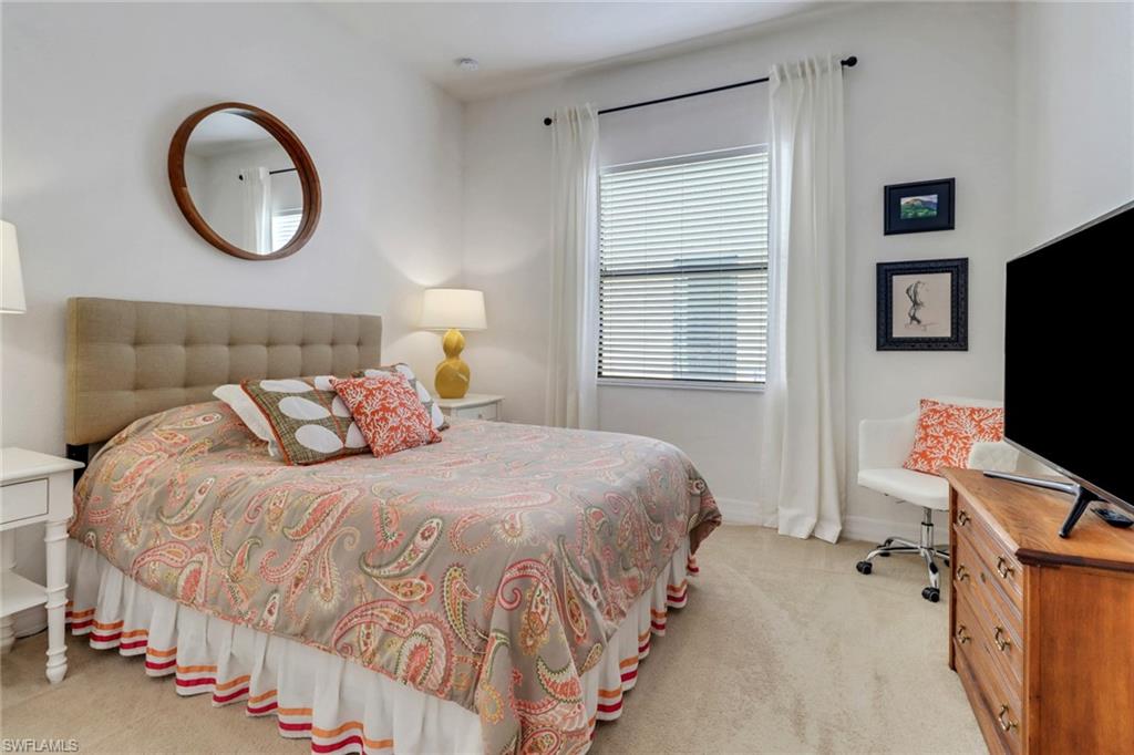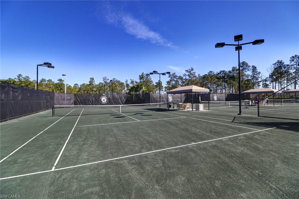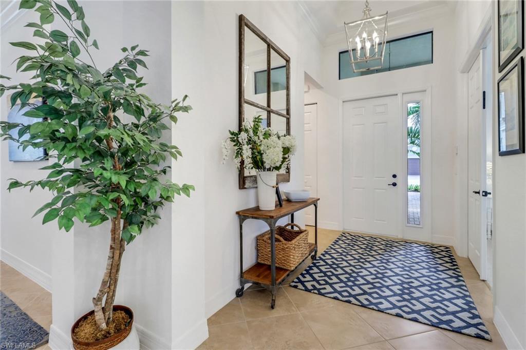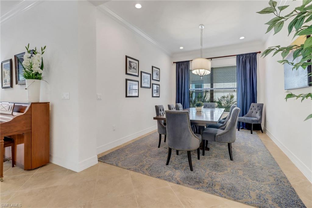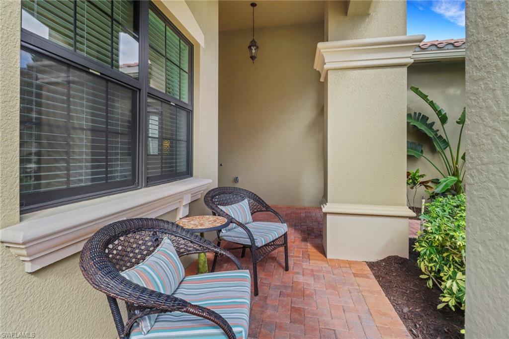 Riverstone is a sought after neighborhood with residents enjoying resort style amenities and an abundance of preserve and green spaces throughout the development. Private backyard oasis with breathtaking sunset skies for this tranquil preserve lot. Move in ready!!! Burgundy floorplan offers 2081 sq.ft of living space. Living is easy in this desirable home whether it is a vacation home or primary. Home offers 2 beds, a den, formal dining room, 2 full baths, heated pool & a 2 car garage. This home shows beautifully, open concept layout throughout the home is ideal for entertaining. Tastefully decorated, with exquisite light fixtures sparkle throughout offering plenty of light! Kitchen has stainless steel appliances, white cabinets & a large countertop which makes entertaining easy! Open to the kitchen is the living room right in style with navy blue & white cool tones, volume ceilings, crown molding & custom curtains. Laundry room is extra large with cabinets above. A sprawling lanai lanai with plenty of seating & plenty of sunshine! Items replaced are kitchen refrigerator 2025, pool heater, screen cage, garbage disposal, kitchen faucet, brand new sink in laundry room 2025. The 2 car garage offers racks and cabinets. Riverstone is a wonderful community location is great easy access to Bonita ! Amenities include, tennis, pickle ball, indoor basketball, billiards, exercise room, bike & jog path, clubhouse & resort style pool, lap pool, community room and billiards.
