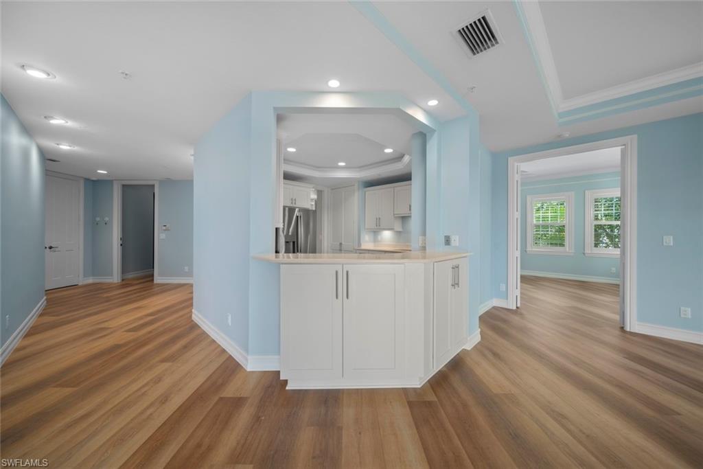 An exceptional offering at the Heron II, located on the south side of the building allowing for ample natural light and long views across the 9th fairway to preserve. The entire unit features impact resistant glass windows extending to an enclosed lanai affording additional living sqftg. A stunning newer kitchen with neutral appointments blends beautifully with the living space and gorgeous hardwood flooring. This low density complex is private with preserved land across the street and a heated pool shared with only one other building of 6 units. The Heron also has the benefit of a private garage and foyer along with ample storage. Superbly constructed and professionally maintained. Make this exquisite unit a wonderful place to call home within the Audubon recognized club, The Sanctuary. New air handler installed. The unit has just undergone some updating including new luxury laminate plank flooring, interior painted, new fixtures and hardware.