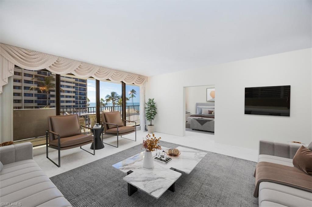 This is an extraordinary opportunity to own the LARGEST condo currently available in Gulfside, one of Park Shore’s most prestigious beachfront residences—now offered with a SIGNIFICANT PRICE IMPROVEMENT. This expansive second-floor unit spans over 1,600 square feet and features 2 bedrooms, 2.5 bathrooms, and a versatile den that can easily be converted back into a third bedroom, providing valuable additional living space. Upon entry, you’re immediately greeted by sweeping views of the Gulf of Mexico, lush tropical landscaping, and the stunning coastline. Thanks to its unique corner position, the condo also offers captivating vistas of the bay and city skyline, delivering a peaceful yet dynamic atmosphere throughout. The oversized private terrace is ideal for dining, entertaining, or simply enjoying the iconic Florida sunsets. Inside, the open-concept design centers around a chef-inspired kitchen, complete with an induction cooktop and double oven—perfect for the culinary enthusiast. Thoughtfully designed for comfort and convenience, the home also includes hurricane shutters, generous storage, and a flexible layout suited for both full-time living and seasonal escapes. A perfect INVESTMENT OPPORTUNITY or the chance to create your ideal Naples home. As a Gulfside resident, you’ll enjoy a wealth of amenities including private beach access, a beachfront pool, fitness center, updated common areas, and 24-hour front desk service. A comprehensive building renovation is currently underway and set for completion in 2025, promising an even more luxurious lifestyle with brand-new, modern amenities. Ideally located just minutes from Venetian Village, Waterside Shops, and downtown Naples, this rare offering places you close to world-class dining, shopping, and entertainment. Whether you're looking for a serene coastal getaway or a permanent residence, this condo delivers exceptional value in one of Naples’ most desirable beachfront communities.