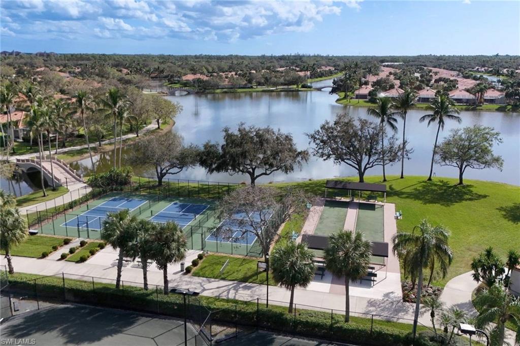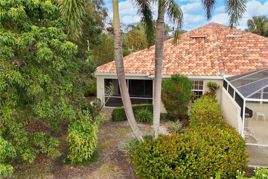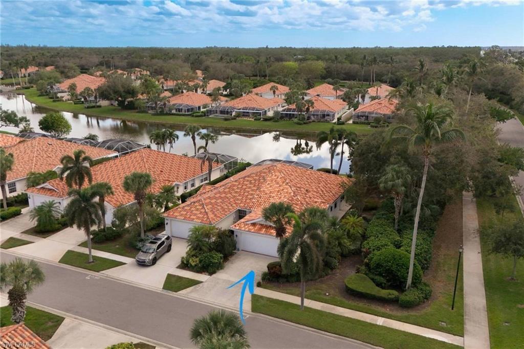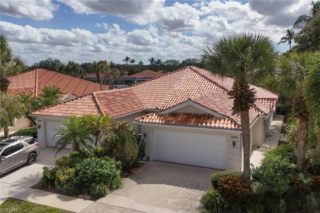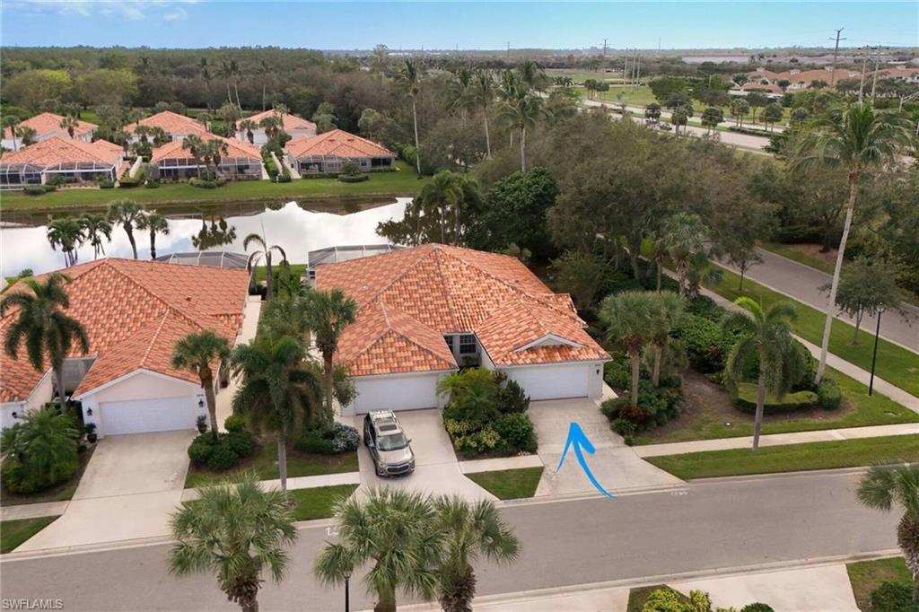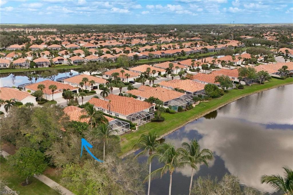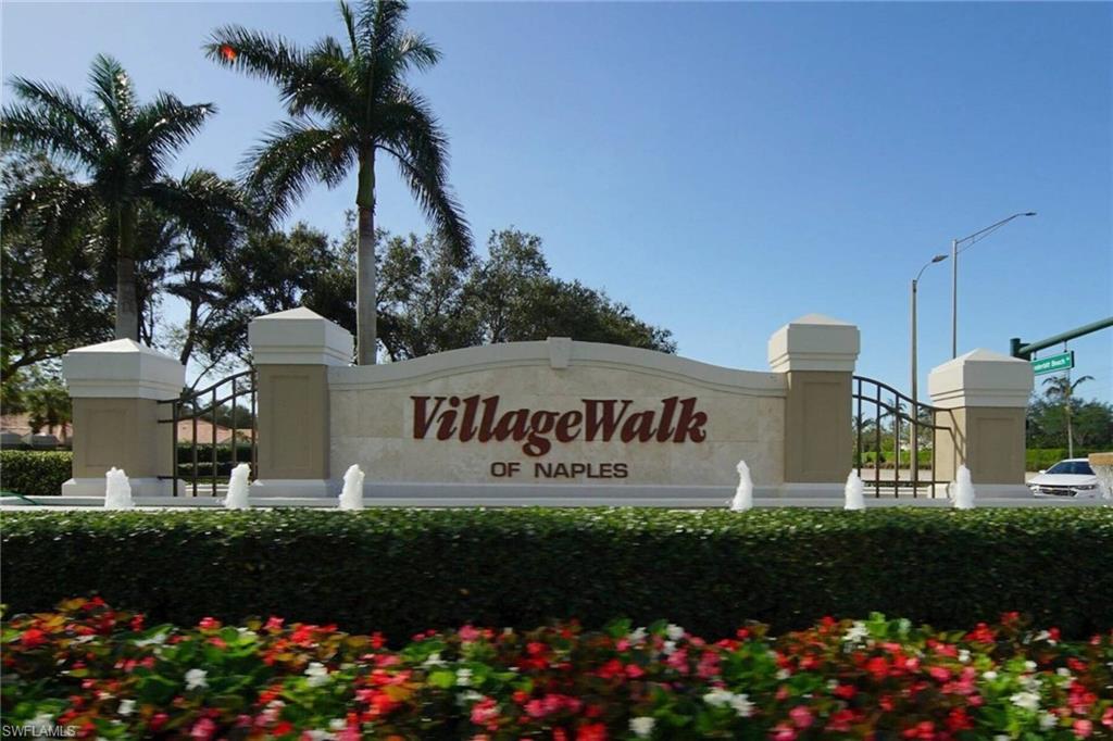 NEW ROOF COMPLETED MAY 2025. Lovely 2 Bedroom + Den lakefront “Capri” villa in Village Walk, an award-winning amenity rich, lifestyle community in Naples, FL. This beautifully maintained home features 1522 sf living area, spacious kitchen with serving bar that is open to the dining and family room. A split floor plan provides privacy for the Master Suite. The second bedroom and bath also layout perfectly with privacy for its occupant or guest. Additional features include New AC (2020), New Hot water heater (2025) closet organizers, central vacuum, beautiful white high gloss tile flooring throughout main living areas with laminate in bedrooms. A magnificent corner lot with extraordinary landscaping overlooking one of the many beautiful lakes in Village Walk make this the perfect home. This home is being sold Unfurnished, As-Is. Come enjoy the Florida Lifestyle at is best, with Village Walk’s phenomenal location on Vanderbilt Beach Road, Town Center, 3 heated community pools, restaurant, fitness center, six Har-Tru Tennis courts, bocce, pickleball and miles of scenic pedestrian walkways and bridges.