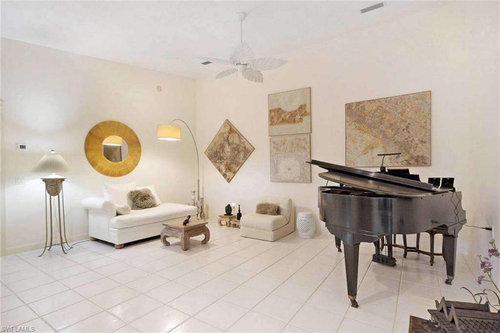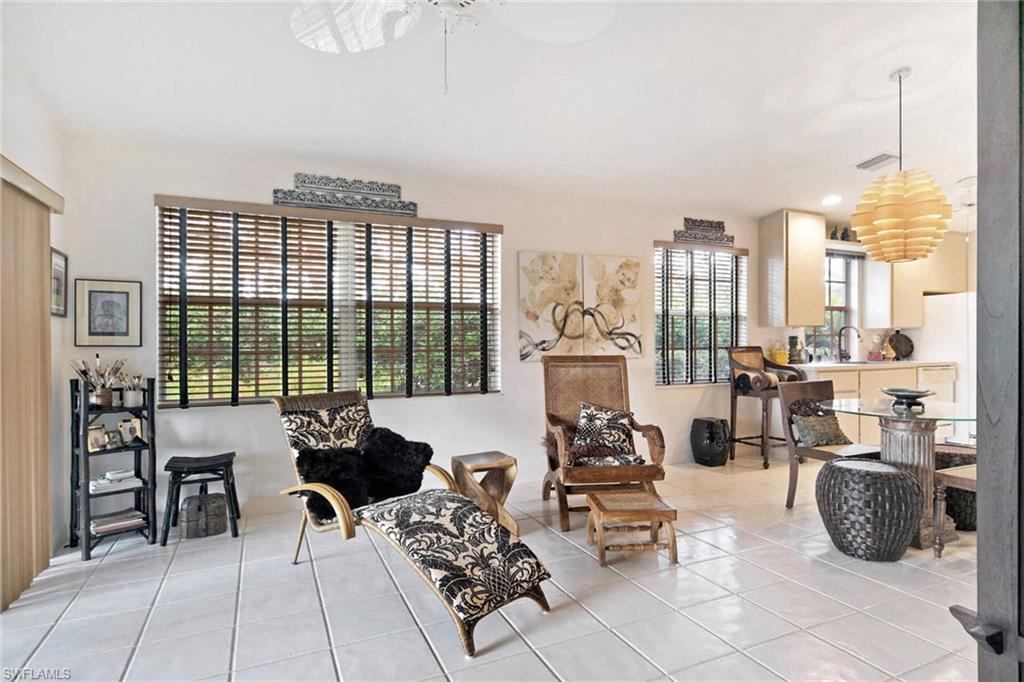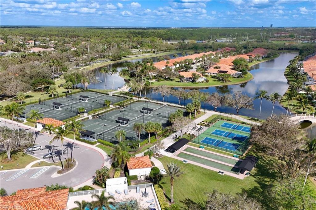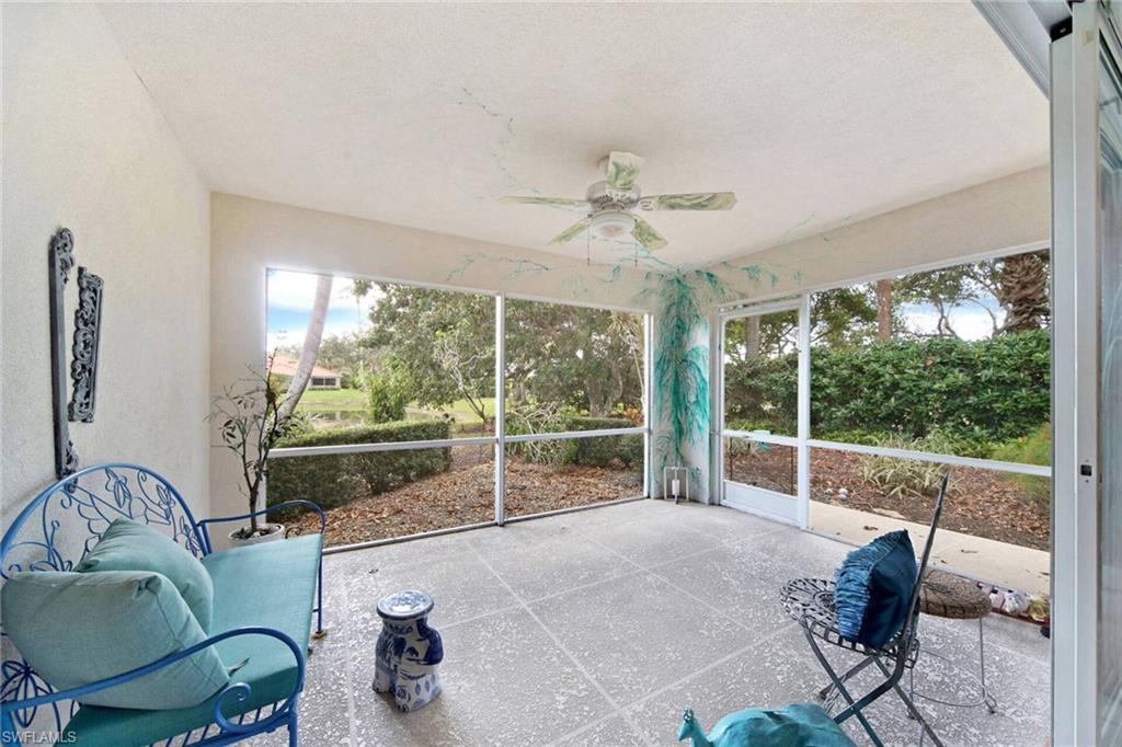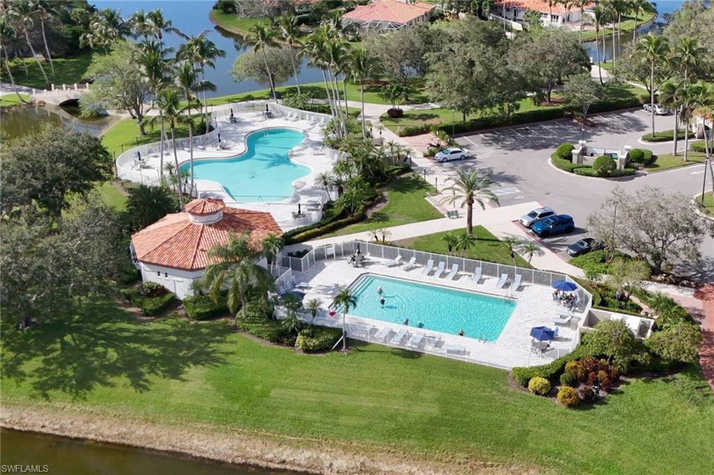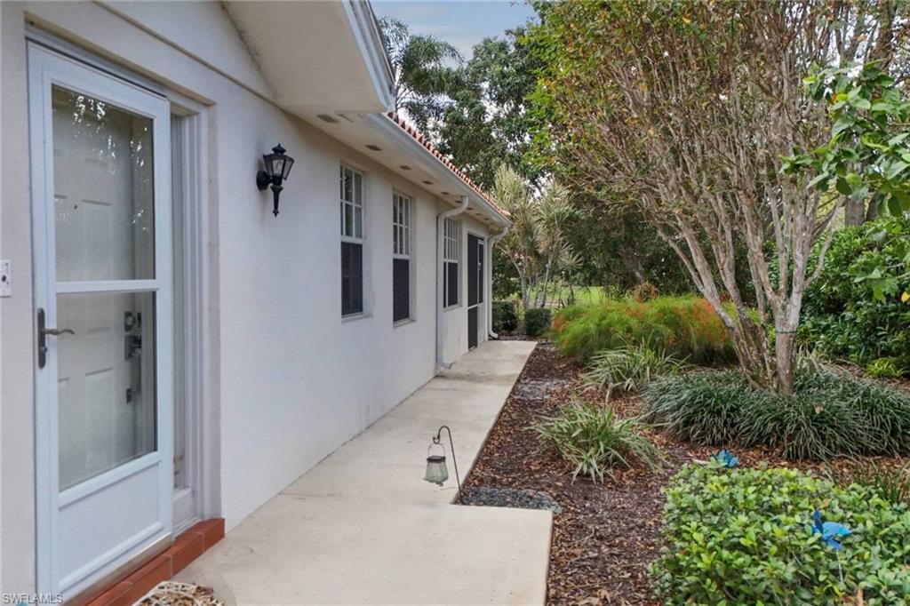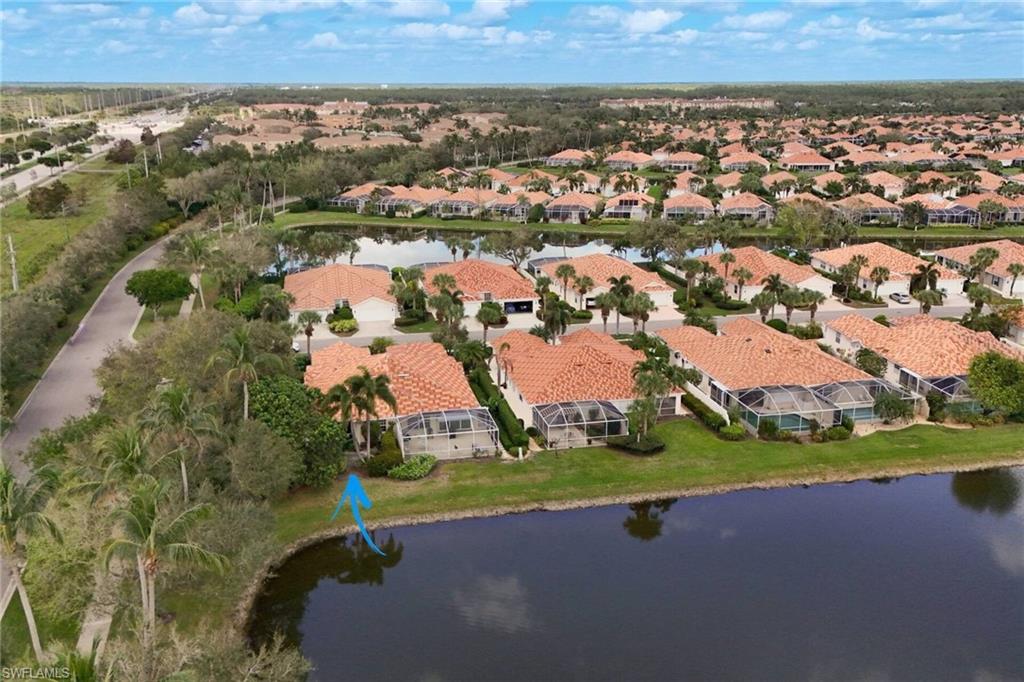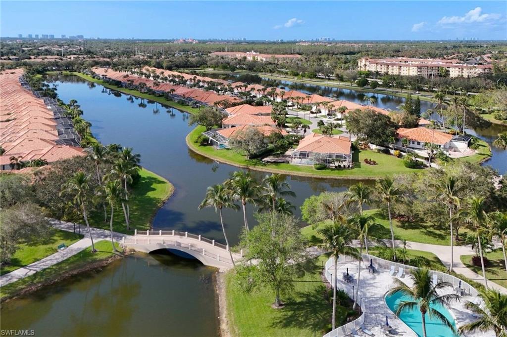 NEW ROOF COMPLETED MAY 2025. Lovely 2 Bedroom + Den lakefront “Capri” villa in Village Walk, an award-winning amenity rich, lifestyle community in Naples, FL. This beautifully maintained home features 1522 sf living area, spacious kitchen with serving bar that is open to the dining and family room. A split floor plan provides privacy for the Master Suite. The second bedroom and bath also layout perfectly with privacy for its occupant or guest. Additional features include New AC (2020), New Hot water heater (2025) closet organizers, central vacuum, beautiful white high gloss tile flooring throughout main living areas with laminate in bedrooms. A magnificent corner lot with extraordinary landscaping overlooking one of the many beautiful lakes in Village Walk make this the perfect home. This home is being sold Unfurnished, As-Is. Come enjoy the Florida Lifestyle at is best, with Village Walk’s phenomenal location on Vanderbilt Beach Road, Town Center, 3 heated community pools, restaurant, fitness center, six Har-Tru Tennis courts, bocce, pickleball and miles of scenic pedestrian walkways and bridges.