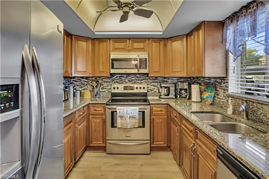 Another outstanding reduction - SELLER SAYS BRING ALLL OFFERS!!!!! LEAST EXPENSIVE UNIT IN THIS COMPLEX BY FAR!!!!! Association has completed THE NEW BUILDING REFRESHMENT TO BRING THIS ENTIRE BUILDING TO CURRENT FLORIDA CODES! This upgraded unit has been freshly painted and updated. A 55 plus community this complex is wonderfully located with lake and golf course views!! Convenient first floor location, this beautifully updated home has new A/C, new hot water heater, and an outstanding upgraded kitchen with new cabinets and featuring granite at every turn. Under cabinet lighting and stainless-steel appliances!! This home is freshly painted and boasts new laminate flooring. The split bedrooms give you a sense of privacy and the upgraded baths are convenient and lovely. The Owner has also added $6,000 of new windows and brand-new shutters for an additional $3,000!!!! The opportunity is yours for the taking. Beautiful, turnkey furnished and a paradise retreat at an enviable price! You just simply cannot go wrong!!!