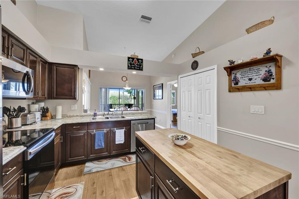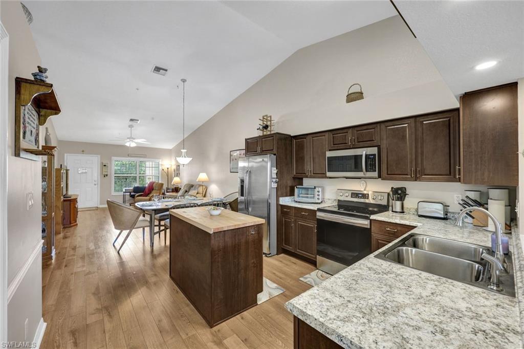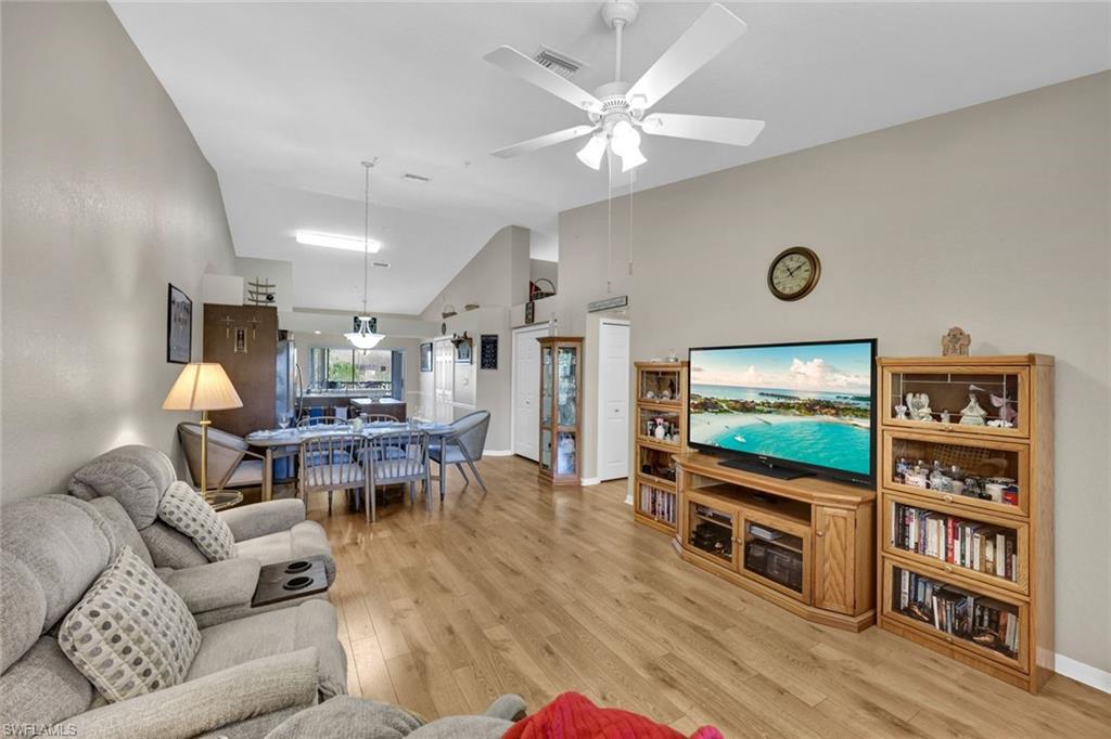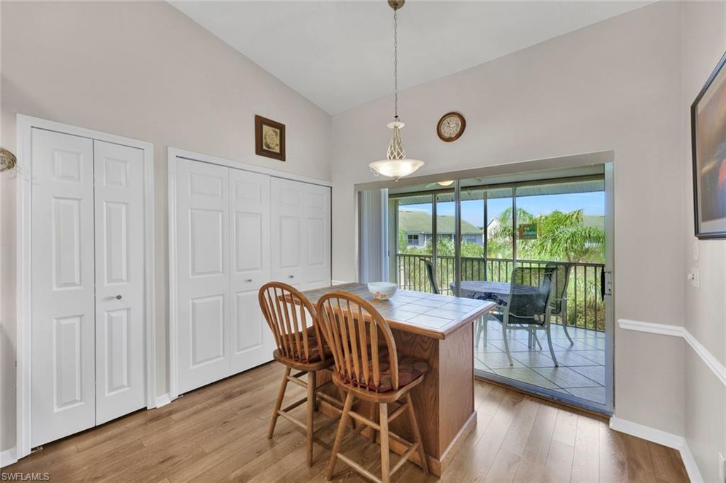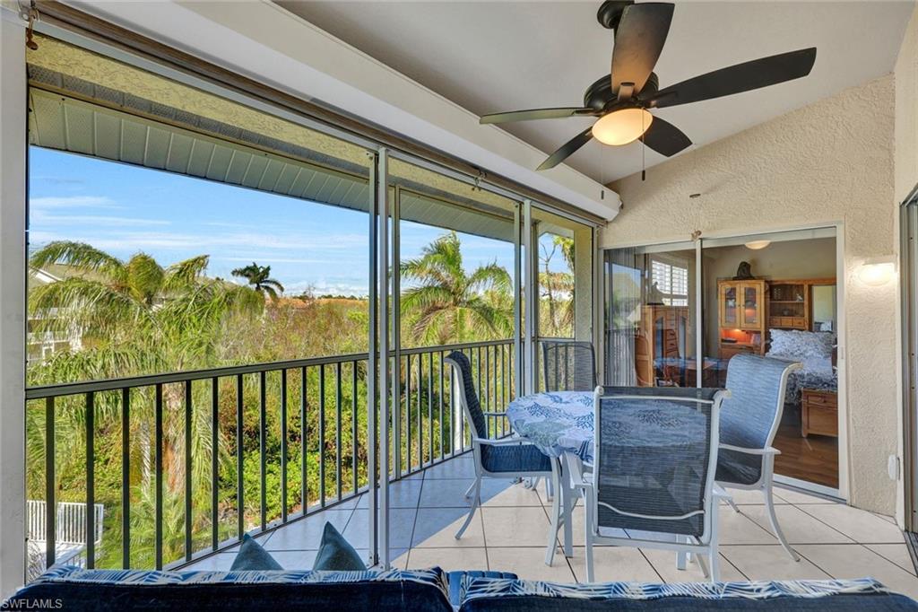 Fantastic views and spacious 3rd floor living at Bermuda Lago in Diamond Ridge. This 2 bedroom plus Den features high vaulted ceilings, newer laminate floors throughout and a ceramic tiled lanai with electric rollup shutters. The spacious kitchen offers loads of counter space, center island and stainless-steel appliances. Overlooking the community pool and preserve area you'll enjoy the daytime active and gorgeous sunsets. Private garage with storage, common elevator and just steps to the community pool. Convenient location to Bonita & Barefoot beaches, shopping, dining and entertainment. Located just off Woods Edge Blvd.