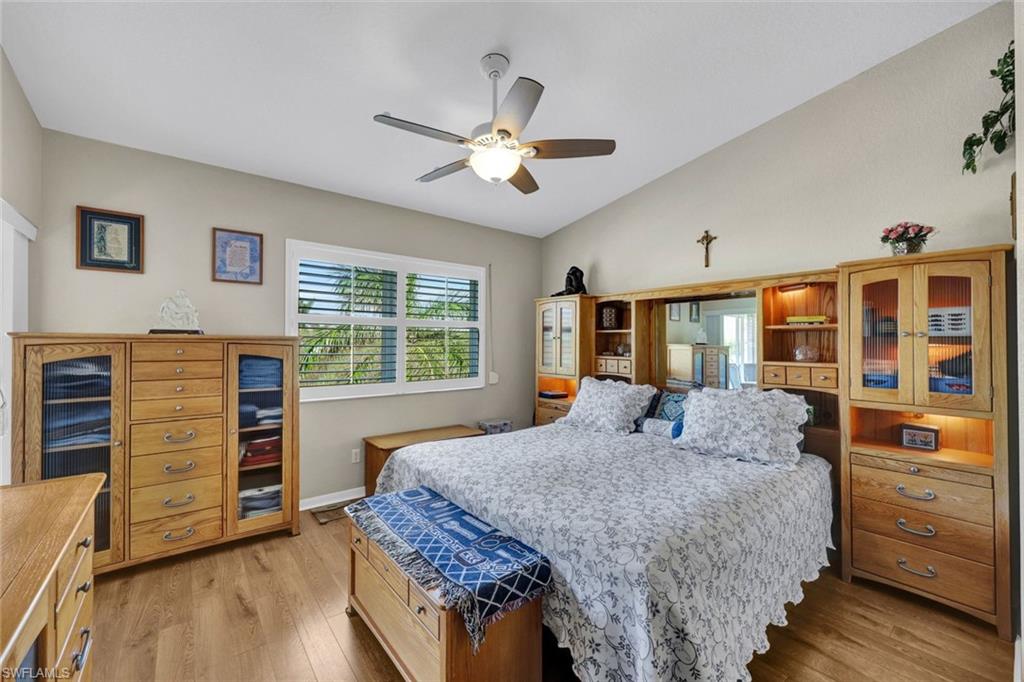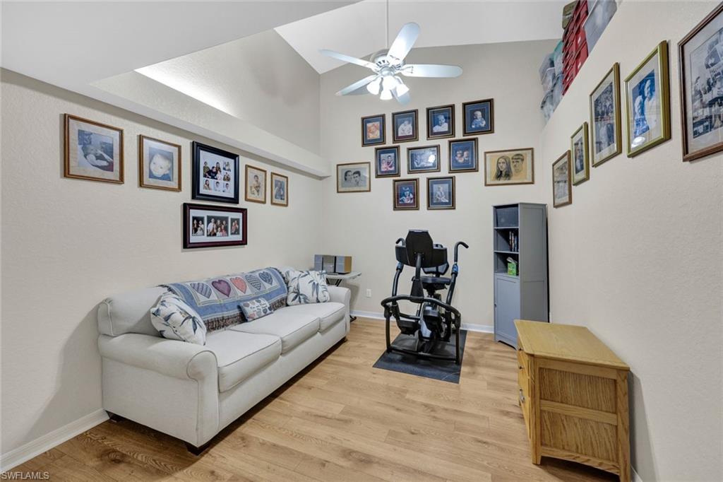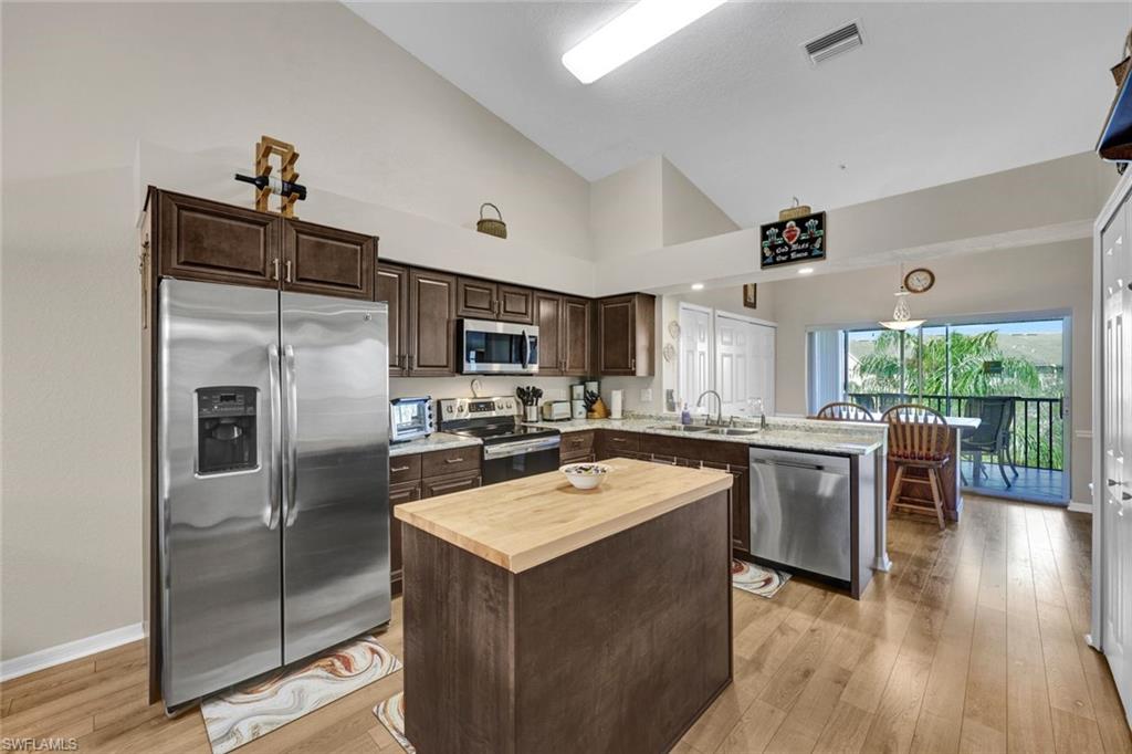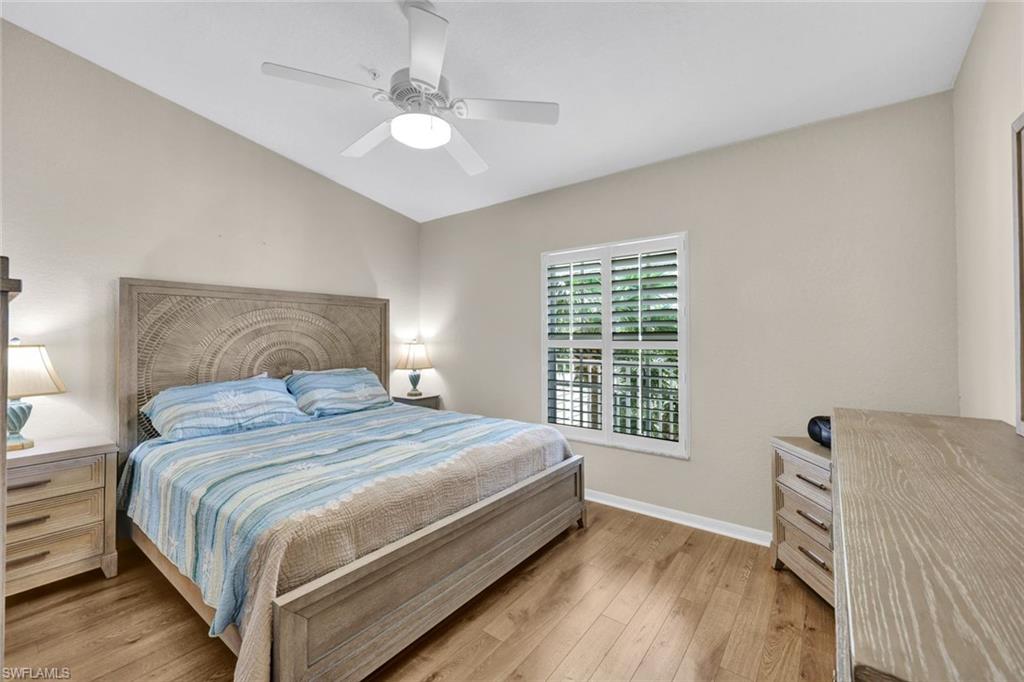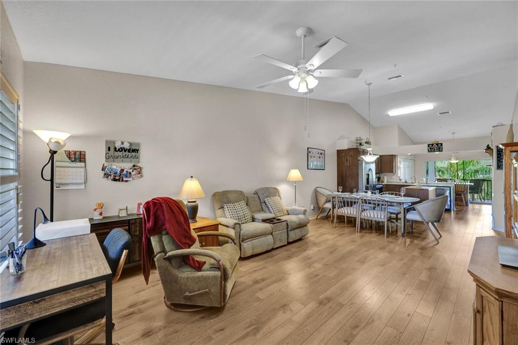Fantastic views and spacious 3rd floor living at Bermuda Lago in Diamond Ridge. This 2 bedroom plus Den features high vaulted ceilings, newer laminate floors throughout and a ceramic tiled lanai with electric rollup shutters. The spacious kitchen offers loads of counter space, center island and stainless-steel appliances. Overlooking the community pool and preserve area you'll enjoy the daytime active and gorgeous sunsets. Private garage with storage, common elevator and just steps to the community pool. Convenient location to Bonita & Barefoot beaches, shopping, dining and entertainment. Located just off Woods Edge Blvd.