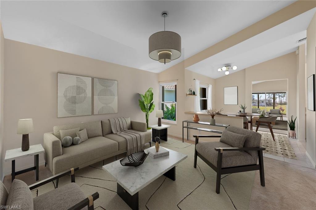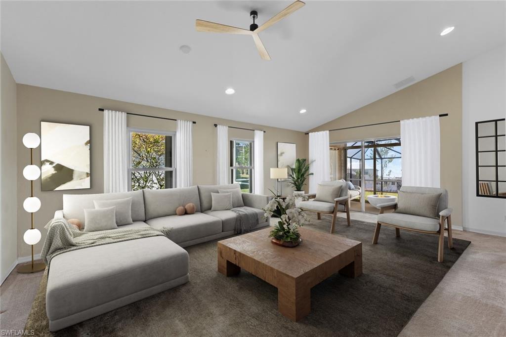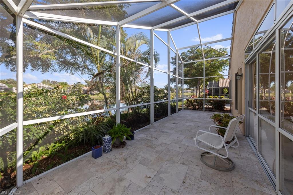 Situated in the highly desirable Cascades at Estero, this 2-bedroom, 2-bath home is nestled in one of Southwest Florida’s premier 55+ gated communities. Boasting the Devueraux floor plan with nearly 1,700 square feet of thoughtfully designed living space, this residence is perfect for those seeking an active and serene lifestyle. The home’s paver driveway and walkway create a welcoming first impression, while the interior is enhanced by soaring ceilings that add an airy feel and a floor plan that allows for a seamless flow from room to room. A spacious primary suite features an ample en-suite bath with dual vanities and a walk-in shower, while an in-residence laundry room offers the convenience of a utility sink. The acrylic paneled sunroom features travertine tile. This home is on a prime, waterfront lot and is perfect for the nature enthusiast with a grand screened lanai that overlooks the sparkling lake. Surrounded by beautiful, lush landscaping, it is a haven for relaxation. Additional features include a NEW ROOF (2023), new windows (2023), and accordion hurricane shutters, all offering extra peace of mind. Residents of Cascades at Estero enjoy an active, amenity-rich lifestyle with access to two community resort-style pools, a whirlpool spa, tennis courts with covered seating areas, a luxurious clubhouse, fitness center, and a variety of social activities. This home is conveniently located within close proximity to one of the pools, making it easy to take a refreshing swim or connect with neighbors. Low HOA fees include lawn maintenance for a low-maintenance lifestyle and no flood zone means no flood insurance required! Located just off Estero Parkway, you’ll be just minutes away from Gulf Coast Town Center, Coconut Point, Miromar Outlets, Southwest Florida International Airport, I-75 and US 41! Don't miss the chance to make this lovely home your own and experience the Cascades at Estero lifestyle for yourself!