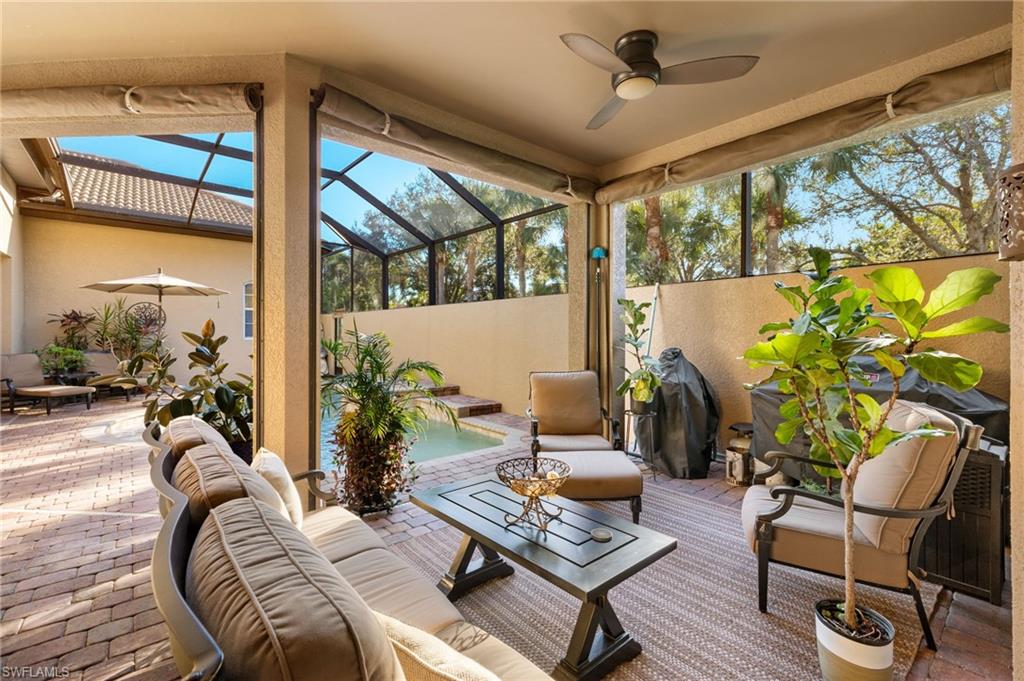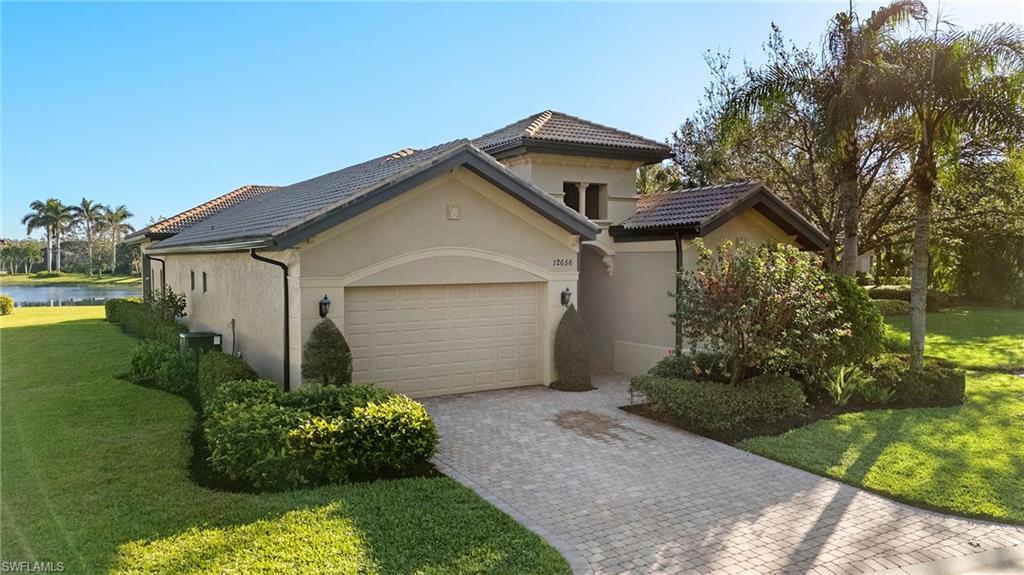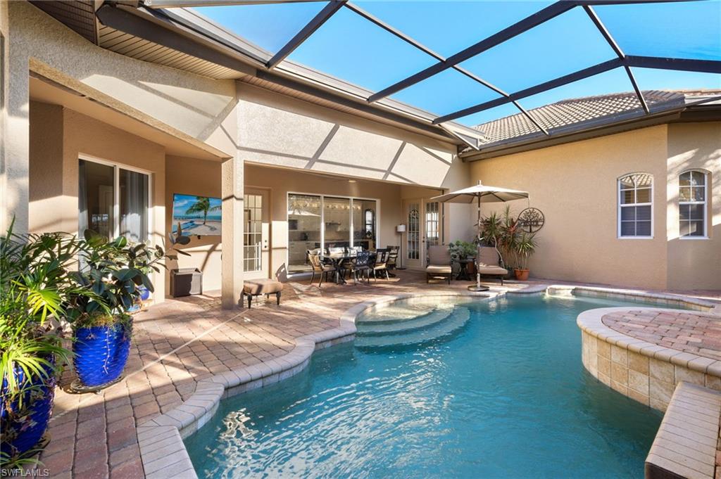 SELLER FINANCING OPPORTUNITY AVAILABLE! Welcome to 12656 Grandezza Circle, a true gem in the heart of Estero, Florida that offers 3 bedrooms, 3 bathrooms, a 2-car garage, heated pool & spa, and two screened lanais! This courtyard style home sits nestled within Savona in the Grandezza Community! Step into the front door and enter the spacious, oversized courtyard that offers a heated pool, a casita with one bedroom, one upgraded bathroom, and an efficiency kitchen. Also in the courtyard, are three different entrances to the main home. When you walk in, immediately notice the natural light that beams throughout! The main home offers 2 bedrooms, 2 bathrooms and a second screened lanai, overlooking the BREATHTAKING Lake Views! The upgraded dream kitchen will catch your eye! Notice the tasteful backsplash, stunning countertops, hidden-cupboard style pantry, water purification faucet and stainless-steel appliances. The coffered tray ceilings in the living room, dining room and master bedroom don’t go unnoticed, adding so much elegance to the home! Start moving in right away with no carpet to clean, as the home has wood and tile floors throughout. Head to the clubhouse for a staycation lifestyle! The Club at Grandezza offers a premier country club & golf (golf is not mandatory)! The clubhouse offers 53,000 square feet of luxury, including an exercise room, community room and so much more! Head outside to the resort-style pool and spa, cabana bar, exercise room, tennis courts, and an 18-hole championship golf course. This is the perfect example of Florida living! Location, Location, Location! Conveniently located within 3 minutes to the outlet mall, Hertz Arena, Restaurants, Stores, RSW International Airport and so much more! Don’t miss this opportunity to own this piece of paradise! Call me today for a private showing!