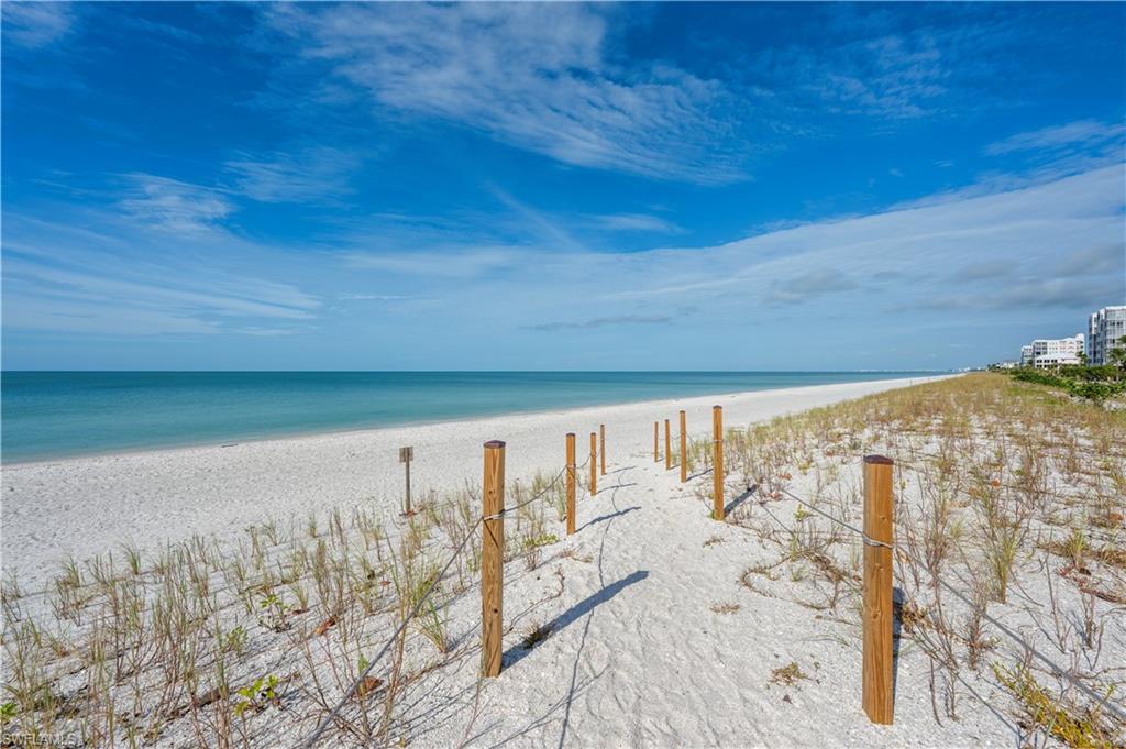 Spectacular beachfront location in Barefoot Beach, Florida. An idyllic slice of paradise, feel the Barefoot lifestyle, wellness center, resort style pool, spa and miles of sandy beach. As you enter this sun filled corner end-unit residence, you are greeted by open concept living with expansive glass opening to views of the brilliantly blue waters of the Gulf by day and breathtaking colors of the sunset by evening. Spacious 3 bedroom / 3 bath home with ample storage, ideal combination of modern comfort and island serenity. Fully reimagined and extensively remodeled beyond belief, featuring impact glass sliders and windows, repainted and refreshed, new custom entertainment center features Samsung 65” TV, Vizio Soundbar and Sub-Woofer, AC system replaced Dec 2023, all the AC / Heating ducts were replaced March 2024. New washer & Dryer, new and updated kitchen appliances and much more. No details have been overlooked, move-in ready, to enjoy immediately and experience the quiet luxury of Barefoot Beach, a guard-gated seaside enclave of exclusive residences nestled within a nature preserve encompassing over 400 acres.