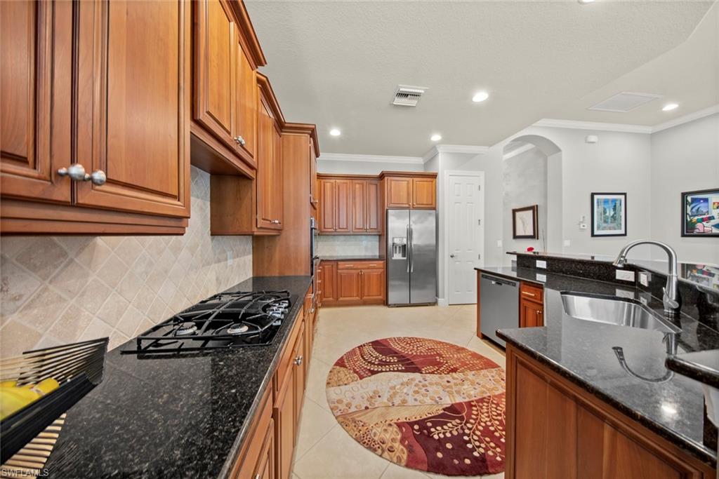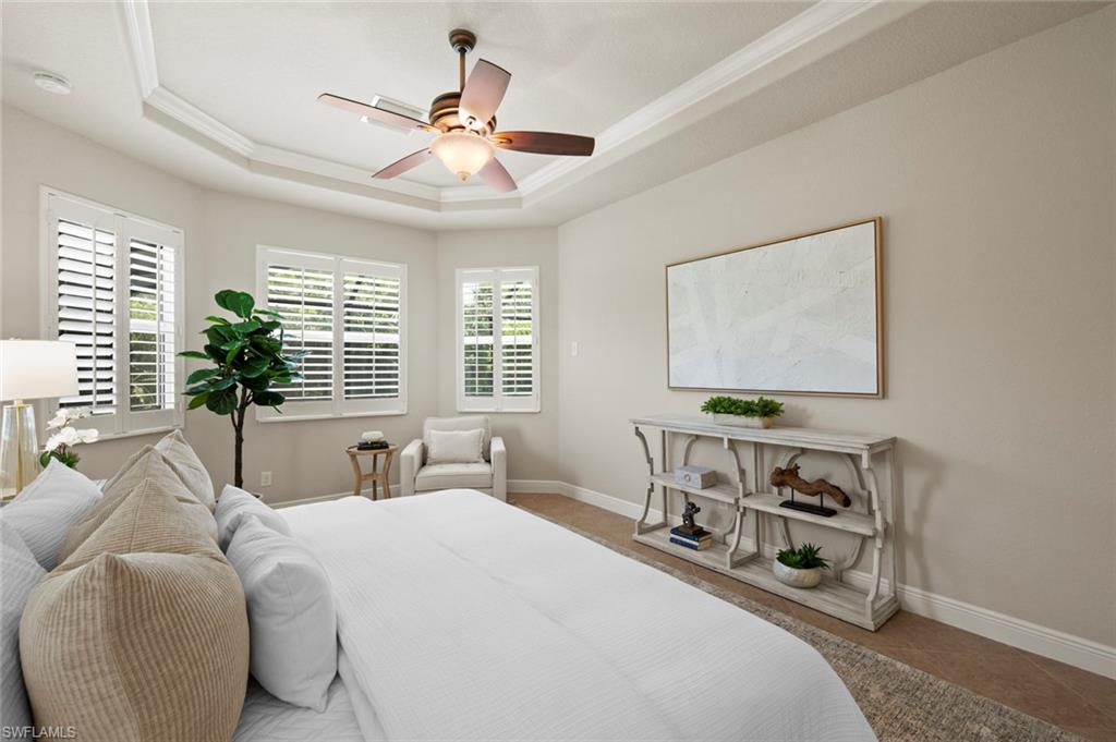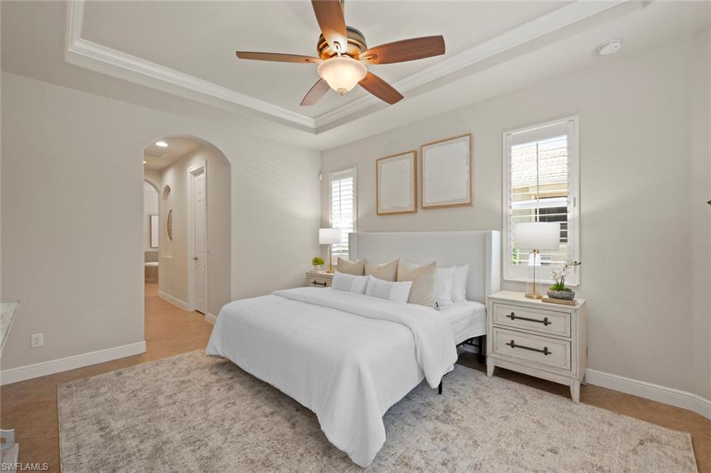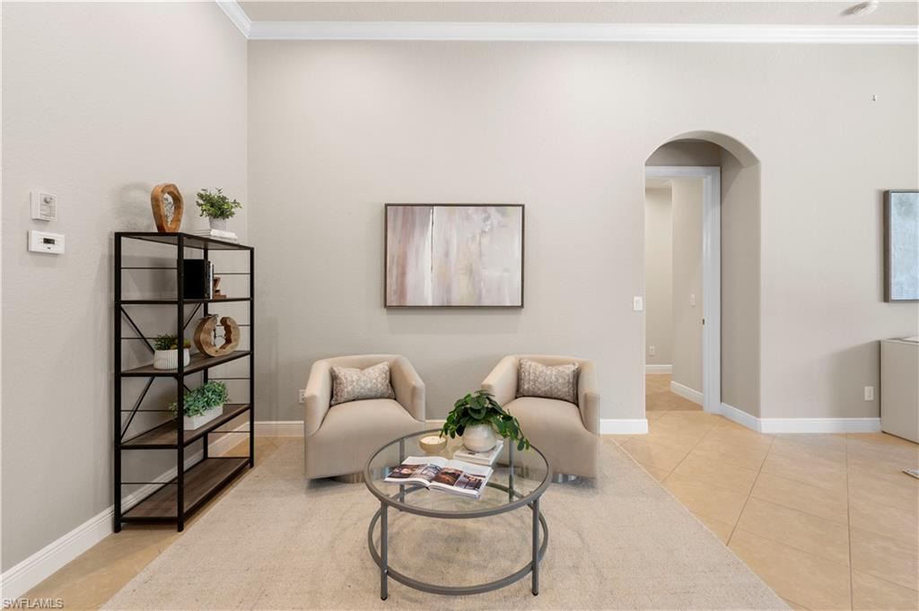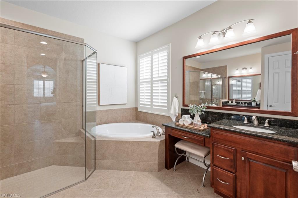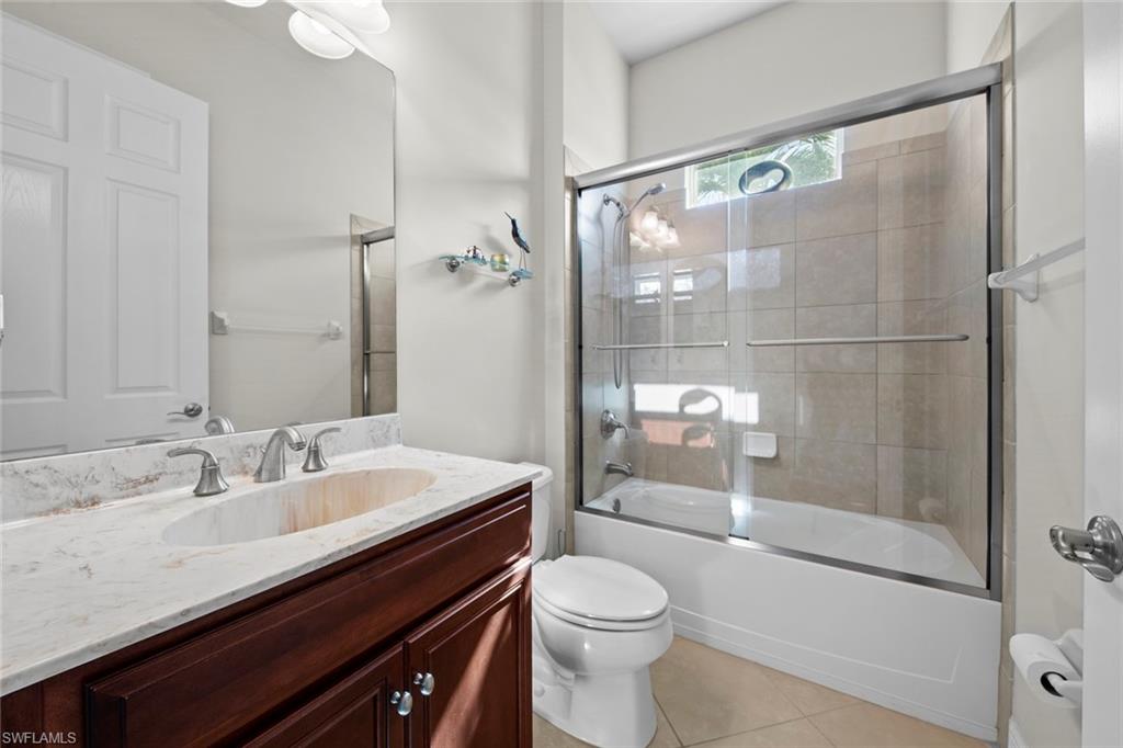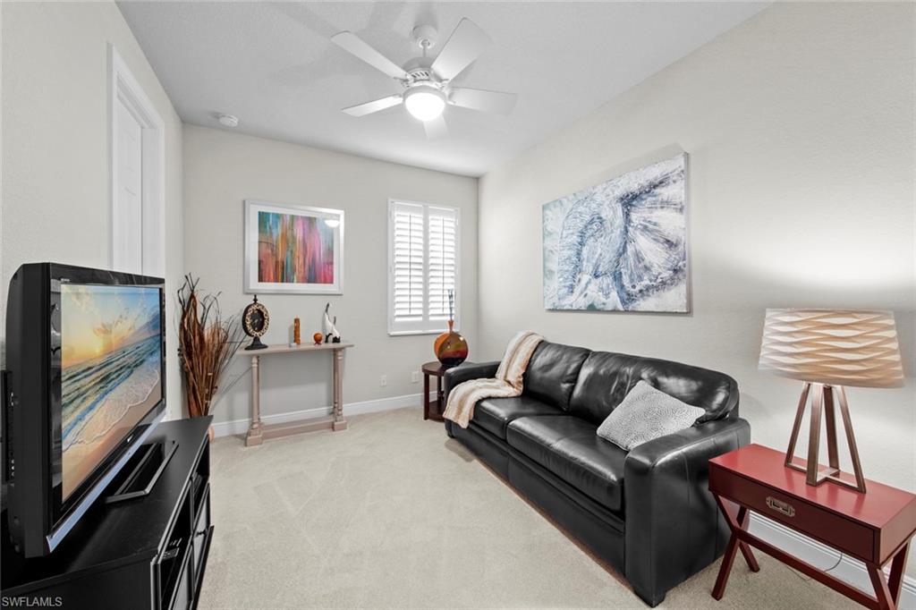 Now refreshed, professionally staged, and offered at an improved price—this is your opportunity to own the newest and final home built in Belle Lago. This Toll Brothers Massiano model offers 4 bedrooms, 2.5 baths, and over 2,200 square feet of refined living space, all set on a special oversized lot with total privacy in the back. Soaring volume ceilings and a spacious great room layout create an open, elegant feel, while recent staging enhances the home’s warmth and livability. Upgrades include impact-resistant windows and doors, plantation shutters, an electric vehicle charger, and a large step-in shower in the primary suite. The private backyard oasis features a custom pool and spa with both gas and solar heating, all backed by lush green space with no homes behind you. Belle Lago is a natural gas community offering resort-style amenities including a pool, spa, tennis, pickleball, fitness center, playground, and a 24/7 guarded gate. Optional golf memberships are available at the neighboring Estero Country Club, accessible via golf cart. Don't miss your opportunity to own the newest home in the community—staged, refreshed, and priced to sell. A rare find in one of Estero’s most desirable gated neighborhoods.