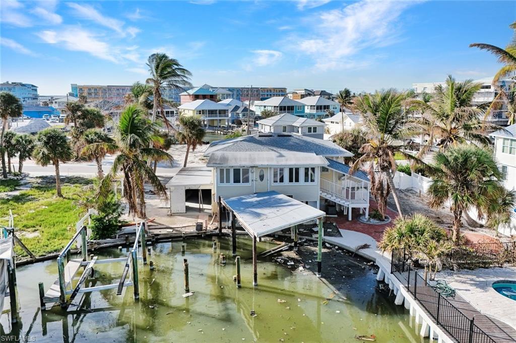 TIME SQUARE LOCATION!! NEW A/C 2025 WHO HAS BIG REMODELING EXPERIENCE? COME & GET YOUR MONEY!! UPSTAIRS IS MOVE IN CONDITON & RENTABLE NOW!! just remodel the downstairs & repair the boat docks, this is YOUR OPORTUNITY, TIME SQUARE - MARGARITAVILLE LOCATION!!! TOP RENTAL INCOME WEEKLY ZONED, UPSTAIRS IS RENTABLE NOW & IS Property Managed WITH an UPDATED KITCHEN, 2BEDROOMS 1.5 BATHS NEW A/C 2025 RATED FOR BOTH LEVELS!!! SOMEONE WILL GRAB IT NOW, 4 Bedroom 3 Bath Residential Beach Rental, 2 Deeded Boat Lifts, Seller will put property up as collateral for YOU to rehab the property then close title, terms you pay their existing monthly mortgage payment then close title on the balance of the purchase price. LOTS ARE SELLING FOR MORE THAN THIS in TIME SQUARE, ATTENTION BUILDERS!!! Priced below land value NOW!!! DON’T MISS IT!!!!! Seller SAYS MAKE OFFERS!!! Bring your offers, 2 story home, Upstairs is Turnkey RENTABLE NOW! downstairs can be refinished again, Direct Gulf Access 2 DOCKS, weekly zoned, Time Square Location across the street from the Lani Kai Hotel, Upstairs Unit is an Active Furnished Rental with an Updated A/C System 2025, if you have been waiting to have an ELEVATED RENTAL home on the beach this is the location you want by Time Square, this home offers two boat docks so each guest can pull up to all their favorite restaurants & live music in Fort Myers Bay in just minutes, or they can take the KEY WEST EXPRESS down to Key West, the second-floor area offers Impact windows & doors, nice open living floor plan with newer LVP laminate flooring throughout, beautiful sun/dining room with a canal water view, updated kitchen with stainless appliances, recessed lighting & a breakfast bar, the main bedroom is nice size with a full bath, this unit also offers a nice sized deck that connects to the roof of the boat dock, for all your BBQ & entertaining needs, the boat docks need repair due to the storm, the lower area of home was damaged & needs to be remodeled, the yard is partially fenced, pool installation is available, plenty of parking for family or guests, two car garage, Direct Gulf of America Access!!