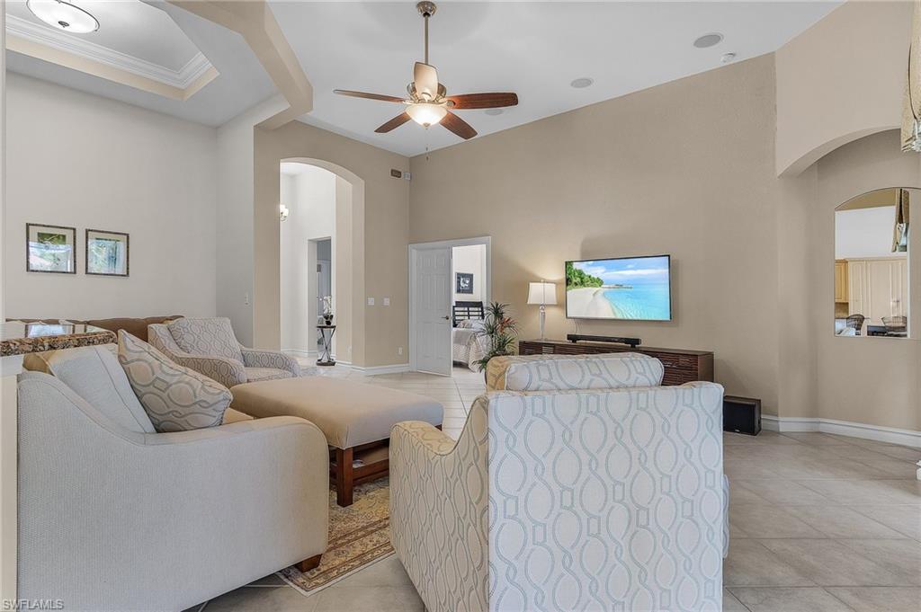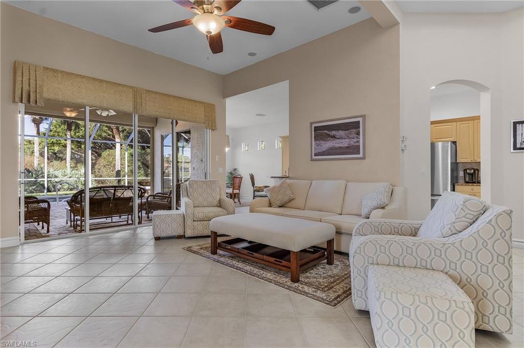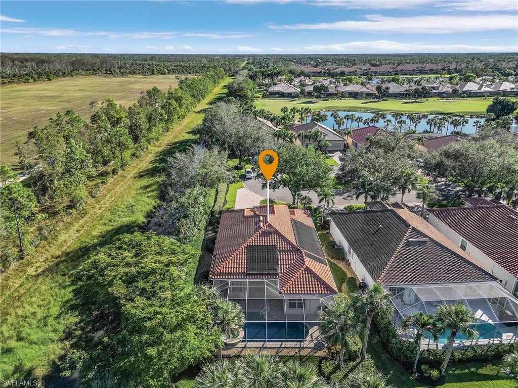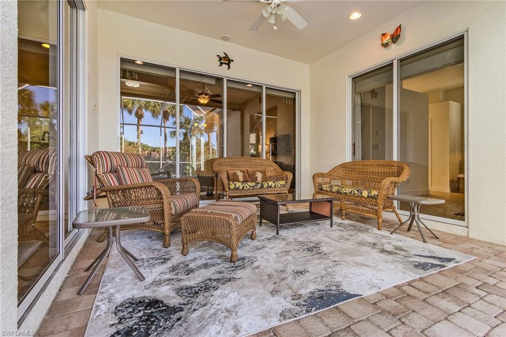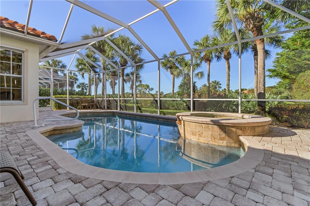 WOW! Live the Grande Life in this spacious home located in a private spot with views of the golf course. Priced to sell and ready for new owners. Just bring your toothbrush and everything is here for you. Completely turnkey with Florida Sunshine during the days and Spectacular Sunsets at night! Relax on your private screened lanai and enjoy the beautiful sunsets in the north western sky. This nicely upgraded “Turnstone” model great room style home situated on an end lot at the end of a cul-de-sac in Grandezza Golf and Country Club with optional golf membership. Upgrades include wood grain cabinets, granite counters, reverse osmosis water filter and stainless steel appliances in the kitchen and Hunter Douglas window treatments. 16X16 tiles are laid diagonally throughout the home. The expanded screened lanai area is upgraded with a brick paver pool deck. Aqua Link controls in home for the pool/spa solar system and brand new electric heater. Surround sound system throughout the home including the beautiful epoxy floor in the garage! The Turnstone boasts a spacious master bedroom with 11’ tray ceiling with master bathroom. Built in 2004 this home includes electric and manual hurricane shutters and a Heritage Weather Guard Garage door with whisper quiet drive. Offered turnkey furnished for new buyer. Grandezza has an active year-round social lifestyle with resident activities, a remodeled gorgeous 53,000 square foot clubhouse, resort pool and spa with poolside cabana restaurant, ballroom for dinner and events. Optional membership in Grandezza 18 hole championship private golf course. Near Coconut Pointe Town Center, FGCU, Publix shopping center, Miromar Outlets, Gulf Coast Town Center, Hertz Entertainment Arena, hotels, restaurants, beaches and RSW airport. Come live the Grand life in Grandezza! Motivated Seller!