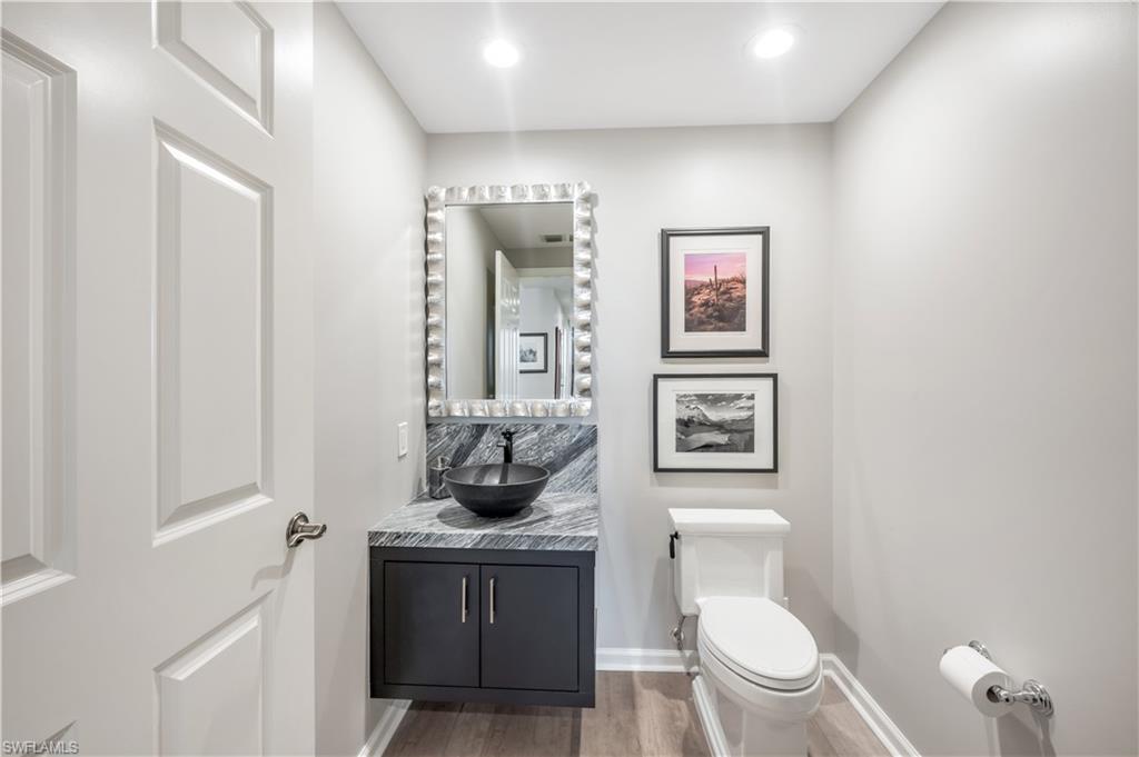 $154,000 PRICE REDUCTION!! Resort style living with stunning sunset Gulf views from this newly renovated luxury 9th floor 3 bedrooms + den, 3 ½ bath condo! Step off your private elevator into your foyer, which opens into a spacious great room/dining room with expansive Gulf and preserve views. Guest room lanai overlooks the new golf course and city lights. Nevis #903 has been completely renovated and professionally decorated. Renovations include all new cabinets and flooring throughout, quartz and marble countertops, all new top line appliances including washer/dryer, crown molding, new plumbing fixtures and comfort height toilets, 5 large new TVs, and modern LED decorative lighting and fans. A dry bar with full size wine and beverage cooler was added in the great room and is great for entertaining. The kitchen area was redesigned to include a 36” induction cook-top and hood, large white apron fireclay sink, ice maker, and a large pantry cabinet added for extra storage.New 2 zone HVAC system. All bedrooms are en-suite and feel very private. Hurricane windows throughout with electric hurricane shutter protection on the large 26’ lanai. The condo includes 1 deeded parking spot with ample guest parking. The building lobby is professionally decorated in a contemporary style. Membership is included to the Calypso Club next door which has a resort sized pool, spa, fitness center, social room with wet bar and kitchen, Cabana room off the pool with fireplace, grill area, and 2 private guest suites for your use. Membership is available to the Tarpon Cove Yacht & Raquel Club with 6 tennis courts, bocce ball, restaurant, tiki bar, swimming pool and hourly beach shuttle to Barefoot Beach Park. Boat slips can be purchased or rented. Luxury living is waiting for you at Cove Tower!