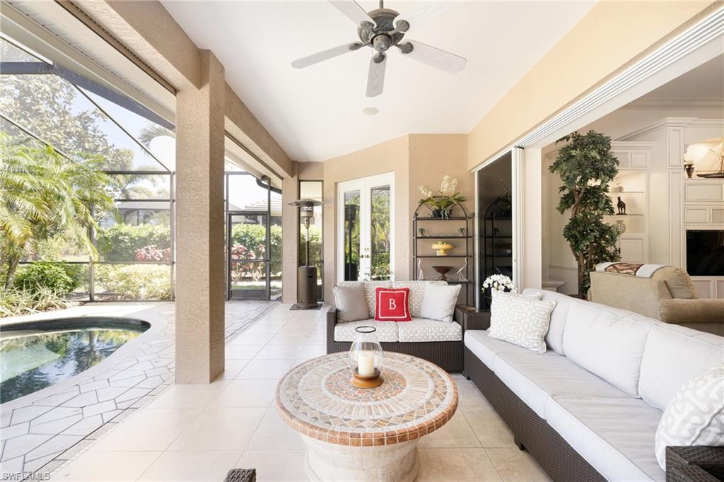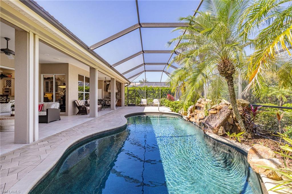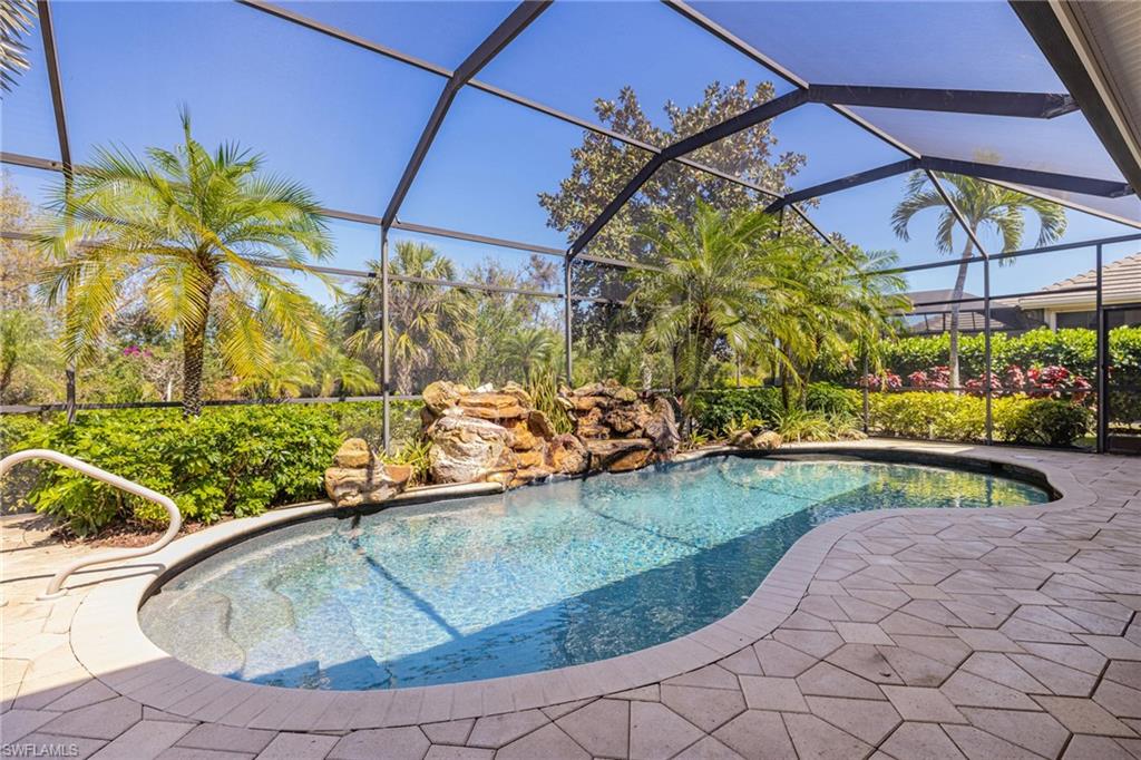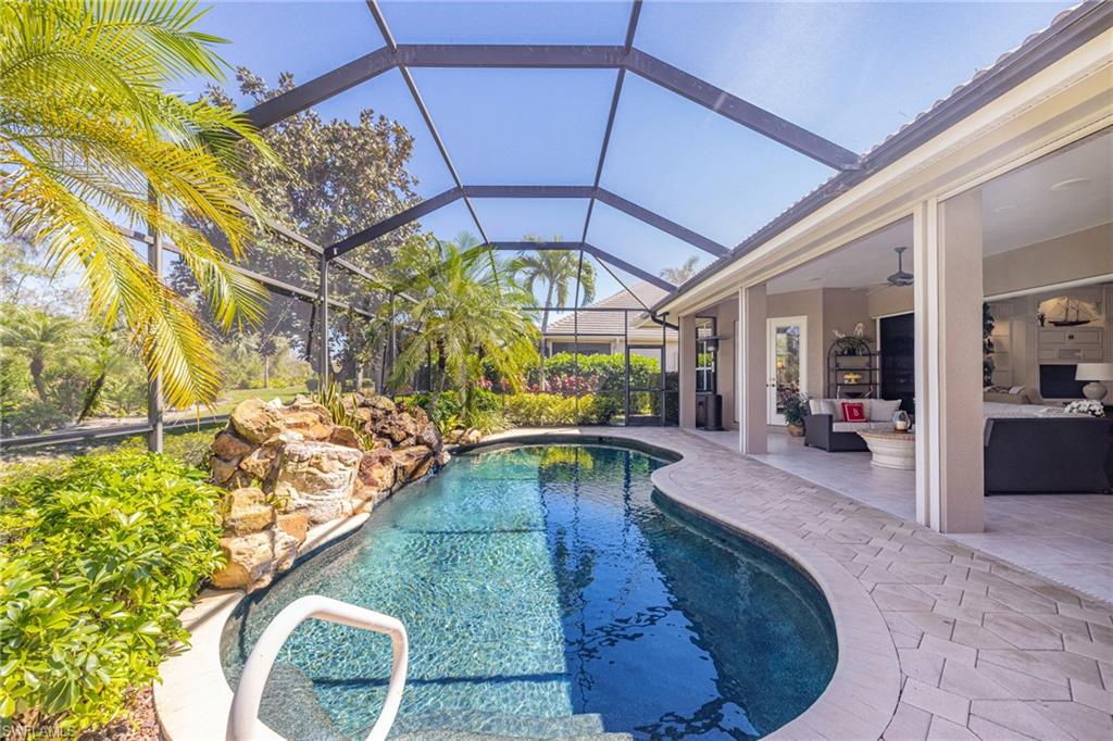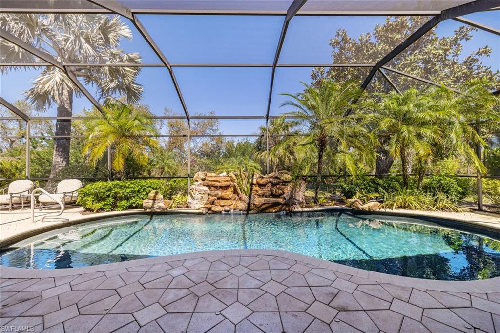TURNKEY FURNISHED WITH ++PREMIER GOLF MEMBERSHIP++ AVAILABLE. NO WATER DAMAGE FROM IAN. Step through the stunning glass and wrought iron double doors into this beautifully designed 3-bedroom + den, 3-bathroom home that perfectly blends elegance with comfort. From the moment you enter, you'll notice the custom built-ins, formal dining area, and an updated kitchen that truly steals the show—featuring white cabinetry, a sleek glass cooktop, stainless steel appliances, a wine cooler, pot filler, wall oven, built-in desk area, breakfast bar, and casual dining with a view of the sparkling pool. The den is a warm and inviting space with gorgeous wood built-ins, making it the perfect home office or cozy retreat. The spacious master suite is a true sanctuary, complete with a sitting area, direct lanai access, and an updated spa-like bathroom boasting separate vanities, a makeup vanity, a soaking tub, and a glass walk-in shower. Plus, the custom-organized master closet ensures everything has its place. Your guests will love the generously sized bedrooms, but the real showstopper is the outdoor entertaining space. Fire up the grill in the outdoor kitchen, relax under the covered dining and lounging area, and enjoy the heated saltwater pool with a custom rock waterfall—all with the added privacy of a lush preserve behind you. Living in West Bay Club means embracing the ultimate in luxury with access to an array of world-class amenities. Enjoy the exclusive private Beach Club on the Gulf of Mexico, where white sands and sparkling waters provide the perfect retreat. Golf enthusiasts will love the championship course, while tennis and pickleball courts offer even more opportunities for recreation. Boaters will appreciate the private boat ramp with direct Gulf access, making sunset cruises and fishing trips effortless. When it’s time to unwind, the resort-style pool, spa, and state-of-the-art fitness center provide endless relaxation. The clubhouse is a true centerpiece of the community, offering both fine and casual dining, making it easy to enjoy gourmet meals without leaving home. West Bay Club's unbeatable location east of 41 ensures you’re never far from the best of Southwest Florida. Just minutes away, Coconut Point offers upscale shopping, fine dining, and entertainment, while Miromar Outlets and Hertz Arena are a short drive away for even more options. For frequent travelers, Southwest Florida International Airport is just 20 minutes away, adding to the overall convenience of this prime location. This spectacular home, with its exceptional setting and luxurious lifestyle, is a rare find in one of the most sought-after communities in the area. This home is built for both entertaining and everyday luxury—don’t miss your chance to make it yours!