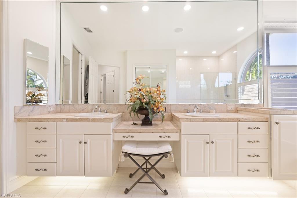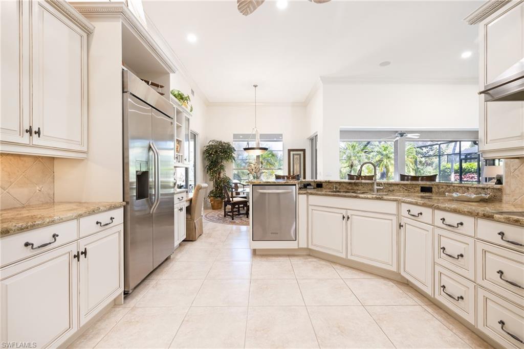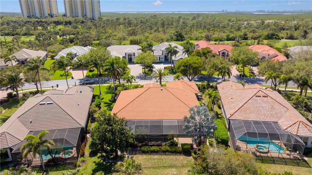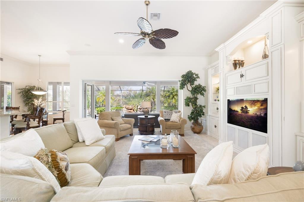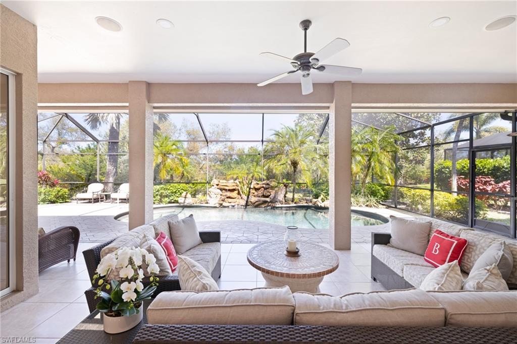TURNKEY FURNISHED WITH ++PREMIER GOLF MEMBERSHIP++ AVAILABLE. NO WATER DAMAGE FROM IAN. Step through the stunning glass and wrought iron double doors into this beautifully designed 3-bedroom + den, 3-bathroom home that perfectly blends elegance with comfort. From the moment you enter, you'll notice the custom built-ins, formal dining area, and an updated kitchen that truly steals the show—featuring white cabinetry, a sleek glass cooktop, stainless steel appliances, a wine cooler, pot filler, wall oven, built-in desk area, breakfast bar, and casual dining with a view of the sparkling pool. The den is a warm and inviting space with gorgeous wood built-ins, making it the perfect home office or cozy retreat. The spacious master suite is a true sanctuary, complete with a sitting area, direct lanai access, and an updated spa-like bathroom boasting separate vanities, a makeup vanity, a soaking tub, and a glass walk-in shower. Plus, the custom-organized master closet ensures everything has its place. Your guests will love the generously sized bedrooms, but the real showstopper is the outdoor entertaining space. Fire up the grill in the outdoor kitchen, relax under the covered dining and lounging area, and enjoy the heated saltwater pool with a custom rock waterfall—all with the added privacy of a lush preserve behind you. Living in West Bay Club means embracing the ultimate in luxury with access to an array of world-class amenities. Enjoy the exclusive private Beach Club on the Gulf of Mexico, where white sands and sparkling waters provide the perfect retreat. Golf enthusiasts will love the championship course, while tennis and pickleball courts offer even more opportunities for recreation. Boaters will appreciate the private boat ramp with direct Gulf access, making sunset cruises and fishing trips effortless. When it’s time to unwind, the resort-style pool, spa, and state-of-the-art fitness center provide endless relaxation. The clubhouse is a true centerpiece of the community, offering both fine and casual dining, making it easy to enjoy gourmet meals without leaving home. West Bay Club's unbeatable location east of 41 ensures you’re never far from the best of Southwest Florida. Just minutes away, Coconut Point offers upscale shopping, fine dining, and entertainment, while Miromar Outlets and Hertz Arena are a short drive away for even more options. For frequent travelers, Southwest Florida International Airport is just 20 minutes away, adding to the overall convenience of this prime location. This spectacular home, with its exceptional setting and luxurious lifestyle, is a rare find in one of the most sought-after communities in the area. This home is built for both entertaining and everyday luxury—don’t miss your chance to make it yours!