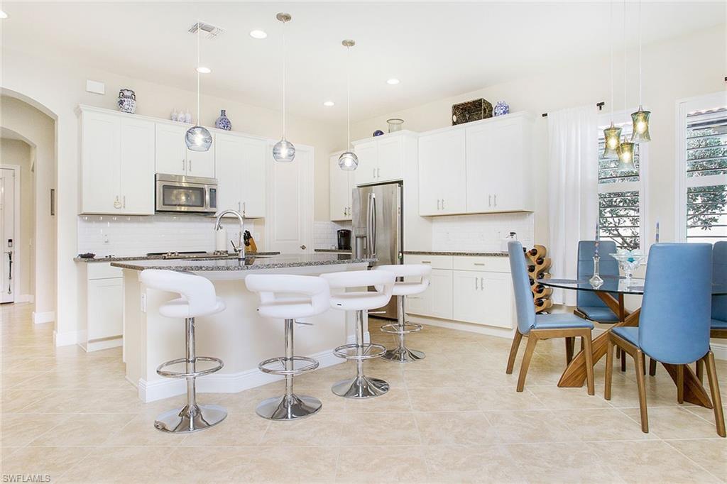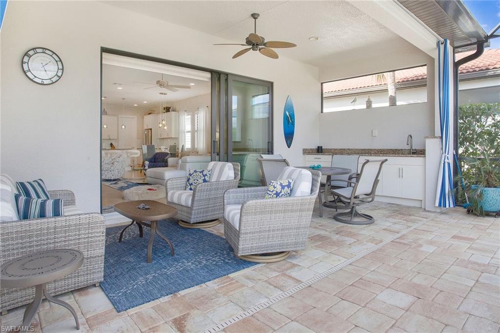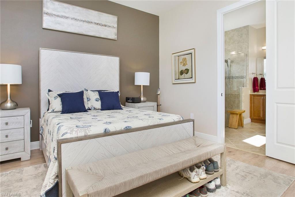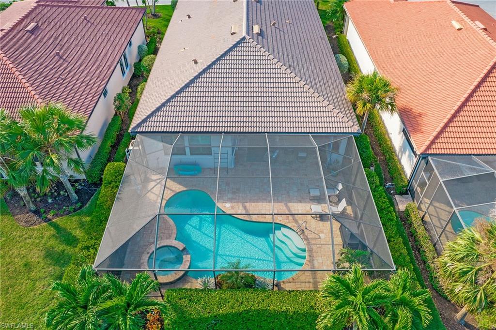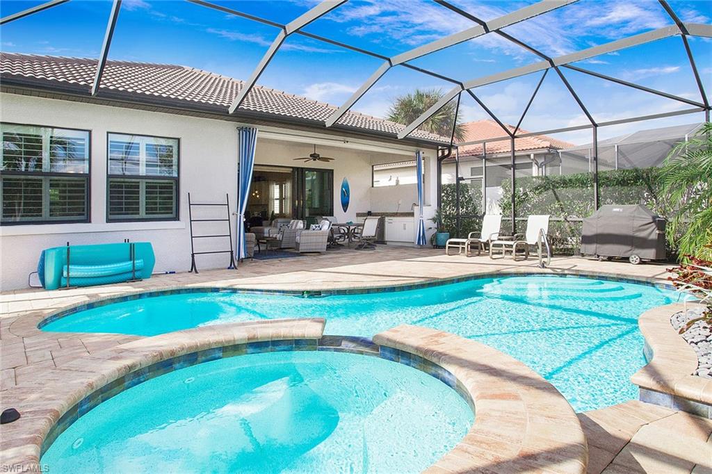 Welcome to Artesia, one of Naples newest private gated lifestyle communities offering an abundance of amenities. This stylish Grand Cayman model by renowned WCI is on a cul-de-sac with a picturesque nature preserve. Petone Court is a secluded, quiet and low traffic street with only 17 residences. It is commonly touted by Artesia residents as the best street in the neighborhood. The oversized custom-built, 30-foot-deep lanai with cage is one of the largest in the neighborhood and features a large freeform autofill heated pool, spa with waterfall, summer kitchenette with refrigerator and sink, and is surrounded by lush tropical landscaping providing serenity and privacy. Unparalleled quality construction and craftsmanship. Spacious and bright with eastern sunrise exposure, the home offers premium upgrades throughout. The large kitchen features a newer 22-cubic-foot GE Profile French door refrigerator, GE Profile range, Miele Futura dishwasher, touchless faucet, expansive breakfast bar, granite countertops, 42-inch upper cabinetry, custom tiled backsplash, walk-in pantry with custom shelving, and custom handmade pendant lights and chandelier. The expansive private primary suite offers a dual sink vanity, frameless Euro glass shower enclosure, discreet water closet, and a spacious walk-in closet with custom storage and drawer system. Additional premium upgrades include impact-resistant windows and doors, 8-foot interior and exterior doors, 10-foot ceilings, upgraded baseboard trim, custom plantation shutters throughout, upgraded plumbing fixtures, durable maintenance-free wood-look vinyl flooring, whole-house water filtration system, and a 6-by-6-foot bonus storage closet with shelving. Laundry facility with newer LG front load washer and dryer, convenient utility sink with granite countertop and plenty of storage cabinetry. The garage features durable epoxy floor coating, wall-mounted vehicle vacuum unit, and shelving/storage. Large backyard space for recreation and play. Brick paver driveway, walkway, porch and lanai power washed and sealed. HVAC system regularly maintained. Enjoy the modern clubhouse featuring festive community social events, resort-style swimming pool, three newer pickleball courts, two newer bocce ball courts, billiards room, fully equipped gym, exercise and craft classes, movie theater, dog parks and lakeside recreational paths. Short drive to downtown Naples and Marco Island, the best of both worlds. The HOA fee includes cable TV and internet. No CDD fee. Bike racks in garage excluded. Select furnishings available.
