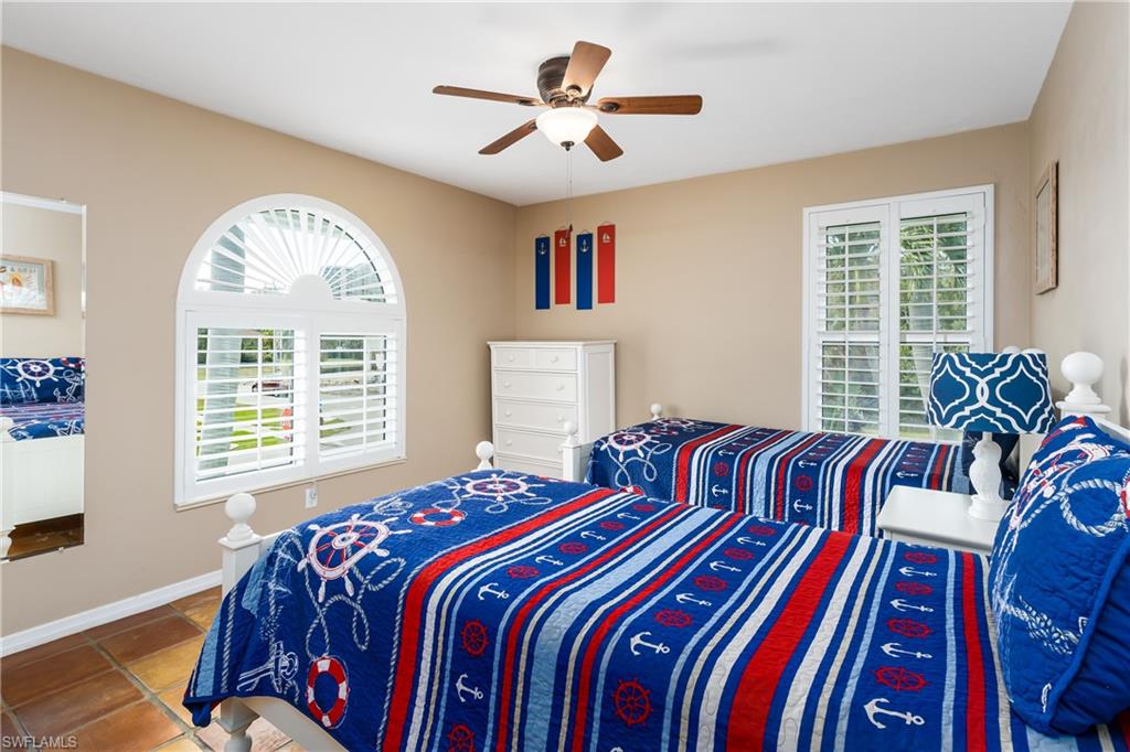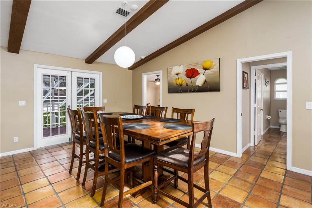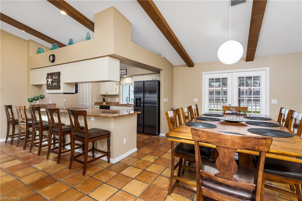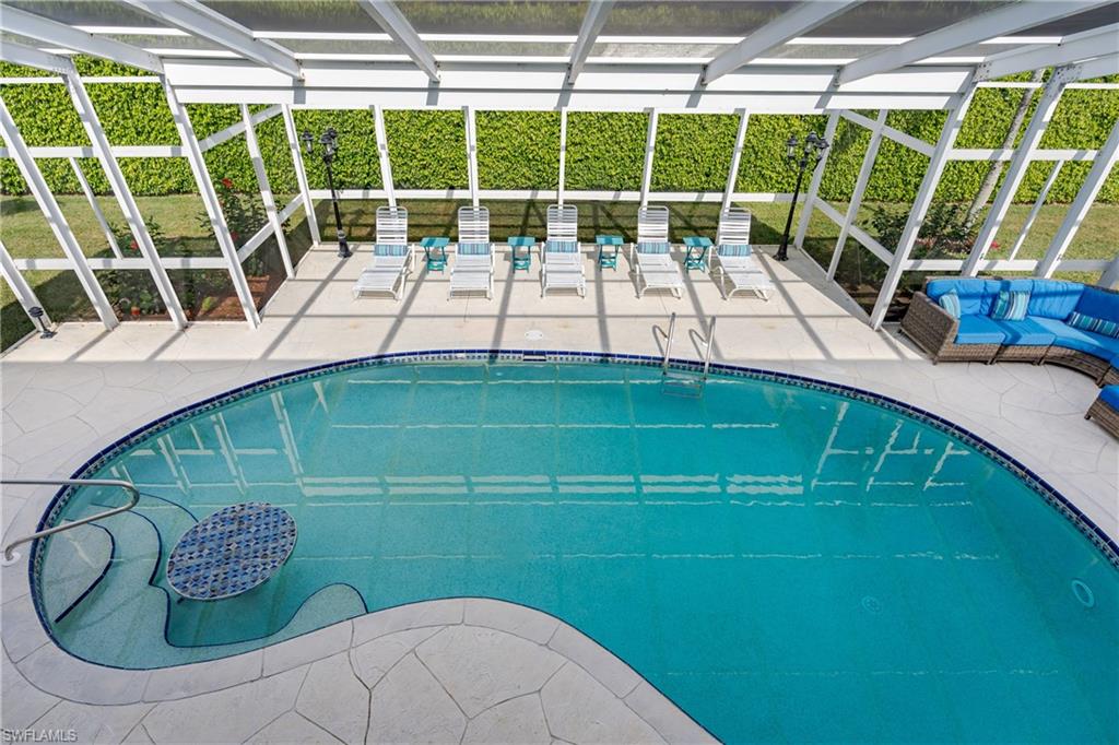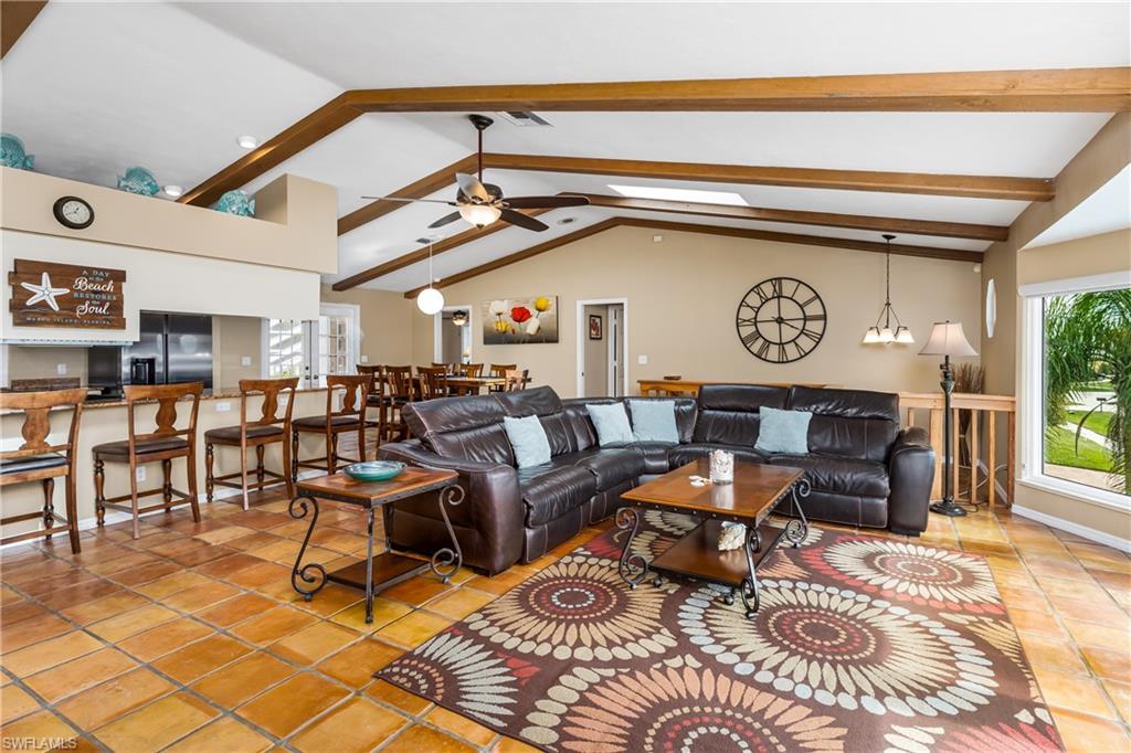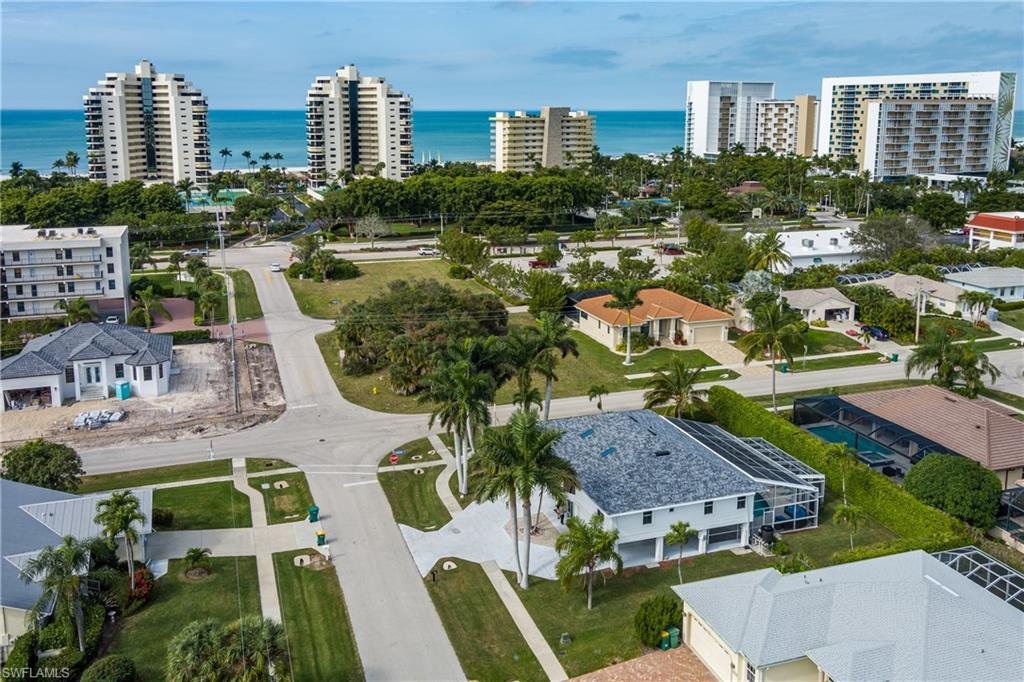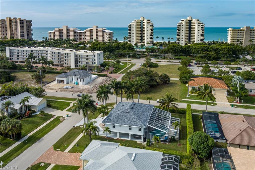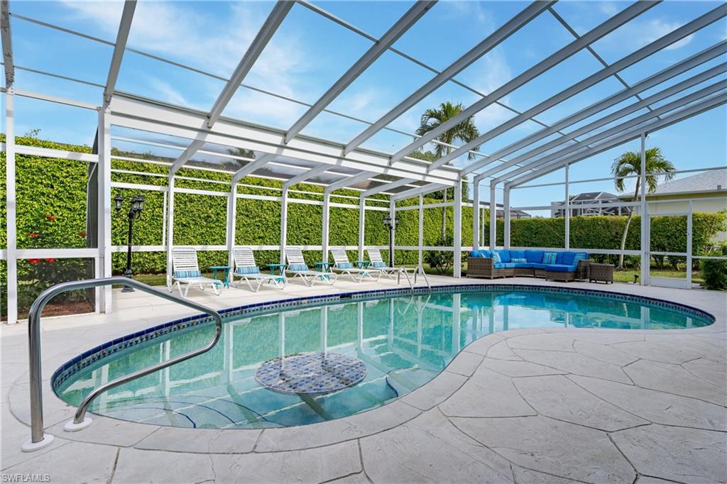 CLOSE TO THE BEACH! Attention Investors... 97,800 collected in rent in 2023; and 119,998 in 2022! Whether you are looking for a great investment near the beach & restaurants, or looking for a nice place to call home, you will love this impressive Old Florida style home. Situated on an oversized lot in the much sought after south end of the island. Enter through the double glass doors into a freshly painted tropical blue 12x12 entry. Wide stairway takes you to the upper floor where all your living space is. Step into the huge great room that boasts vaulted wood-beamed ceiling, and a beautiful south facing Bay window. Off the great room is a dining area that has double doors leading out to the 10x28 screened-in lanai. The kitchen has stainless steel appliances, granite countertops, pantry, picture window, and a 12 ft breakfast bar! Split floor plan has 2 bedrooms each on either side of the great room for a total of 4. Steps down from the lanai is a pool bath that has recently been updated. This home has outdoor living at its best! Huge screened-in deck for soaking in the Florida sunshine surround the large inviting pool. An extra plus is a covered 10x50 area with 3 new ceiling fans to keep you cool. There is a tremendous amount of outdoor furniture that stays with the house, including 4 brand new lounge chairs & cushions. The home is beautifully landscaped with King palms and tall hedges giving you much privacy. Yard is partially fenced for your 4 legged friends. Adjacent to the pool deck is a 12x8 utility room that has a closet that seller uses as an owner's closet when home is rented. Note all the expensive upgrades: Approximately October 2022 - new hot water heater, new A/C, new pool pump, new pool heater, new outside lighting. Approximately November 2020, all new impact glass windows and front entry door, new Hardie board siding around entire home, and new roof! This home sits a short distance from Marco Island's South Beach, shopping, fine and fun dining, and a movie theater. The location can't be beat and a beautiful home comes with it! Turnkey furnished - can move right in.