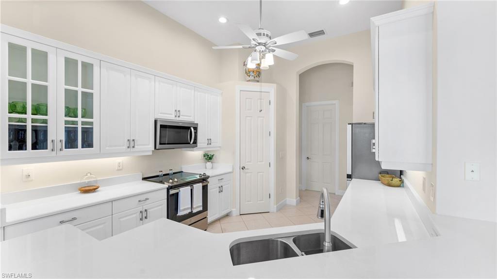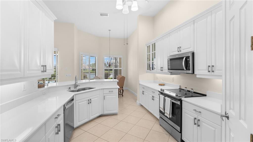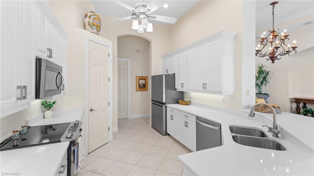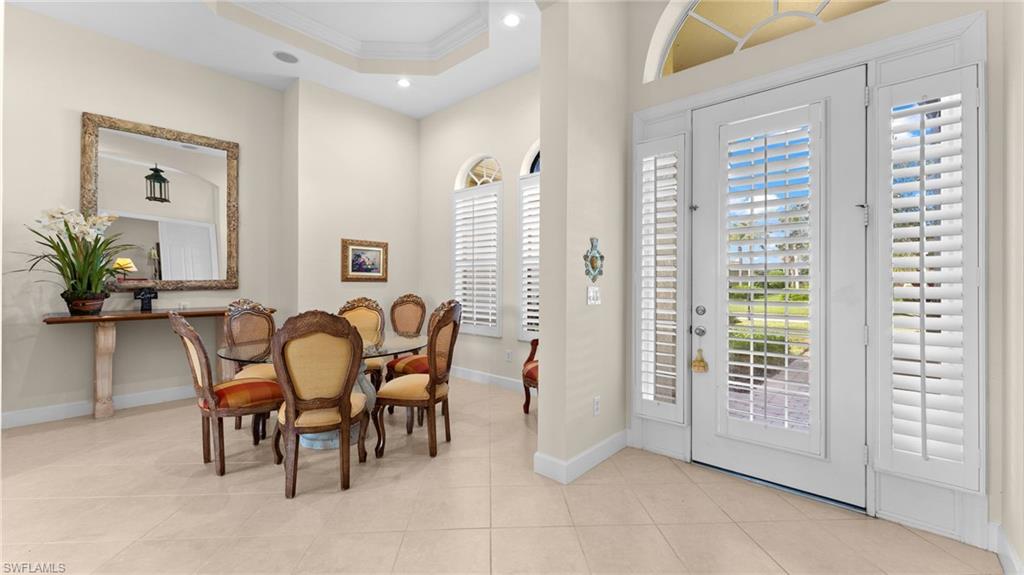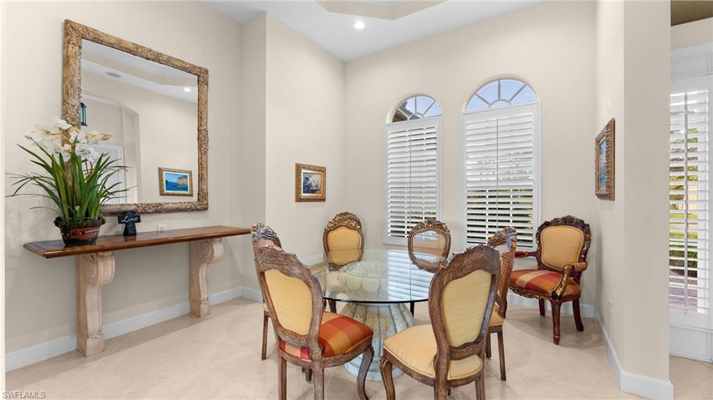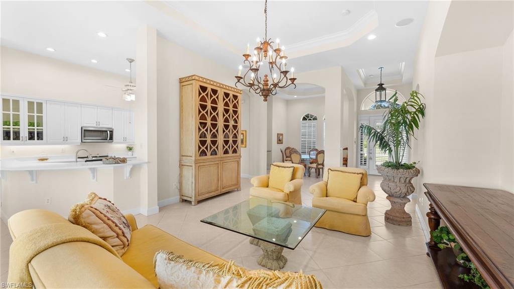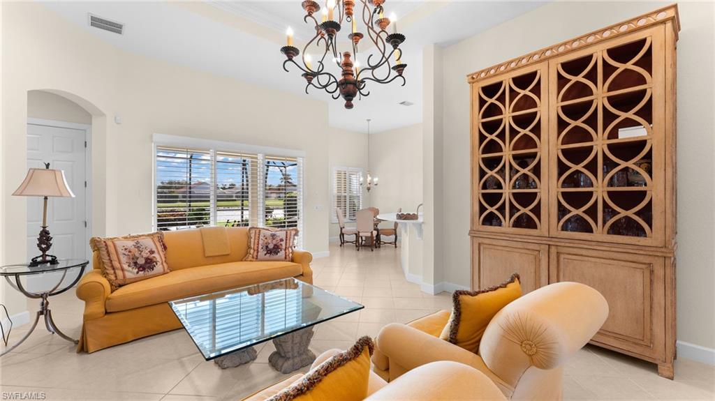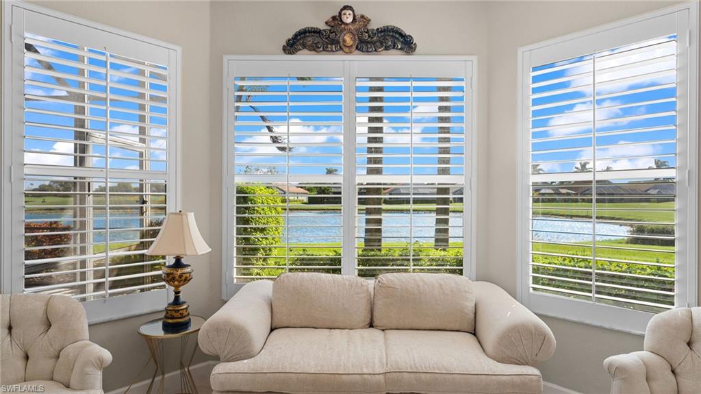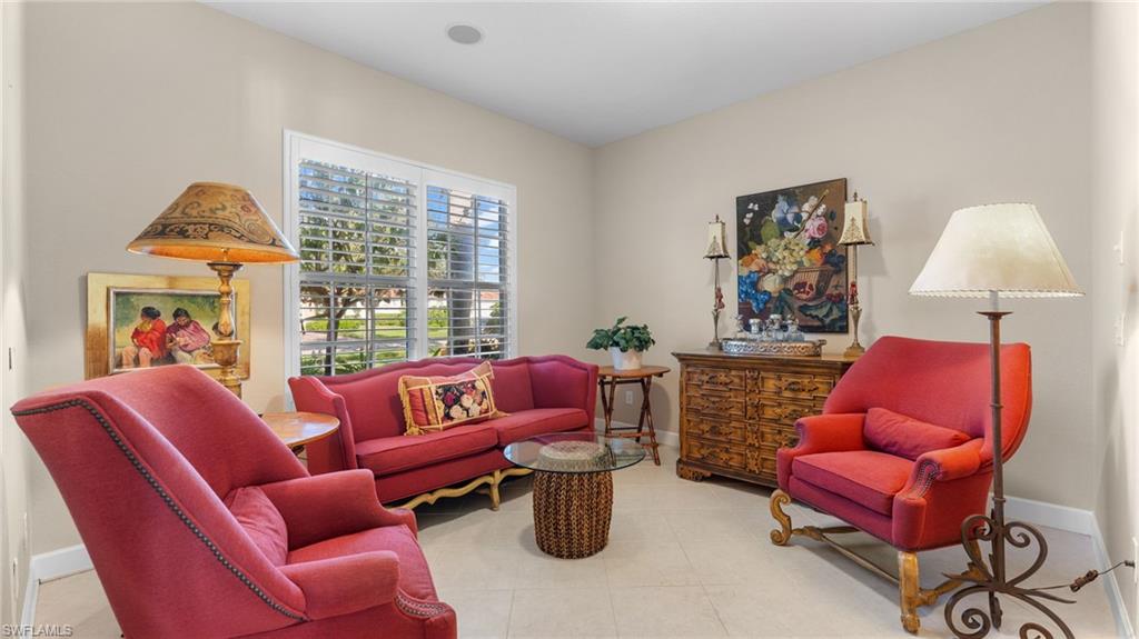 FANTASTIC OPPORTUNITY IN MUSTANG ISLAND, LELY RESORT! Discover the fantastic opportunity to own a home in the private gated community of Mustang Island, nestled within Lely Resort. Enjoy the relaxing golf course views from your expansive lanai, —perfect for unwinding after a long day. The Tilbury model is one of the largest homes in Mustang Island. It features three bedrooms, a den, and three bathrooms. This residence has modern finishes, ensuring a stylish and comfortable living experience. Highlights include stainless steel kitchen appliances, stunning new countertops in the kitchen, and plantation shutters in the den, front door, and dining room. The updated white cabinets and tile floors in all bedrooms and the den add a touch of elegance. Recently painted inside and out, this home boasts new light fixtures and fans, making it truly move-in ready. Brand new AC 2025. Lely Resort offers three championship golf courses and the award-winning Players Club & Spa, providing residents with a luxurious lifestyle and endless recreational opportunities. Don’t miss out on this exceptional property—schedule your viewing today!