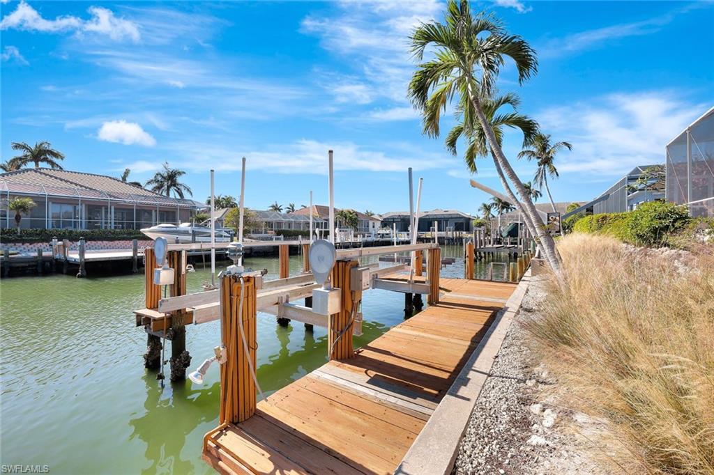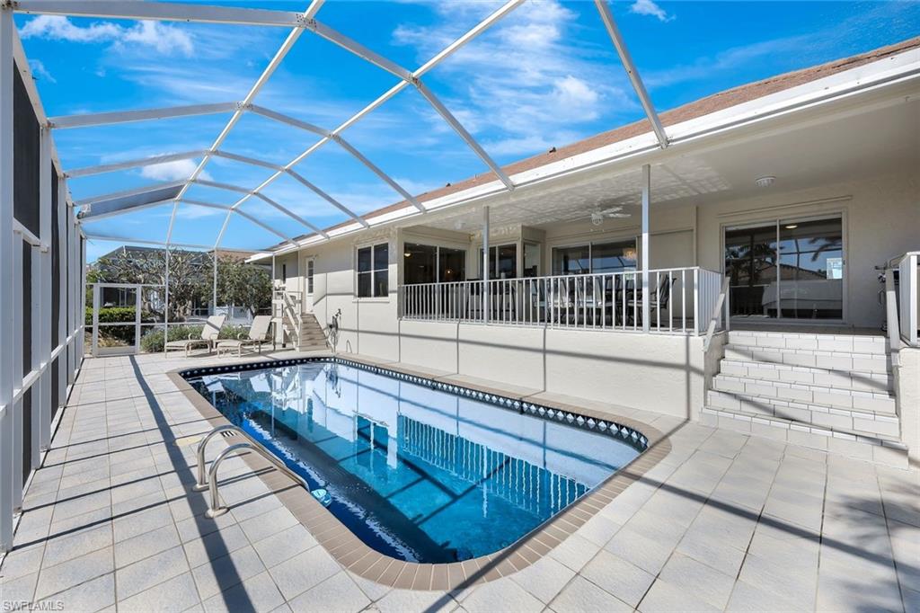 This beautifully maintained waterfront home with a sunny southern exposure is tucked away on a quiet cul-de-sac in a sought-after neighborhood. It's just a short stroll to the beach, shops, and lively entertainment spots. Some standout features include a tough 50-year roof put on in 2018, a stylishly updated kitchen and bathrooms, a newer hot water heater, and all-new appliances. Plus, most windows are hurricane-proof and all windows have hurricane shutters, along with a new garage door! The heated pool, which has been resurfaced in a lovely dark blue, not only looks great but also helps keep your heating costs down. The driveway has fresh brick pavers in both the front and back, and you'll enjoy an appealing flood insurance rate of about $1000 a year. This is a fantastic chance to own a piece of prime real estate in Marco, complete with boating access along with only 1 bridge to the gulf at an unbeatable price!