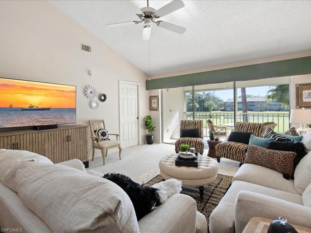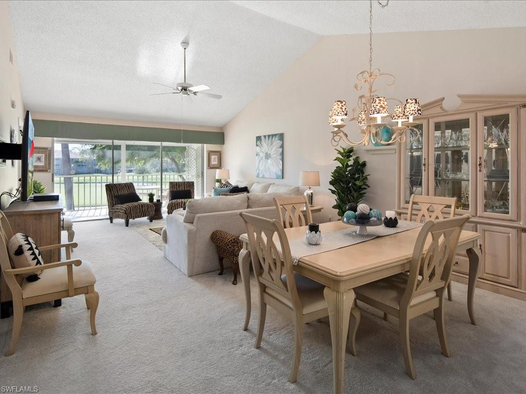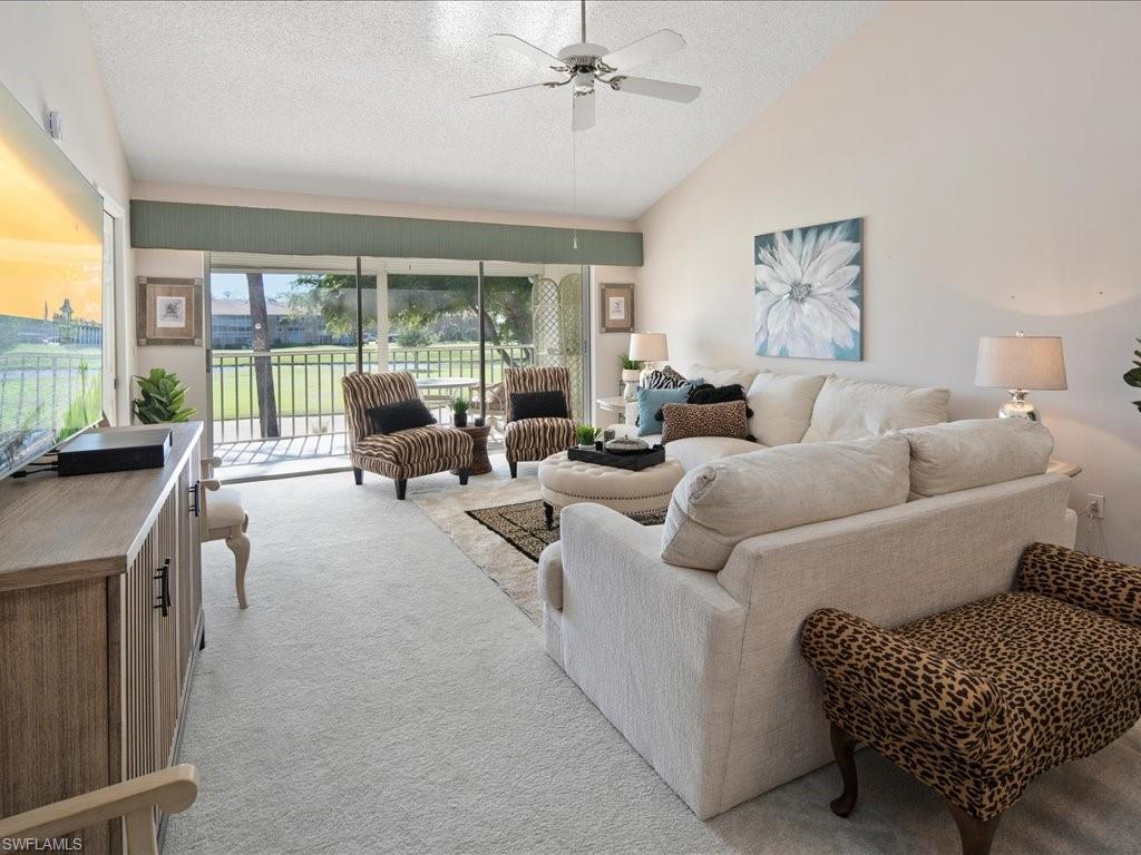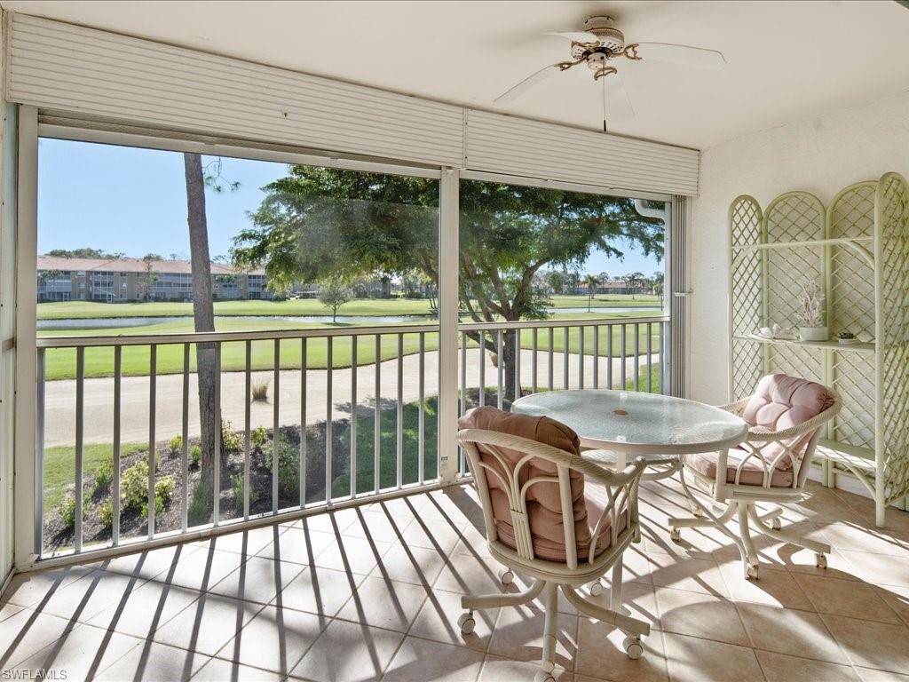 Experience all that Royal Wood has to offer in this freshly painted second-floor condo in the desirable Golf and Country Club at Cranbrook Colony in Royal Wood. This spacious 2-bedroom, 2-bathroom unit features a den and a private garage, along with a stunning view of the golf course overlooking the third fairway. Enjoy the benefits of a new water heater and air conditioning installed in 2019, while all other appliances are just a year and a half old. Step onto your private lanai equipped with electric shutters to relax and take in the beautiful scenery. The condo boasts vaulted ceilings and an updated kitchen with stainless steel appliances, complemented by an eat-in area that brings in plenty of natural light. The den is versatile with pocket doors and a Murphy bed, providing an extra sleeping space for guests. Plentiful cabinetry in the dining area offer extra storage, and the large laundry room provides additional storage. With all the amenities of Cranbrook just steps away, you'll find the Royal Wood Golf Club offers immediate golf membership. Enjoy a vibrant social scene with year-round golf events, scrambles, holiday parties, card games, trivia, and more. Plus, you're only a short distance from the fine dining, world-class shopping, and entertainment of 5th Avenue South and Third Street South, along with the pristine white sand beaches.