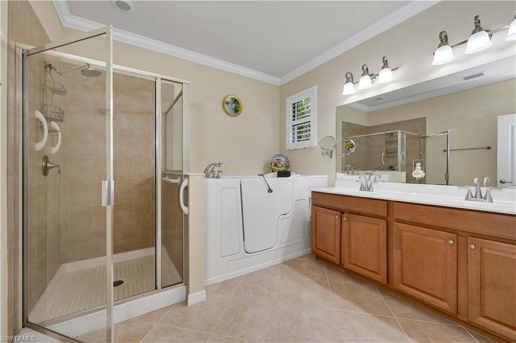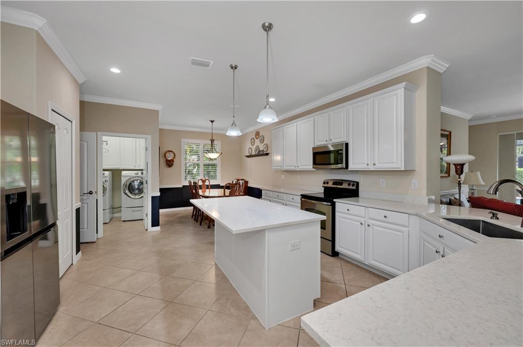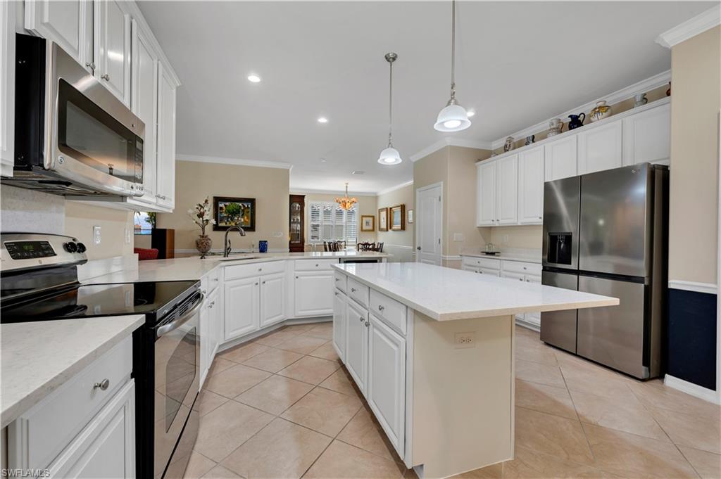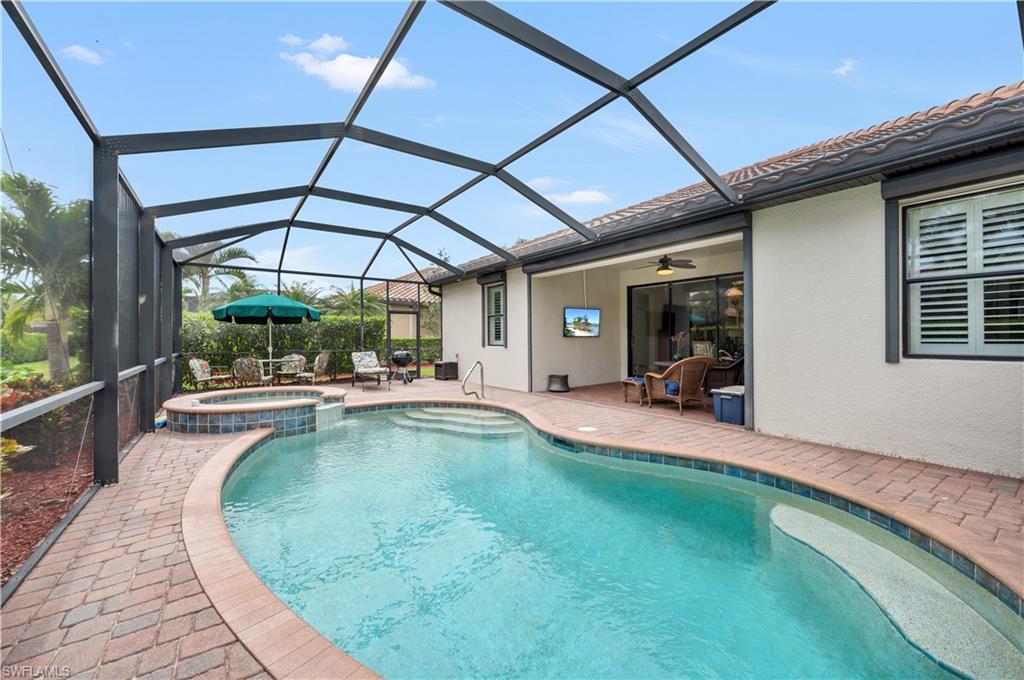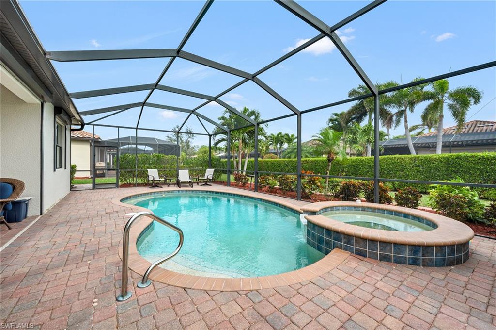 New Price Slashed for Your Dream Home! Step into the pristine paradise of Copper Cove Preserve and discover this stunning 4-bedroom, 3-bath estate, a true gem awaiting its new owner! With a 3-car garage and a sprawling brick-paved lanai, unwind in style by your sparkling solar-heated pool and soothing spa, perfect for year-round relaxation. The open, airy floor plan invites you in, warmed by a cozy corner fireplace that sets the stage for unforgettable gatherings. Prepare to be wowed by the upgraded eat-in kitchen, a bright and breezy haven boasting sleek white cabinetry, a grand quartz-topped center island, pull-out drawers, premium stainless appliances, and a chic counter-height bar. Across the way, a versatile space beckons—ideal for a cozy den, home office, or elegant formal dining area. Refined touches like crown molding, plantation shutters, and chair railing elevate every corner of this exquisite home. Retreat to the luxurious primary suite, where rich wood flooring and a custom-shelved walk-in closet create a sense of timeless elegance. The spa-like primary bath indulges with dual sinks, a grand door-entry soaking tub, and a separate shower for ultimate pampering. Two additional guest suites and a private en-suite ensure comfort for family or visitors. Rest easy with electric and manual roll-down storm shutters for peace of mind. The air-conditioned garage is a standout, equipped with a workbench, storage cabinets, a sink, stylish epoxy flooring, and an electrical outlet ready for a generator. Perfectly positioned near the vibrant Marco Island, the chic 5th Avenue, a public golf course (The Links of Naples), and pristine beaches, this home offers endless entertainment, dining, and shopping adventures. Priced to sell, the seller warmly welcomes all offers—do not miss your chance to claim this extraordinary retreat in Copper Cove Preserve!