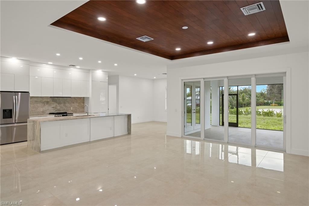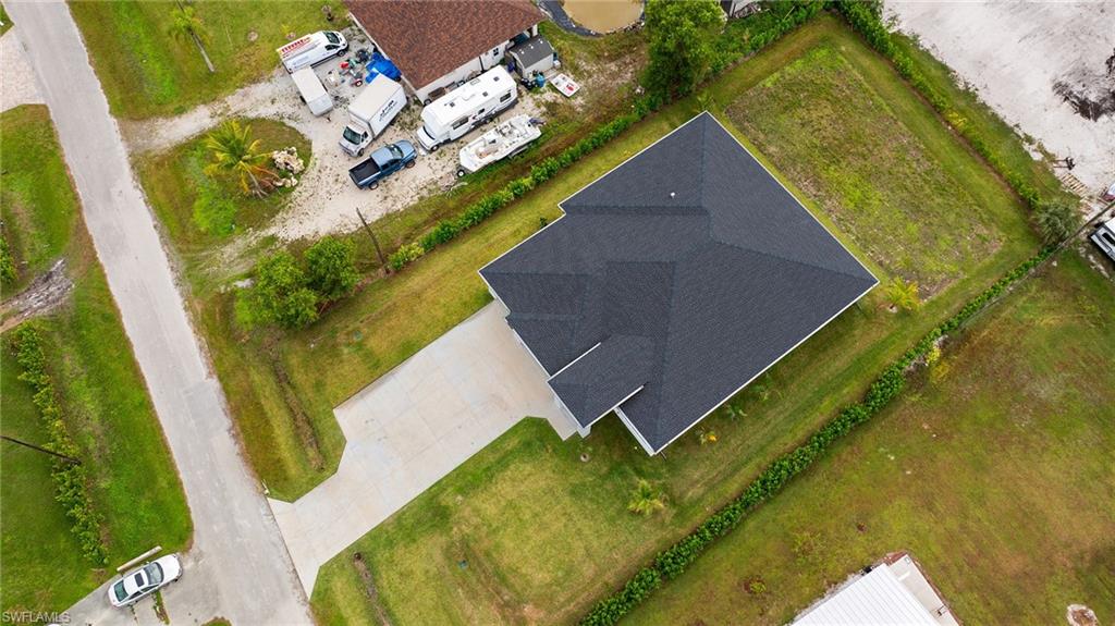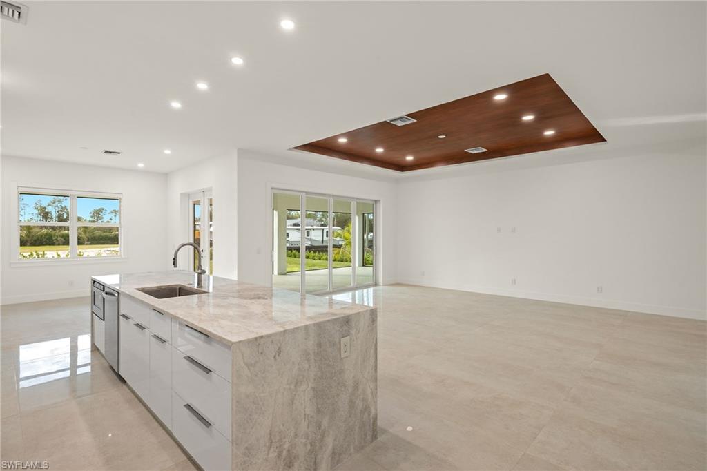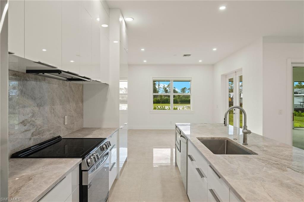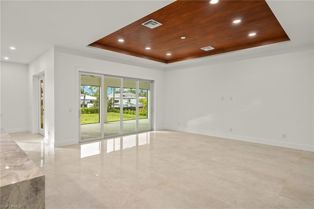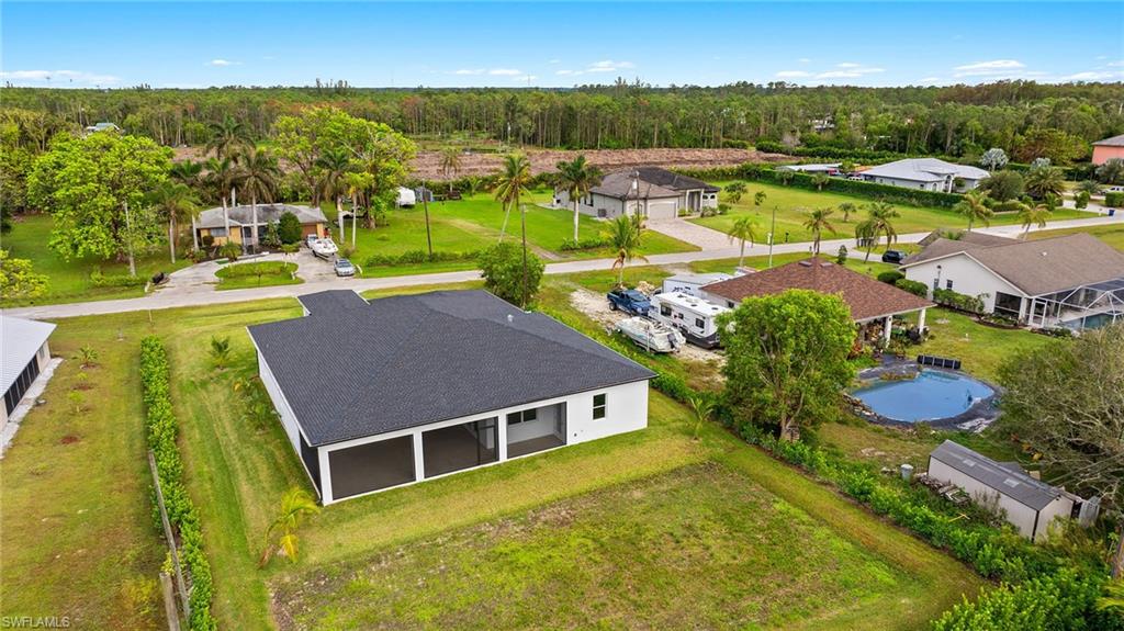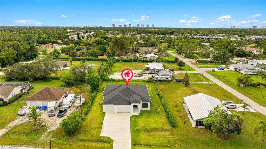 This stunning, custom-built residence redefines luxury living. Every detail has been meticulously crafted to create an unparalleled living experience. 25710 Corzine Road is a 3-bedroom, 2.5 bathroom residence with an oversized den and ample closet space in all the bedrooms. Featuring Taj Mahal Quartzite countertops, stainless steel appliances, contemporary custom cabinetry, and a large center island for meal prep and casual dining, the kitchen is perfect for entertaining or relaxing with family. Built with energy-efficient windows, advanced HVAC systems, and quality construction, this home is built to last while offering lower utility costs. Design and build your dream pool amidst the tropical landscape on this oversized lot. This home provides comfort and style in a prime, desirable location - only three minutes from Imperial Parkway and Old US 41. Whether you're looking for a full-time home or a vacation getaway, this remarkable residence offers everything you need to enjoy the Florida lifestyle.