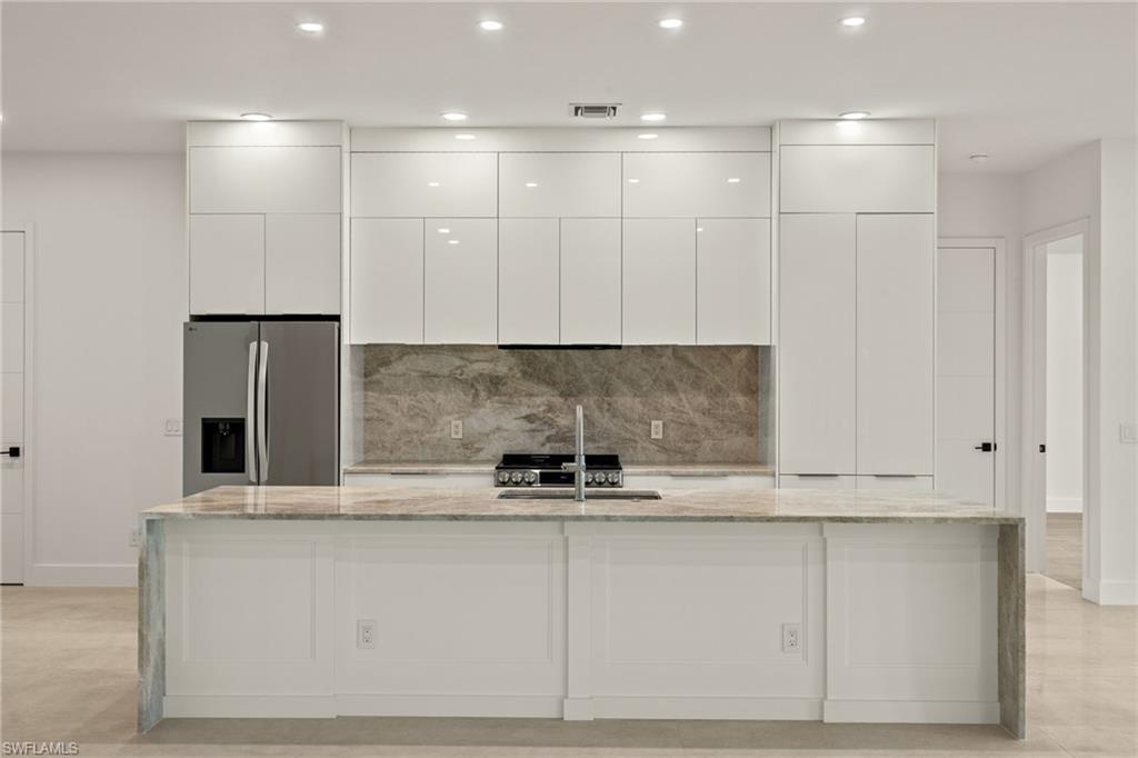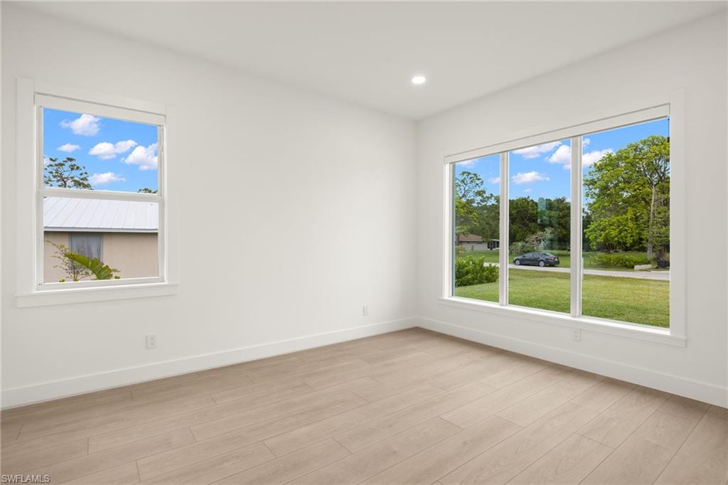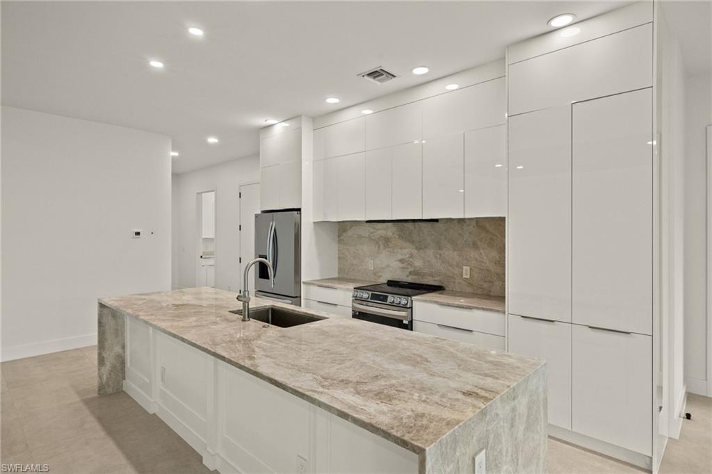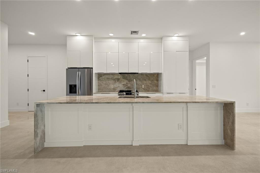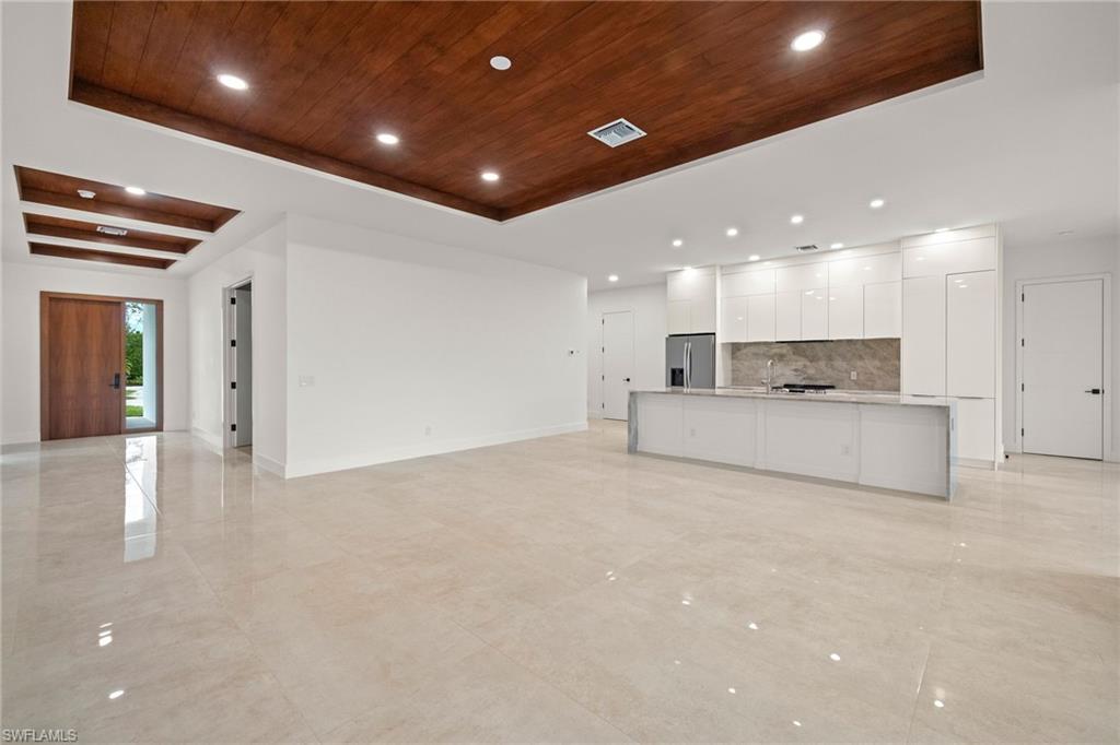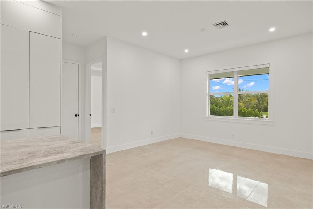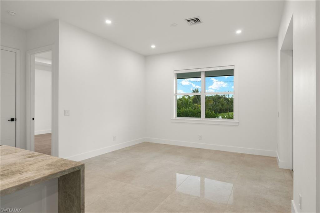 This stunning, custom-built residence redefines luxury living. Every detail has been meticulously crafted to create an unparalleled living experience. 25710 Corzine Road is a 3-bedroom, 2.5 bathroom residence with an oversized den and ample closet space in all the bedrooms. Featuring Taj Mahal Quartzite countertops, stainless steel appliances, contemporary custom cabinetry, and a large center island for meal prep and casual dining, the kitchen is perfect for entertaining or relaxing with family. Built with energy-efficient windows, advanced HVAC systems, and quality construction, this home is built to last while offering lower utility costs. Design and build your dream pool amidst the tropical landscape on this oversized lot. This home provides comfort and style in a prime, desirable location - only three minutes from Imperial Parkway and Old US 41. Whether you're looking for a full-time home or a vacation getaway, this remarkable residence offers everything you need to enjoy the Florida lifestyle.