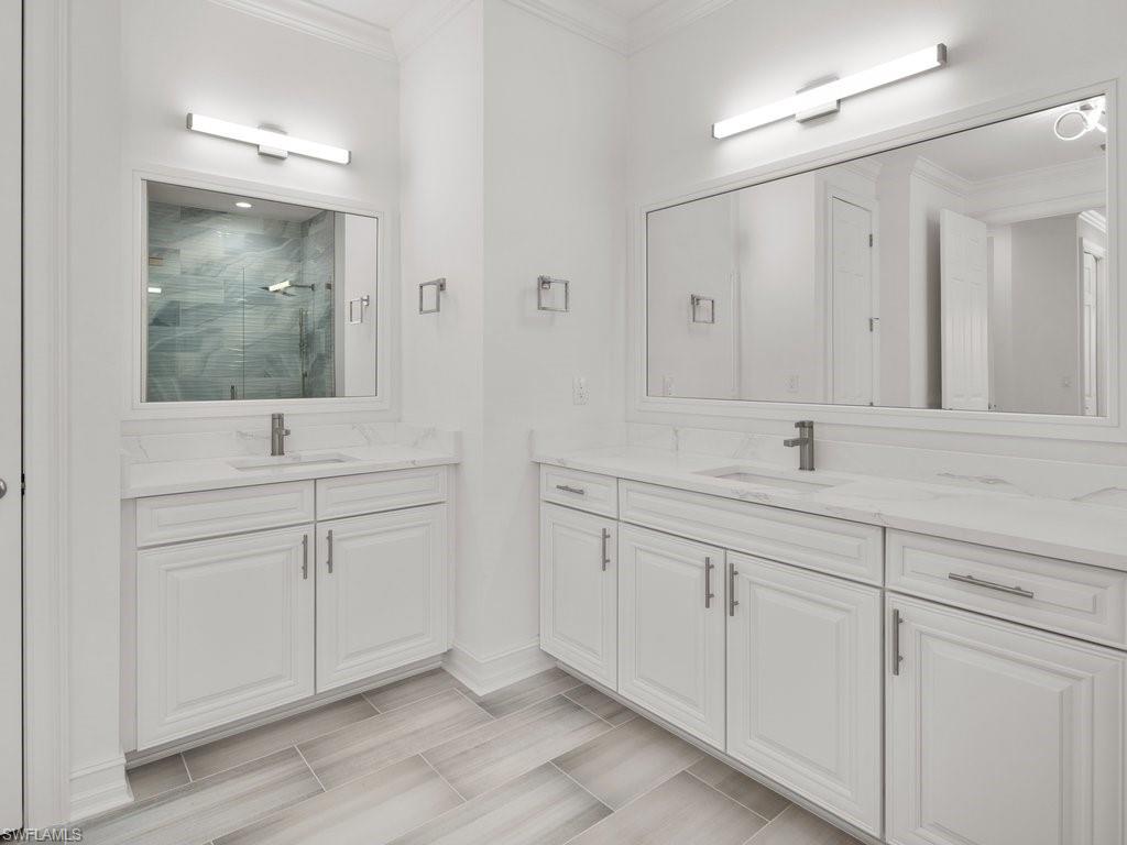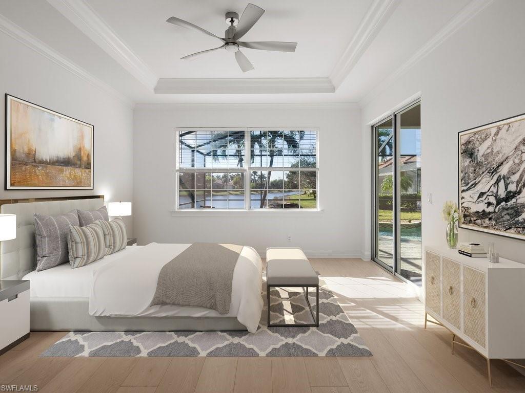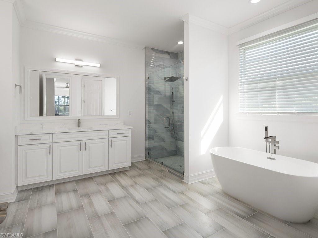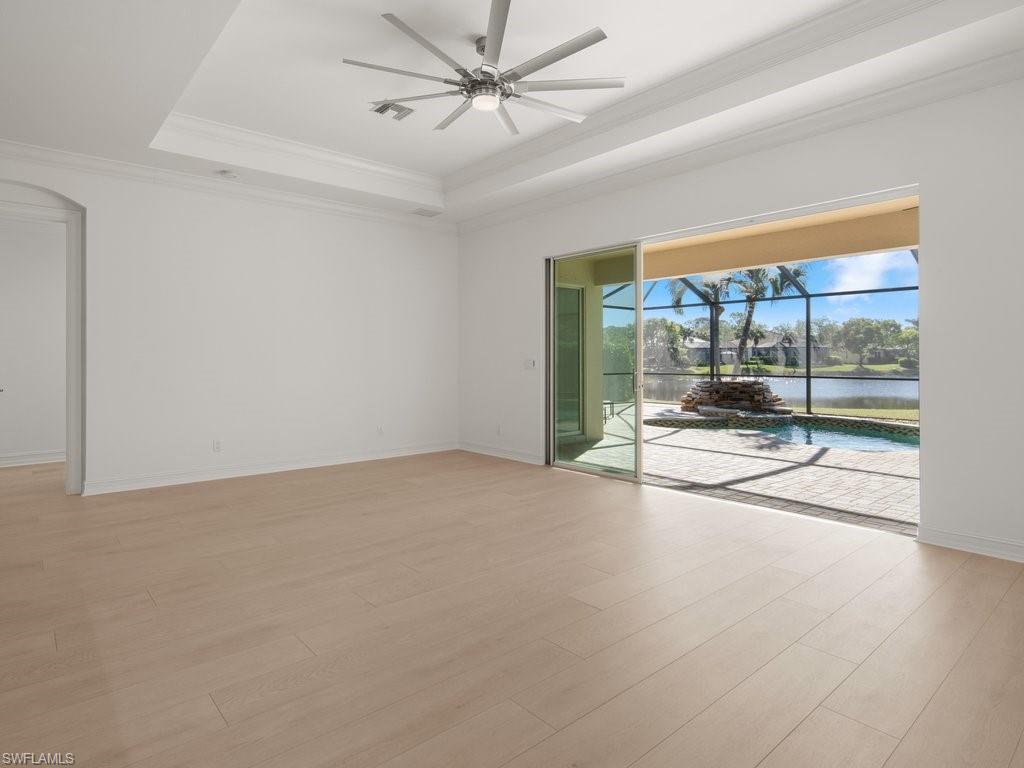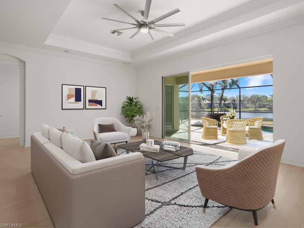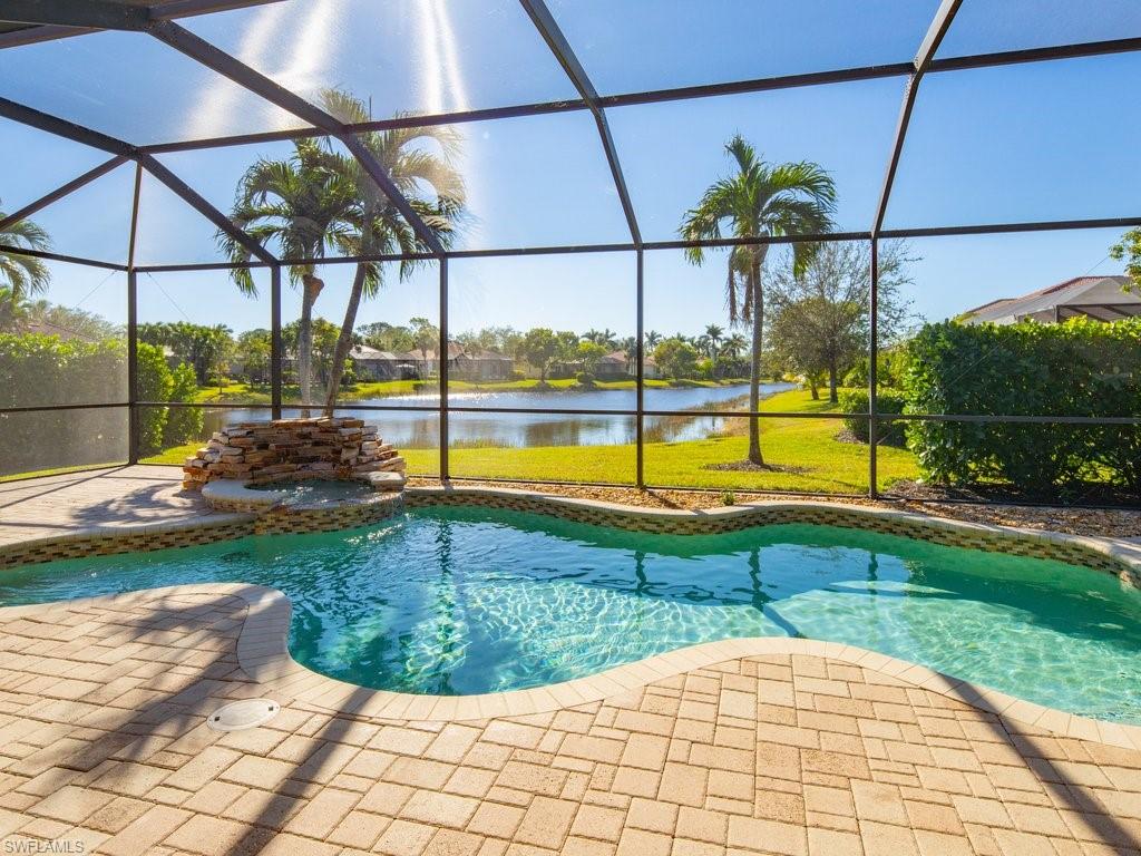 A RARE FIND,in North Naples, an UPDATED 4 BR, 3 BATHROOM AND 3 CAR GARAGE, Located on a prime lakefront lot with an unobstructed water view. The floor plan is split bedrooms with crown molding throughout and tray ceiling in living room and primary bedroom. The primary-bathroom has a toilet closet, two vanities, and a separate tub and shower. The large open Kitchen has quartz counters, SS appliances, and large breakfast bar for 6. The ceilings are 9' with 8' doors throughout. The extended screened patio with SOUTHERN Exposure has a large covered and uncovered area offering plenty of space for outdoor cooking, dining, and enjoying Florida sunshine. The pool has a rock waterfall and paver deck. Horse Creek Estates is located close to A rated schools and Highway 41, Mercato, Vanderbilt Beach, and many shops and fine-dining restaurants. Also is located in FEMA zone X-500 which is not in a Special Fl Hazard Area. Low HOA Fees.