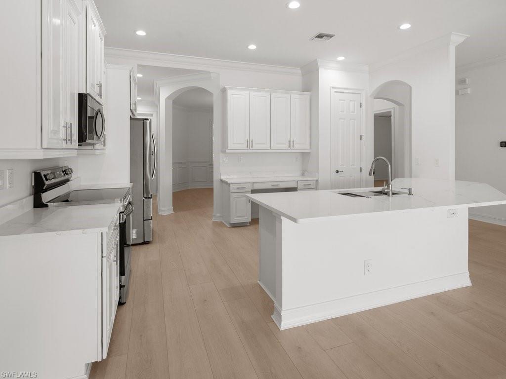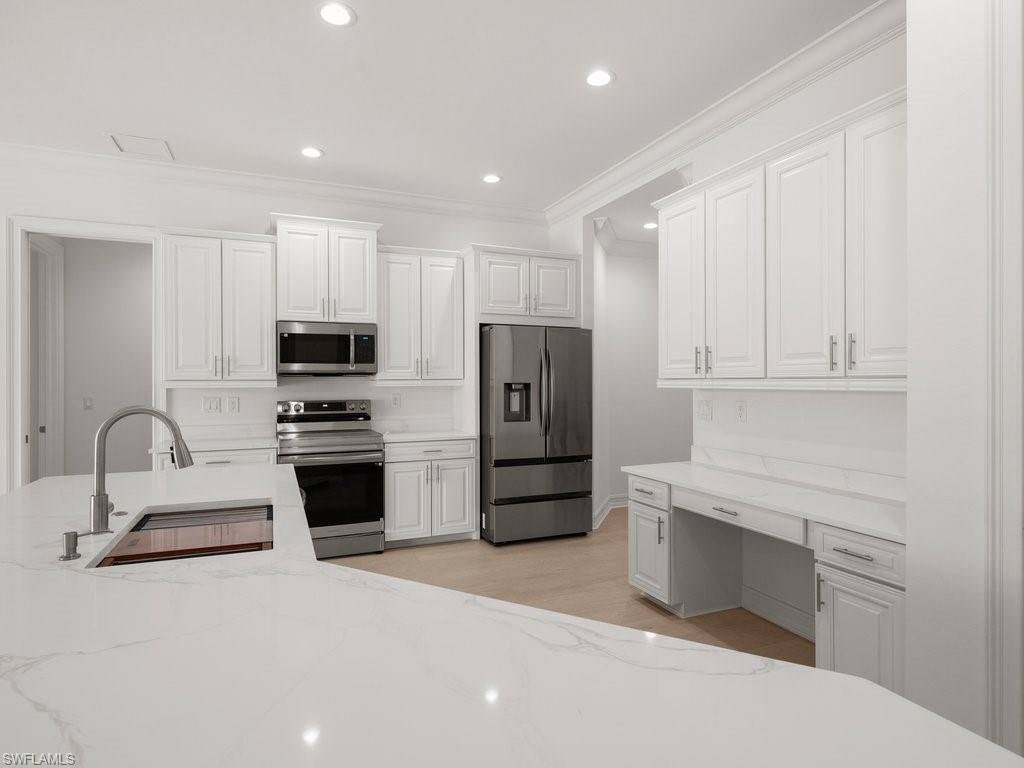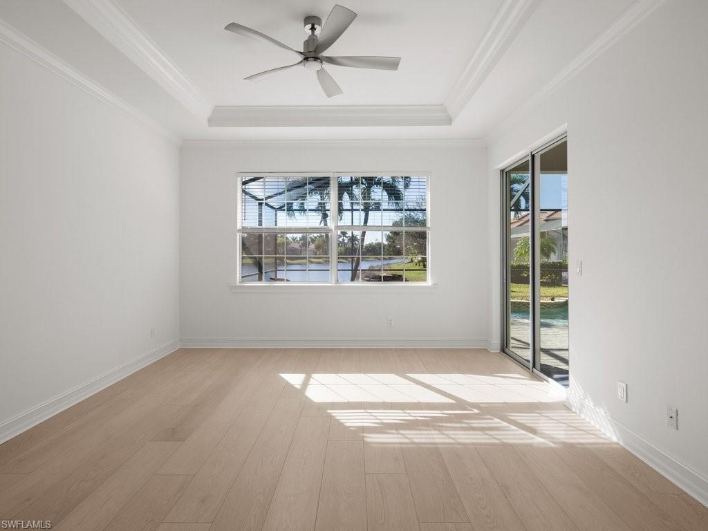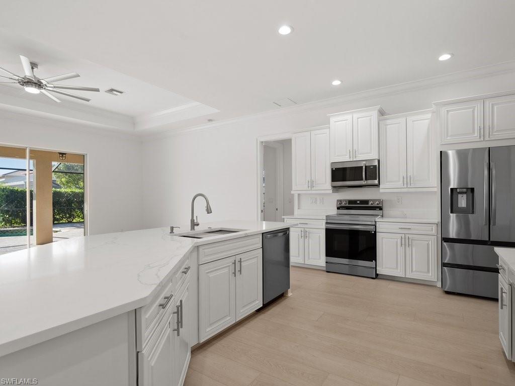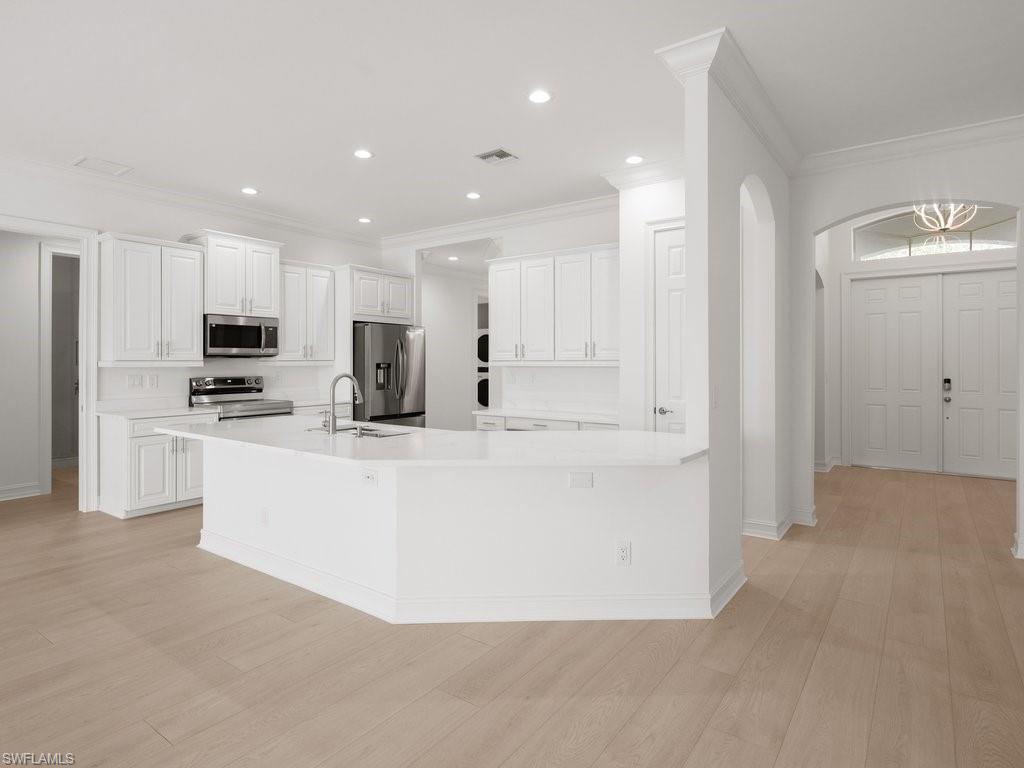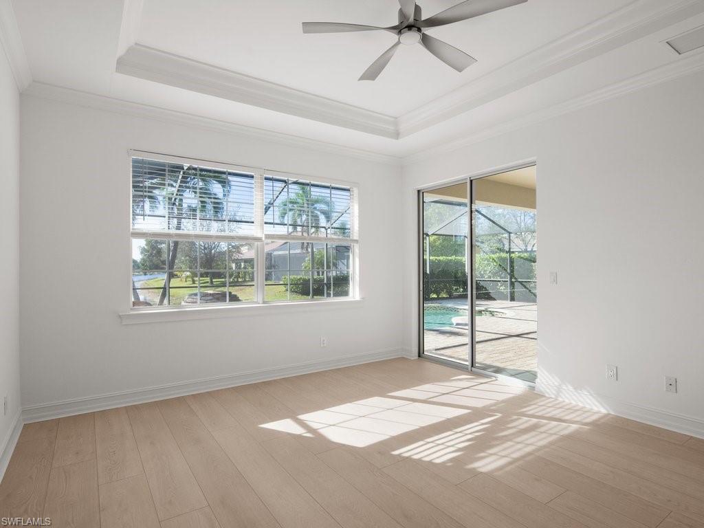 A RARE FIND,in North Naples, an UPDATED 4 BR, 3 BATHROOM AND 3 CAR GARAGE, Located on a prime lakefront lot with an unobstructed water view. The floor plan is split bedrooms with crown molding throughout and tray ceiling in living room and primary bedroom. The primary-bathroom has a toilet closet, two vanities, and a separate tub and shower. The large open Kitchen has quartz counters, SS appliances, and large breakfast bar for 6. The ceilings are 9' with 8' doors throughout. The extended screened patio with SOUTHERN Exposure has a large covered and uncovered area offering plenty of space for outdoor cooking, dining, and enjoying Florida sunshine. The pool has a rock waterfall and paver deck. Horse Creek Estates is located close to A rated schools and Highway 41, Mercato, Vanderbilt Beach, and many shops and fine-dining restaurants. Also is located in FEMA zone X-500 which is not in a Special Fl Hazard Area. Low HOA Fees.