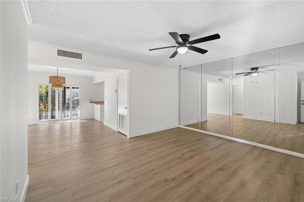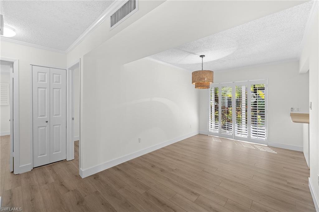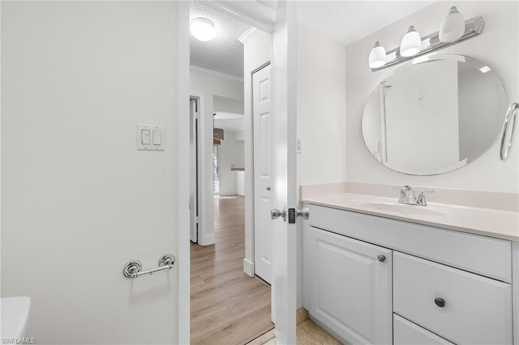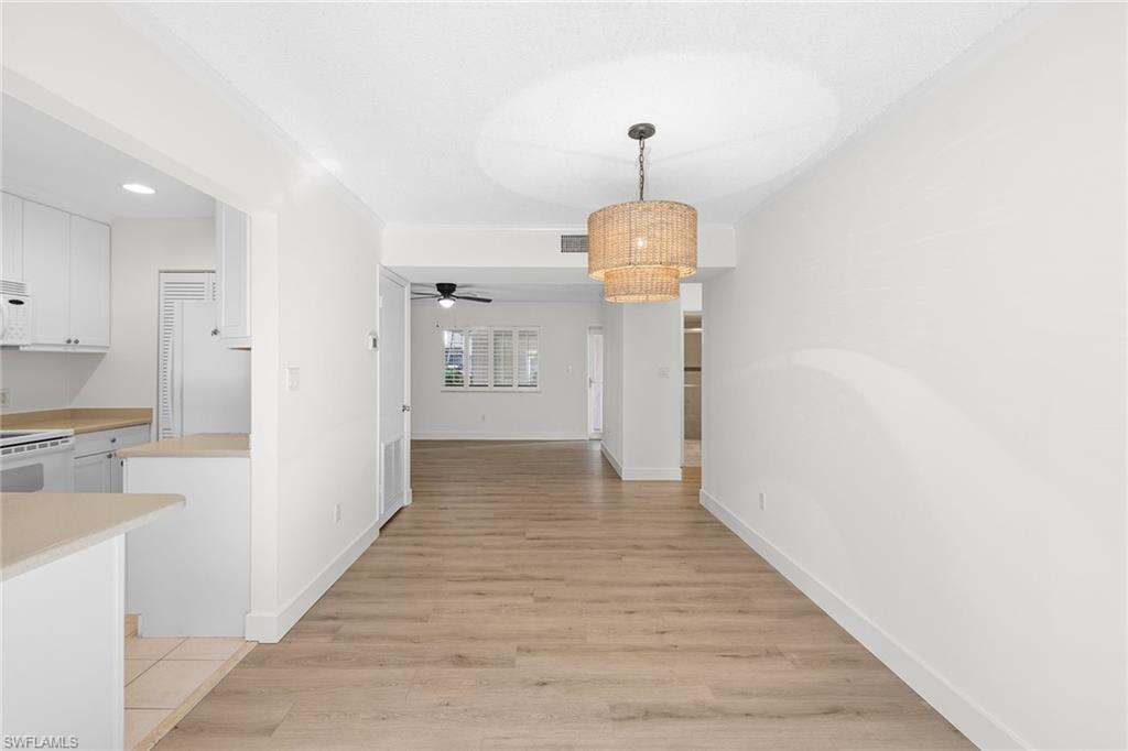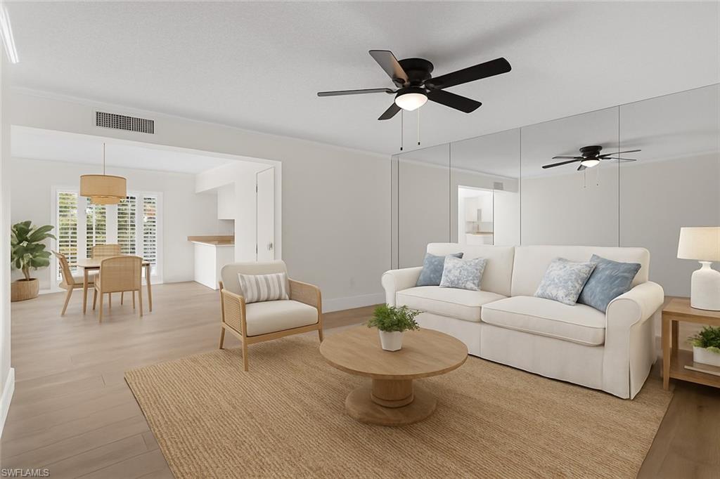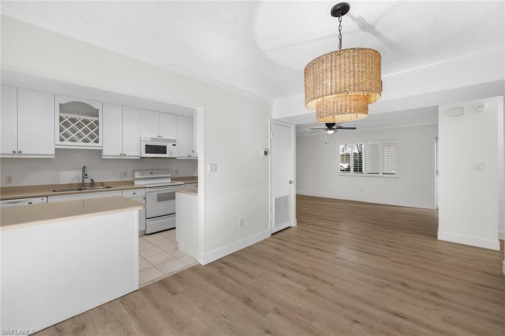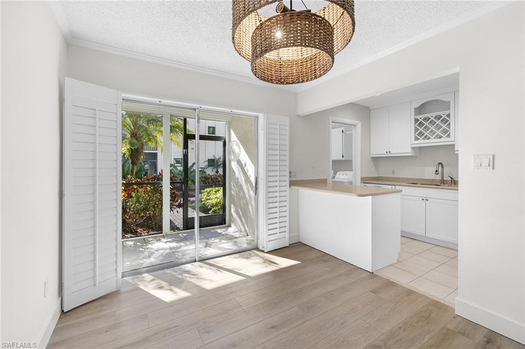 Welcome to Hidden Lake Villas, a beautifully maintained community in the heart of Park Shore, just minutes from the Gulf. This first-floor, two-bedroom, two-bath residence offers a thoughtfully designed floorplan with sought-after southern exposure from the private lanai. Recent upgrades include luxury vinyl plank flooring, new baseboards, fresh interior paint, updated fans, and a new chandelier—creating a light, coastal-inspired interior. The open-concept living and dining areas provide a warm and inviting setting for everyday living or entertaining. With its ground-floor convenience, this unit is ideal for a lock-and-leave lifestyle. Residents enjoy access to lush tropical landscaping, vibrant community amenities, and an unbeatable location near world-class shopping, dining, and the optional Park Shore Beach membership. Perfect for seasonal or full-time residents seeking a true Naples lifestyle.