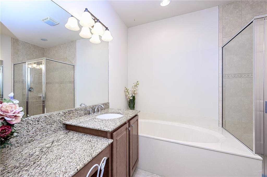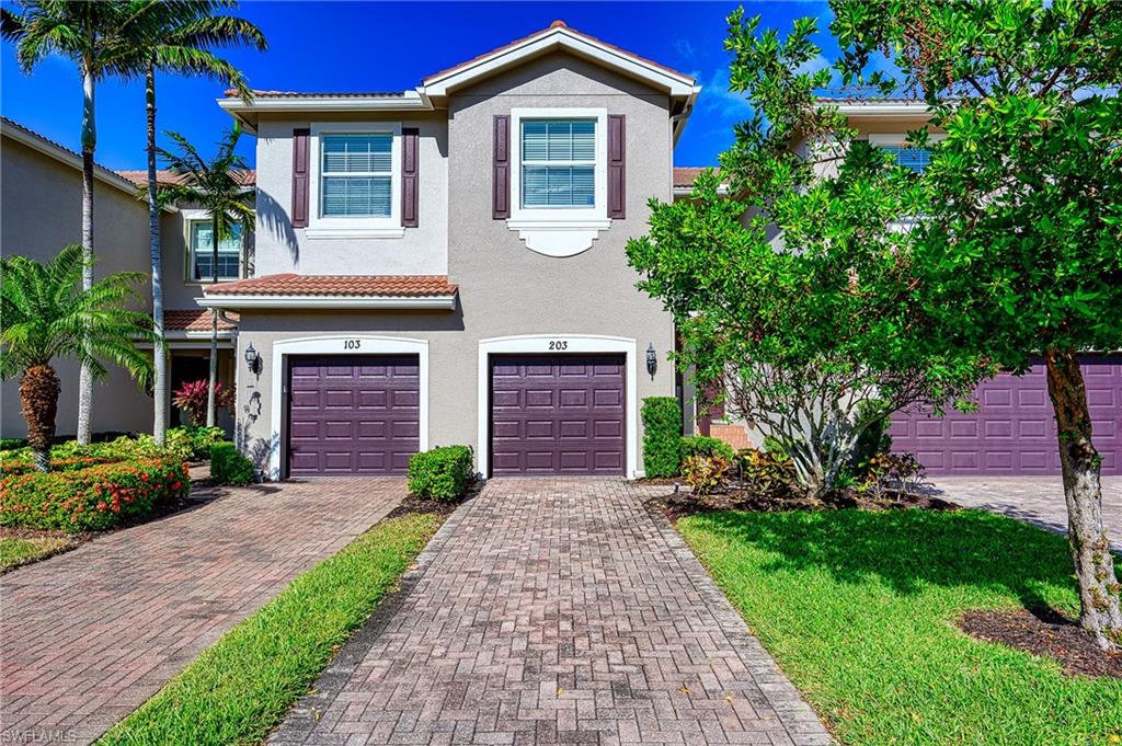 Nestled along the desired Livingston Rd corridor you'll find the established and amenity rich community of Marbella Lakes built by GLHomes. Priced below $500k, this tastefully decorated, never rented, carriage home has only been occasionally occupied by original foreign owners. This top floor Sorento floor plan offers 2143 sqft of living space with 3bedrooms, 2 full baths and guest powder room, and offers both a cozy eat-in kitchen with stainless steel appliances, as well as a formal dining area. You'll find granite countertops and ample raised-panel cabinetry throughout. The living area is extended by the lake view, screened & tiled lanai for year-round enjoyment. Being sold "As Is" with right to inspect. Listprice includes existing inventory but furnishings are negotiable. This central Naples location with proximity to many local amenities, points of interest, and approximately 4.5 miles to the beautiful Clam Pass Beach, is sure to please.