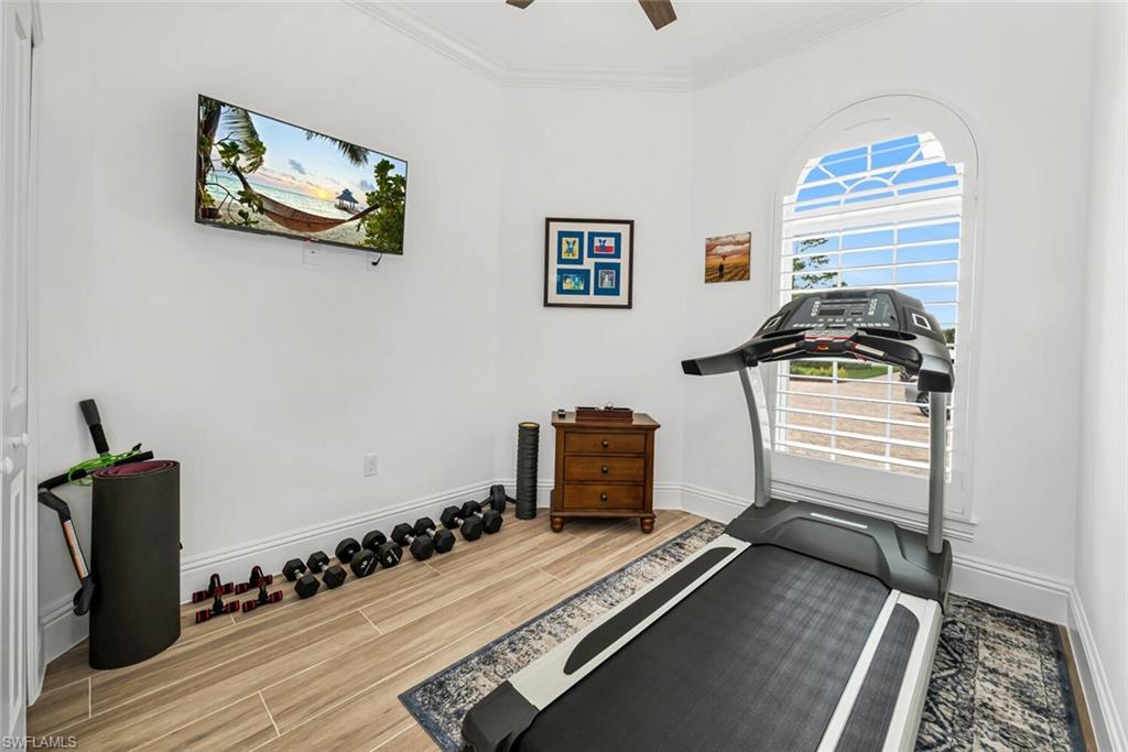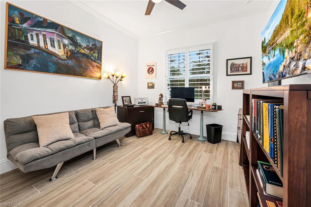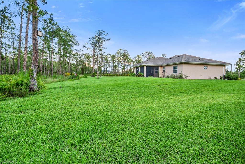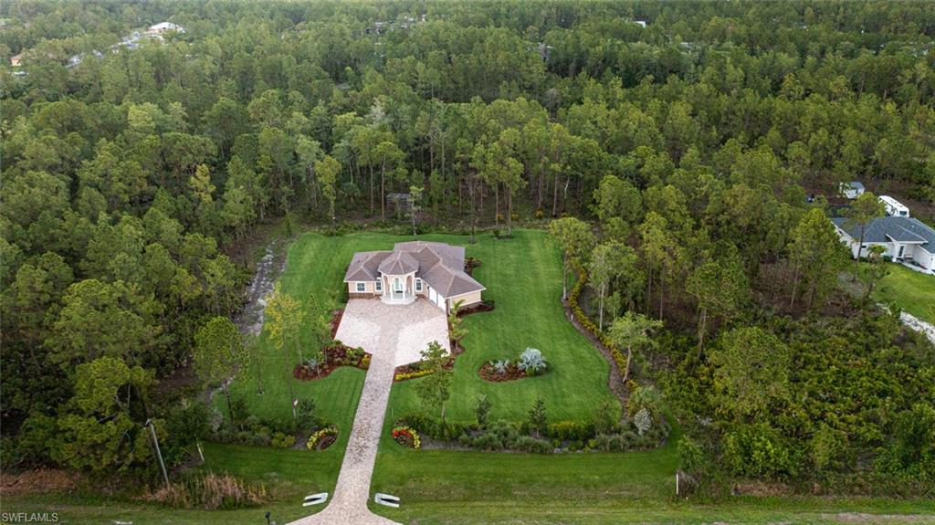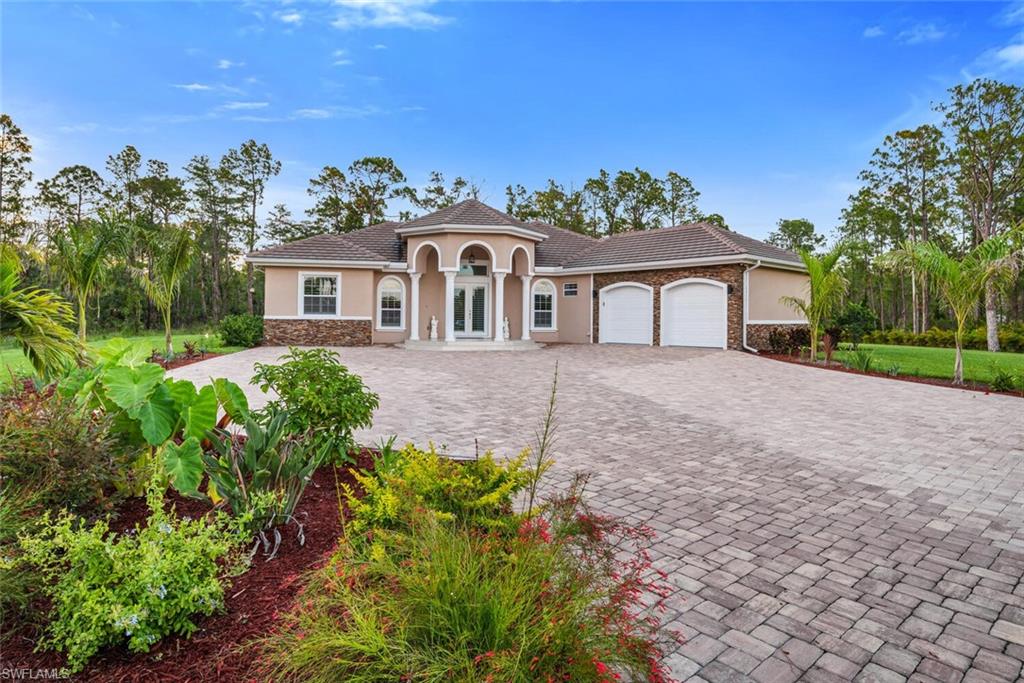 Price improvement! Seize the chance to claim this extraordinary estate as your own! Escape to Your Private Paradise! Tucked away on a sprawling 2.81-acre oasis, this breathtaking estate home seamlessly marries timeless elegance with modern luxury. A striking stone-accented exterior and a grand covered entry with chic impact doors welcome you to a world of refined living. Step inside to discover a masterpiece of design—5 1/4’’ crown molding, bold seven-inch baseboards, solid wood plantation shutters, and soaring tray ceilings grace the living and dining spaces, exuding sophistication at every turn. The heart of the home, a gourmet kitchen, dazzles with sleek shaker cabinetry, luminous quartz countertops, and custom LED lighting, perfect for culinary adventures. Porcelain plank tile flows effortlessly throughout, guiding you to a serene, covered patio for seamless indoor-outdoor living. Retreat to the expansive 17x17 primary suite, a haven of tranquility, featuring a cedar-lined walk-in closet and a spa-inspired bathroom with dual sinks, a rejuvenating rain shower, and a decadent soaking tub. Pre-wired for media, this tech-savvy home is ready for your modern lifestyle. Outside, a lush tapestry of Flori tam grass, swaying palms, vibrant perennials, majestic Live Oaks, and 60 Areca palms creates a private, picturesque retreat. Envision your future with room to craft a sparkling pool, a stylish outdoor kitchen, or a charming guest house—the possibilities are endless! Nestled near top-rated schools, premier shopping, and exquisite dining, this secluded sanctuary offers the best of both worlds.