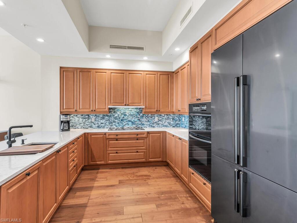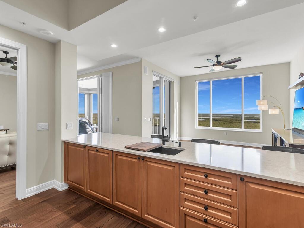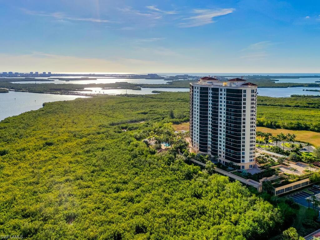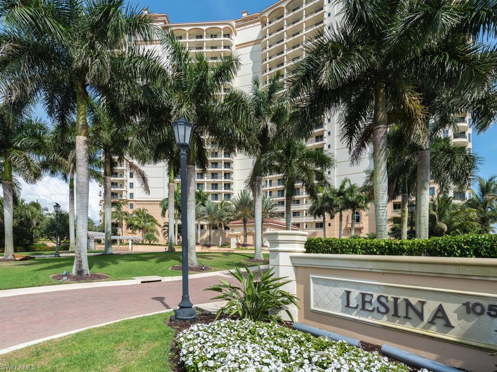 Prestigious Penthouse offers the pinnacle of luxury living. Enjoy glorious views from every window, sunrise to sunset, from Gulf to Bay, Marco’s skyline to nature’s wonderland. Secure elevator transports you to your private retreat in the sky. This mostly furnished expansive 3-bedroom, 3.5-bath residence features exquisite backgrounds & rich hardwood floors throughout by Clive Daniel completed in 2024. Designer ceiling fans & lighting, remote control Hunter Douglas luminettes & silhouettes. Private foyer/lobby with exquisite marble flooring greets you. Your grand & gracious Great Room, with ceilings soaring to nearly 12 ft, opens to an expansive screened Lanai perfect for entertaining. Custom built-in cabinetry including fireplace & wine refrig grace the Family Room. State-of-the-art Kitchen is a chef’s delight with new one-level quartz bar, tile backsplashes, handsome hardwood cabinetry, custom slide-outs & drawers, pantry with slide outs, new fabulous Dacor refrigerator/freezer, KitchenAid Double Oven & cabinet faced Dishwasher. Pamper yourself in your ensuite Master Bath with separate spa tub & shower with multiple shower heads, his & hers hardwood vanities with granite counters, dual custom built-in walk-in closets. Split bedroom plan offers privacy with two delightful guest suites, each with ensuite baths & balcony. Exquisite Powder Room with marble walls & floor, designer “bowl” sink & vanity pull-out shelf. Handy Laundry Room with lots of built-ins, laundry tub & under counter Whirlpool washer & dryer. Impact glass throughout plus electric storm shutters to enclose Lanai for added security and convenience. Wired for Sound and Security Systems. Abundant storage space. The luxurious Lesina offers residents outstanding amenities including beautiful Lobby, well-appointed Social Room with Kitchen, bar, game tables, billiards, & big screen TV, Theater, Library, Fitness Center, two Guest Suites, Clubhouse, Resort-style Pool & Spa with Cabanas, secure garage 2 parking spaces, #60 and 68, and storage cage # 96, located left of Parking #60, bike storage, dog park. A secure, gated community, just minutes from Marco and Naples, Lesina is an exceptional value in luxury living in Collier County and PH 2105 is the best of the best!