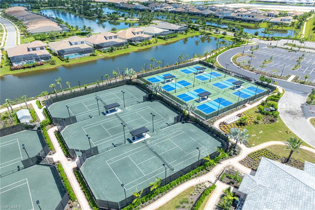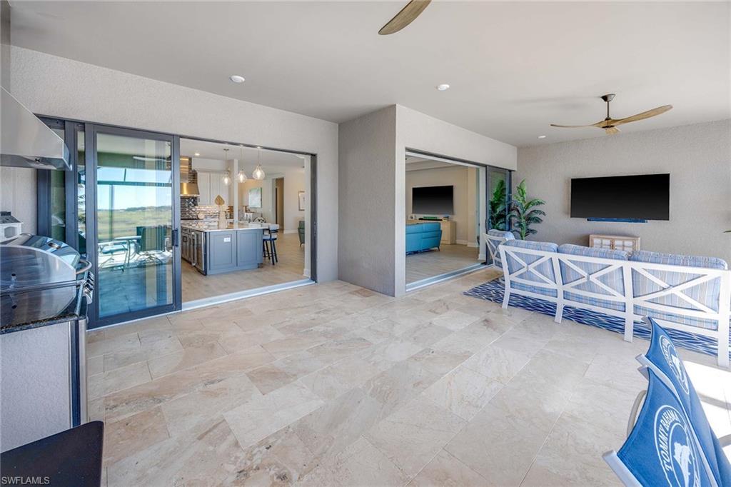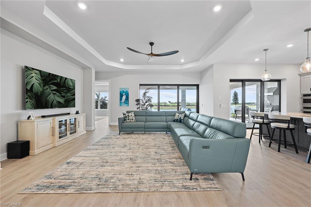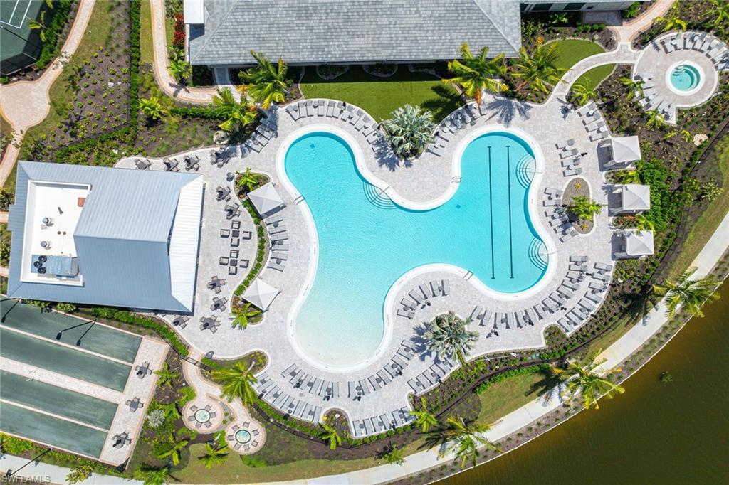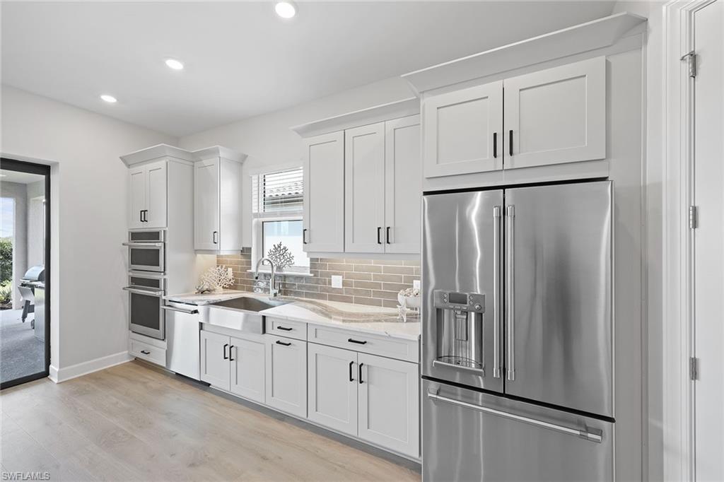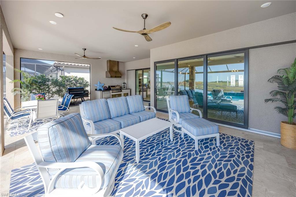 The extraordinary Pallazio floor plan is available now in Esplanade by the Islands. One of the newest Taylor Morrison communities in Naples, this popular plan has it all. This home is open and inviting with a delightful glass double-door entry and interior foyer. Tray ceiling accents, crown molding, and gorgeous flooring in light wood design throughout. The spacious great room plan has a gorgeous open kitchen and dining area with a large central island and numerous upgrades, including all GE Cafe appliances and luxury quartz counters, a stainless wall oven and microwave, French door refrigerator and more. The walk-in pantry, upgraded cabinetry, crown molding and custom drawers complete the picture. The exceptional pool and outside living area are large and include a summer kitchen. Custom-designed pool and spa with delightful glass surround, and a seamless waterfall spa in shades of blue and aqua will draw you outdoors to the saltwater pool. An ideal environment with a sun shelf, gas grill, lovely dining area and more. The exceptional primary bedroom suite with an oversized walk-in closet and dual entrance shower is unique to this floor plan and beautifully appointed. The oversized guest suites provide comfortable arrangements for all. On the edge of the Creek Course in stunning Fiddler's Creek, Turin Way provides lovely views and scenery. An exceptional home, with an additional tandem two-car garage. The amenities with dining, fitness, full spa, hair and nails are delightful. Minutes from Old Naples and Marco Island, this is an exceptional home and community.