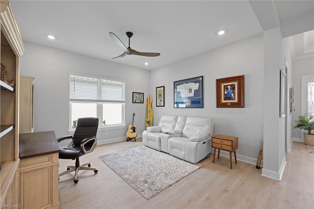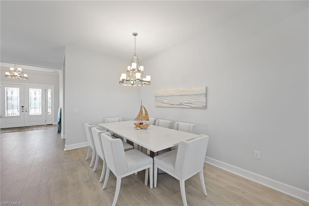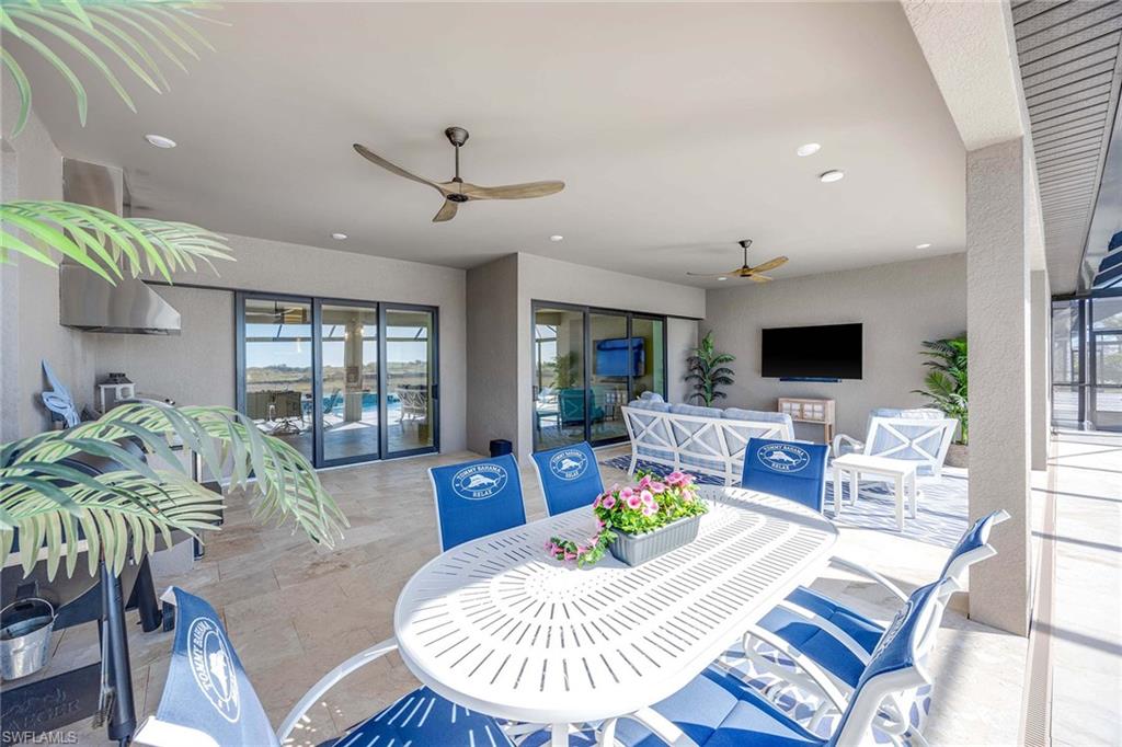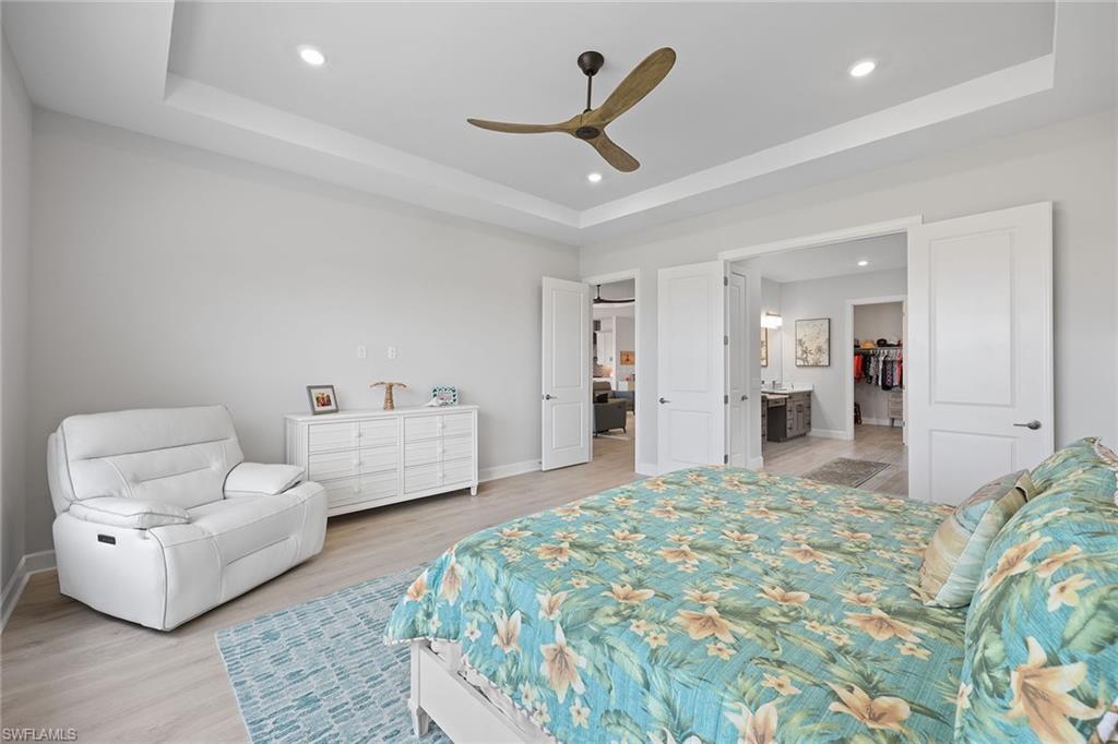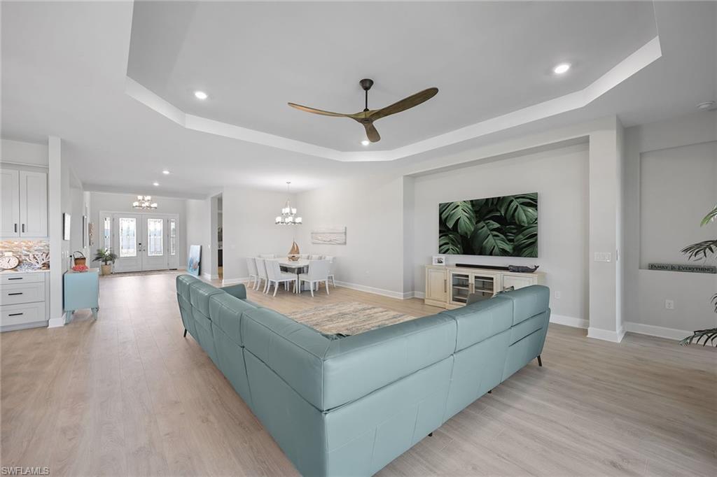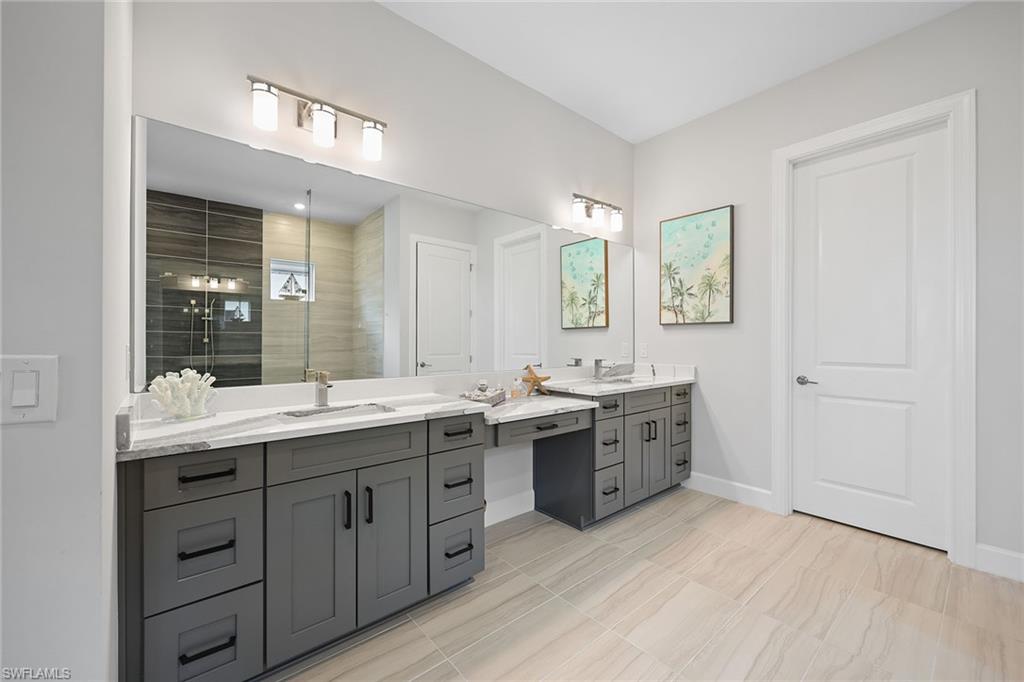 The extraordinary Pallazio floor plan is available now in Esplanade by the Islands. One of the newest Taylor Morrison communities in Naples, this popular plan has it all. This home is open and inviting with a delightful glass double-door entry and interior foyer. Tray ceiling accents, crown molding, and gorgeous flooring in light wood design throughout. The spacious great room plan has a gorgeous open kitchen and dining area with a large central island and numerous upgrades, including all GE Cafe appliances and luxury quartz counters, a stainless wall oven and microwave, French door refrigerator and more. The walk-in pantry, upgraded cabinetry, crown molding and custom drawers complete the picture. The exceptional pool and outside living area are large and include a summer kitchen. Custom-designed pool and spa with delightful glass surround, and a seamless waterfall spa in shades of blue and aqua will draw you outdoors to the saltwater pool. An ideal environment with a sun shelf, gas grill, lovely dining area and more. The exceptional primary bedroom suite with an oversized walk-in closet and dual entrance shower is unique to this floor plan and beautifully appointed. The oversized guest suites provide comfortable arrangements for all. On the edge of the Creek Course in stunning Fiddler's Creek, Turin Way provides lovely views and scenery. An exceptional home, with an additional tandem two-car garage. The amenities with dining, fitness, full spa, hair and nails are delightful. Minutes from Old Naples and Marco Island, this is an exceptional home and community.